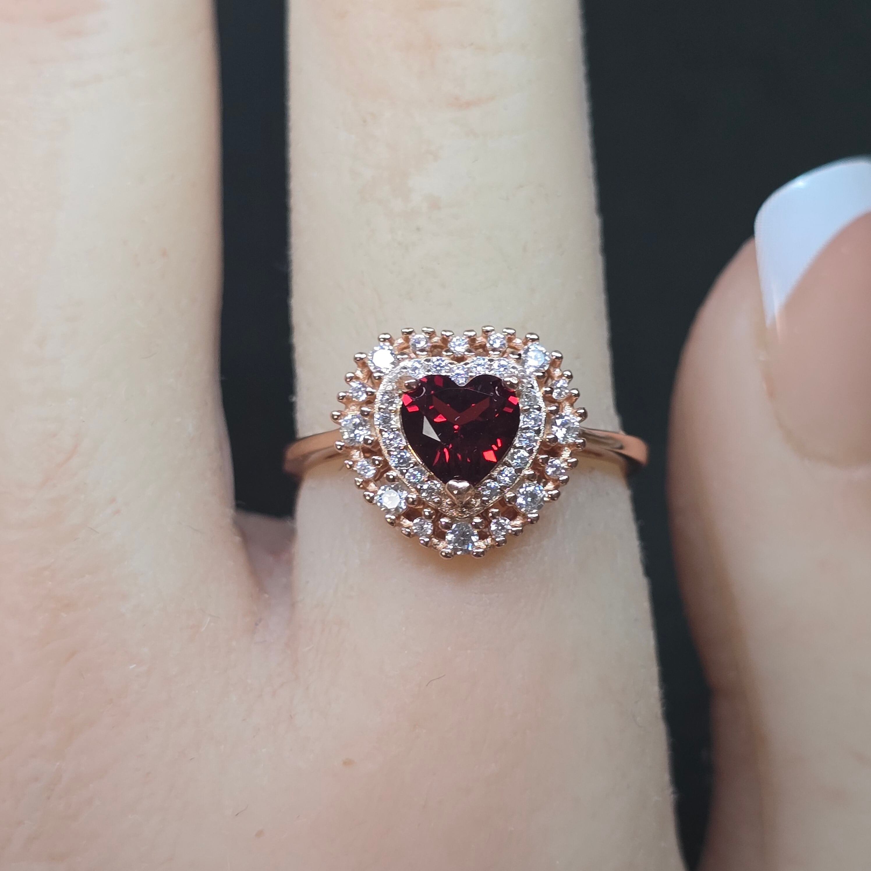 ガーネット ハート リング ガーネット 指輪 ピンクゴールド キラキラ