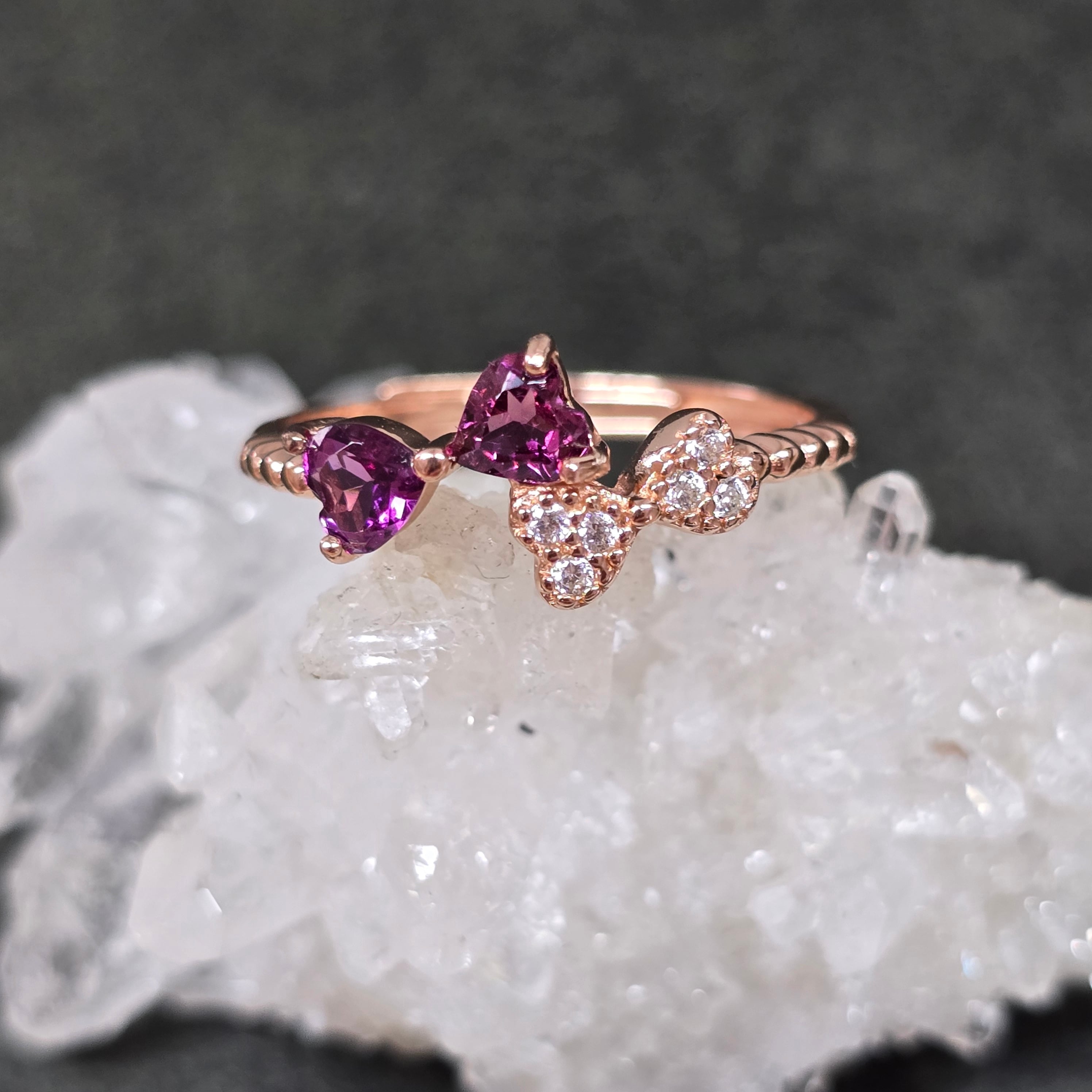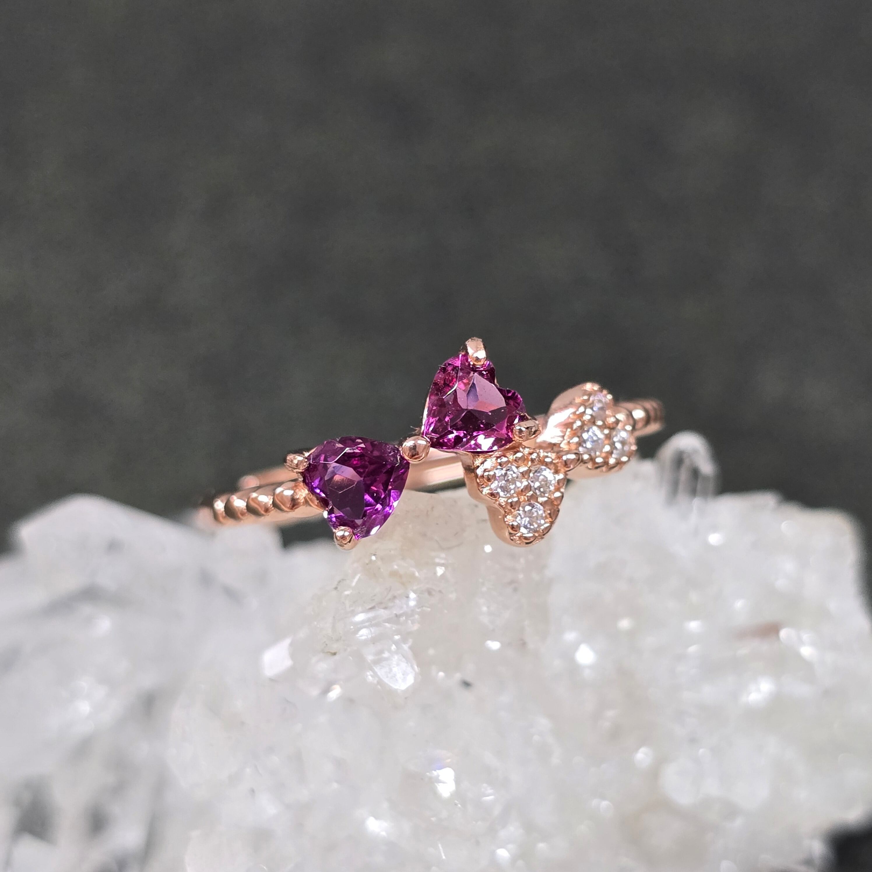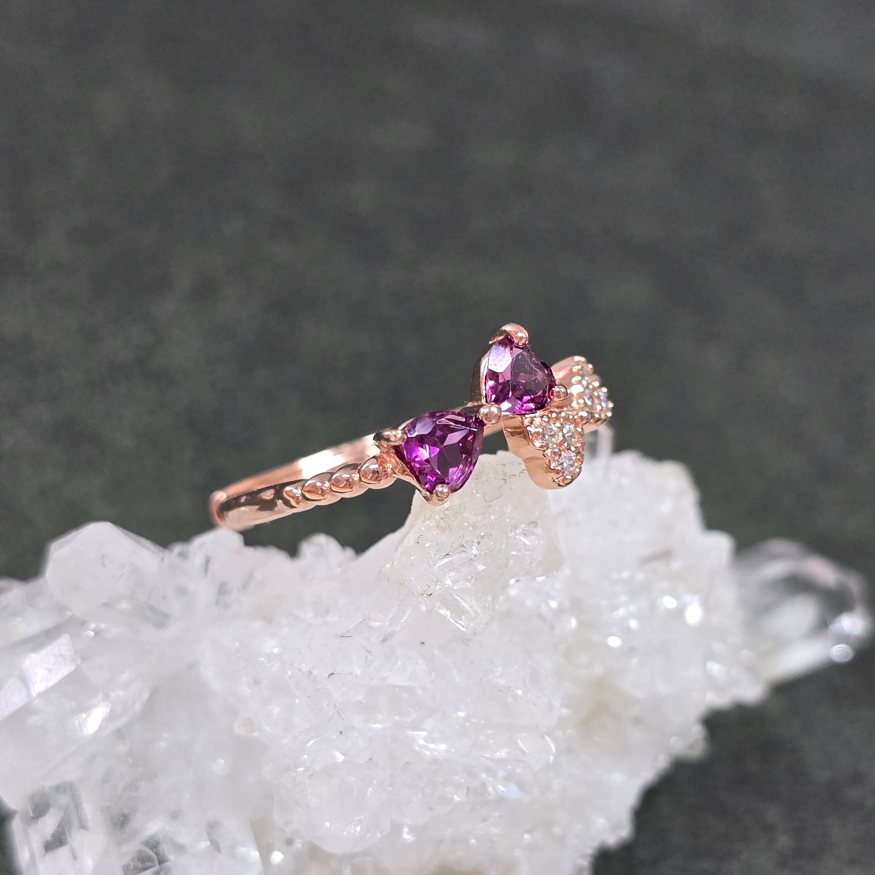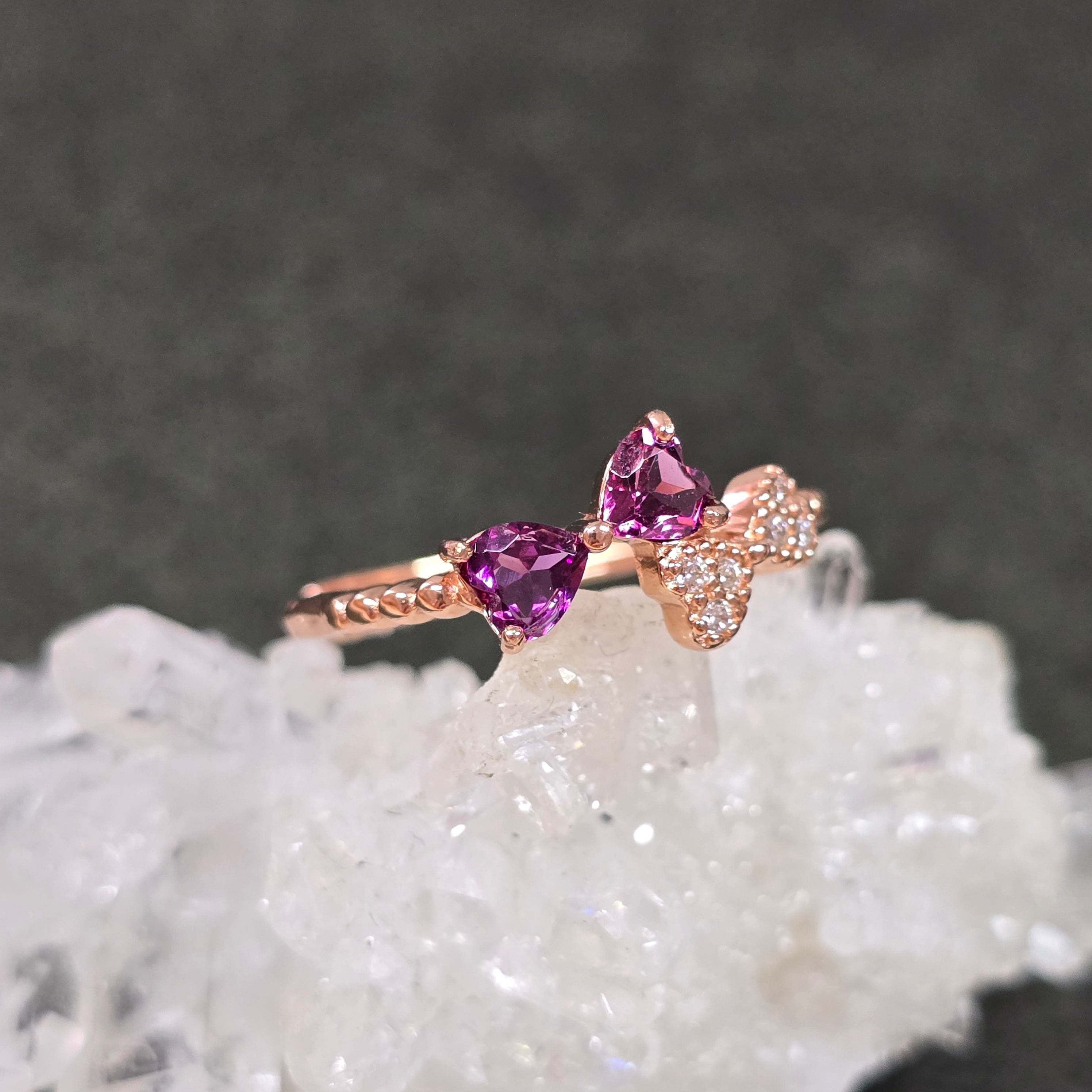 ロードライトガーネット リボン リング ロードライトガーネット 指輪 ピンクゴールド キラキラ