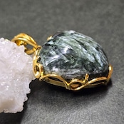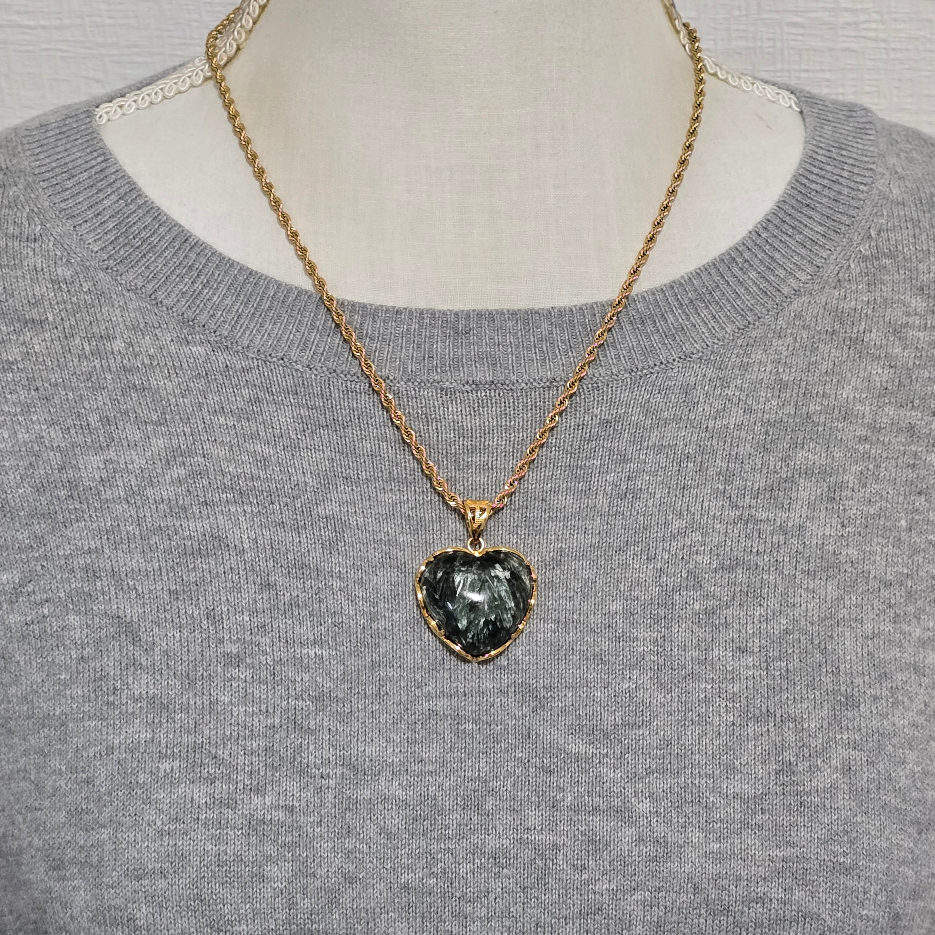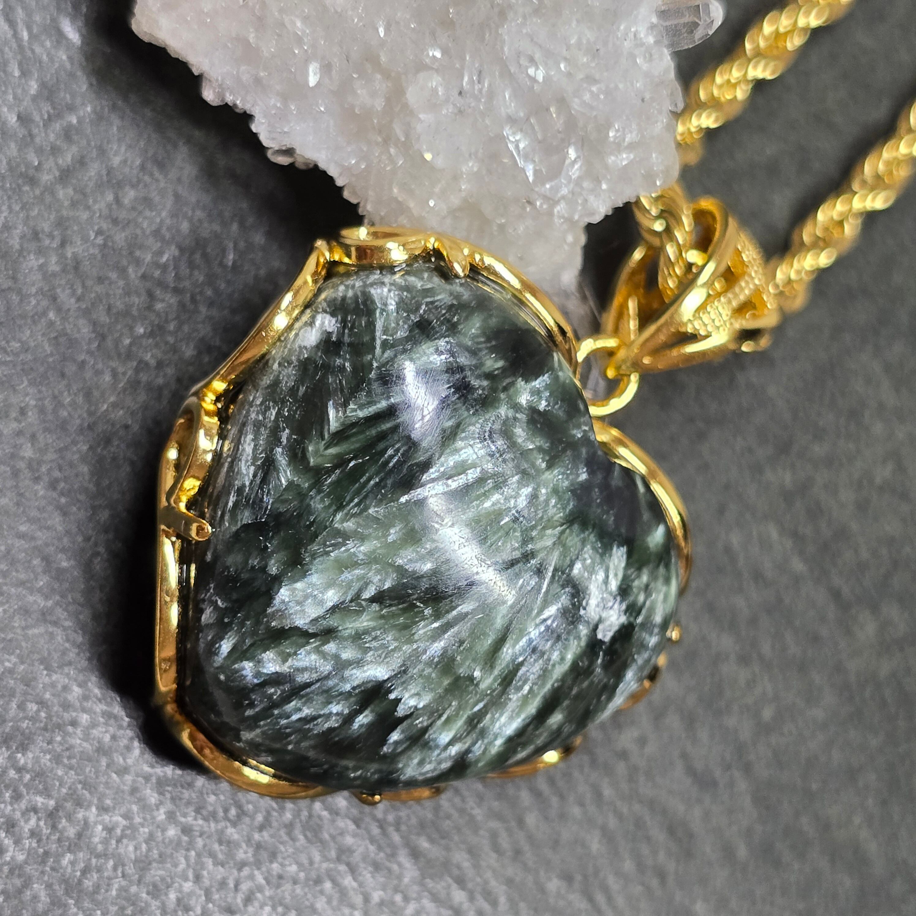 セラフィナイト ハート ペンダント セラフィナイト ネックレス ゴールド ふりふり