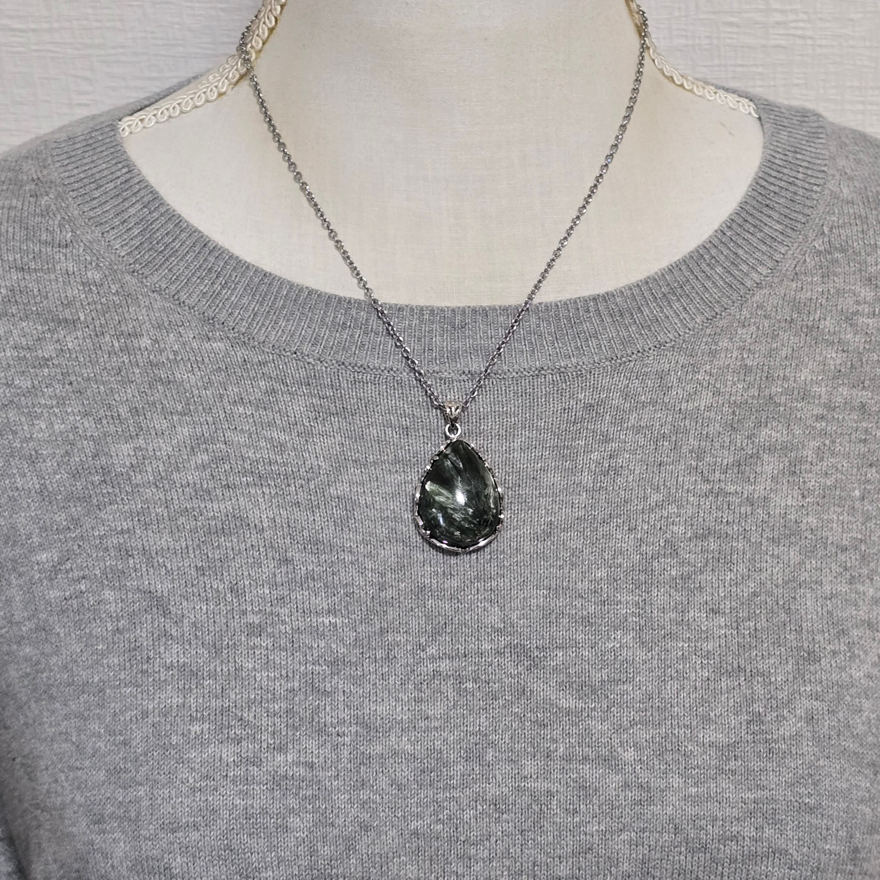 セラフィナイト ペンダント セラフィナイト ネックレス シルバー ふりふり