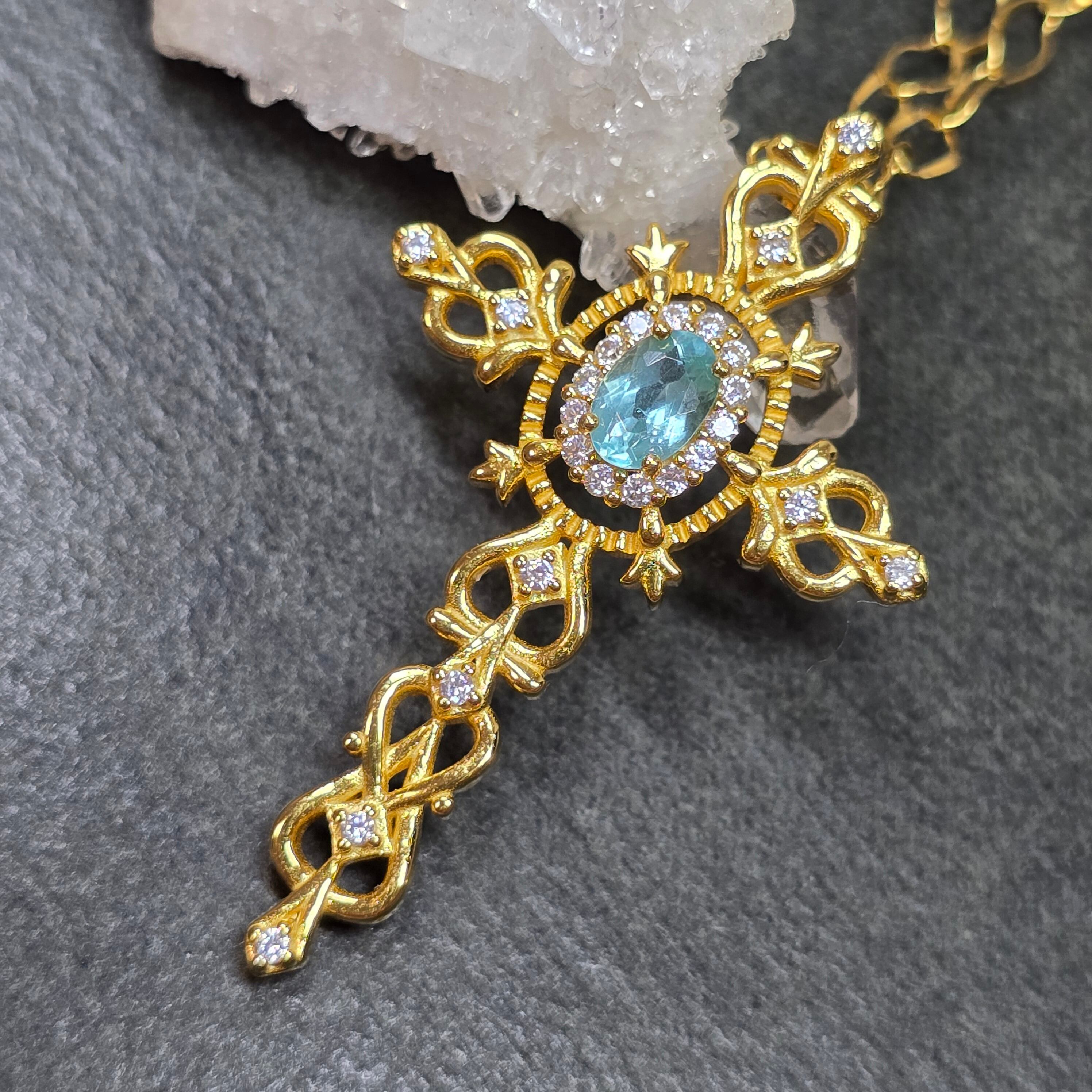 パライバカラーアパタイト クロス ペンダント パライバカラーアパタイトネックレス ゴールド キラキラ