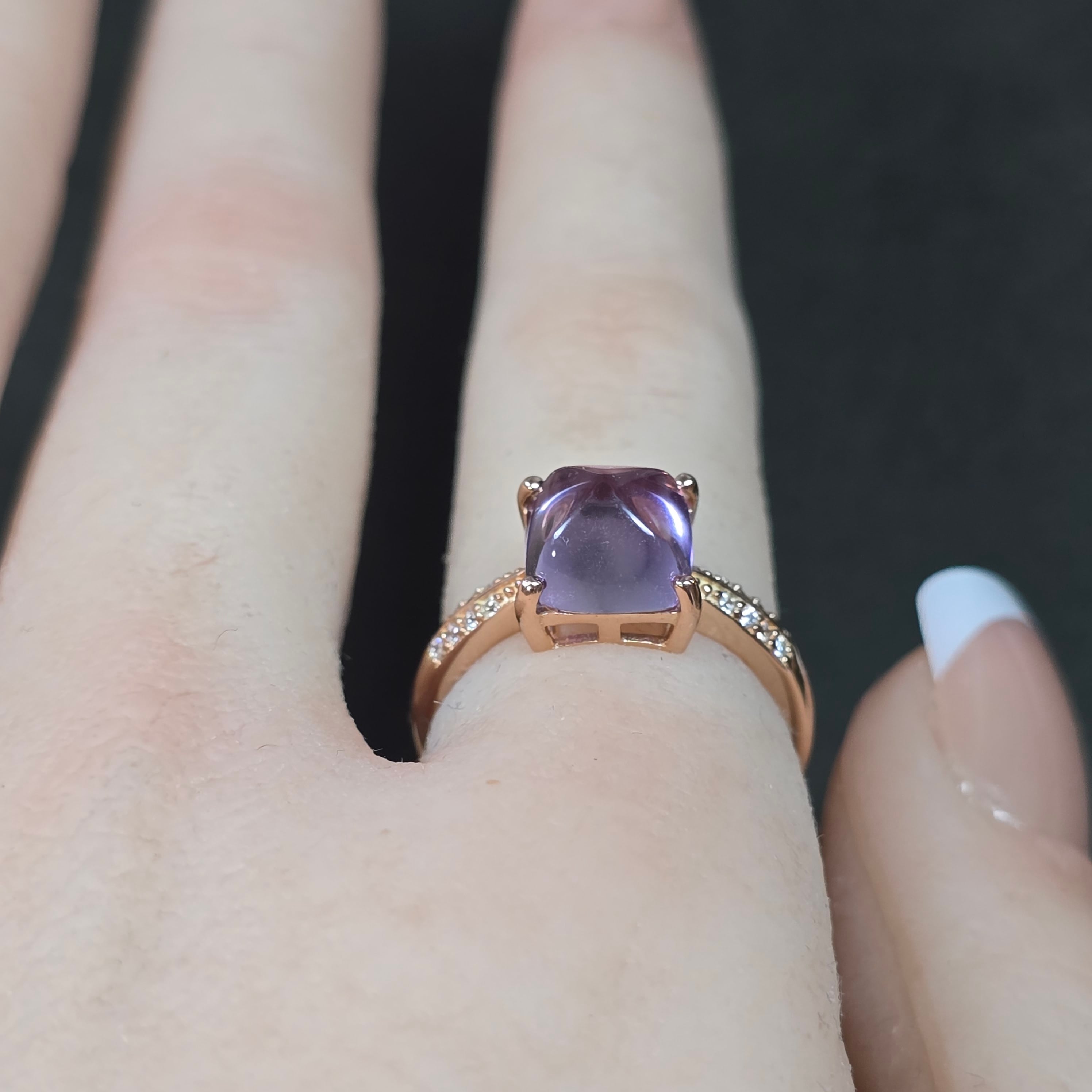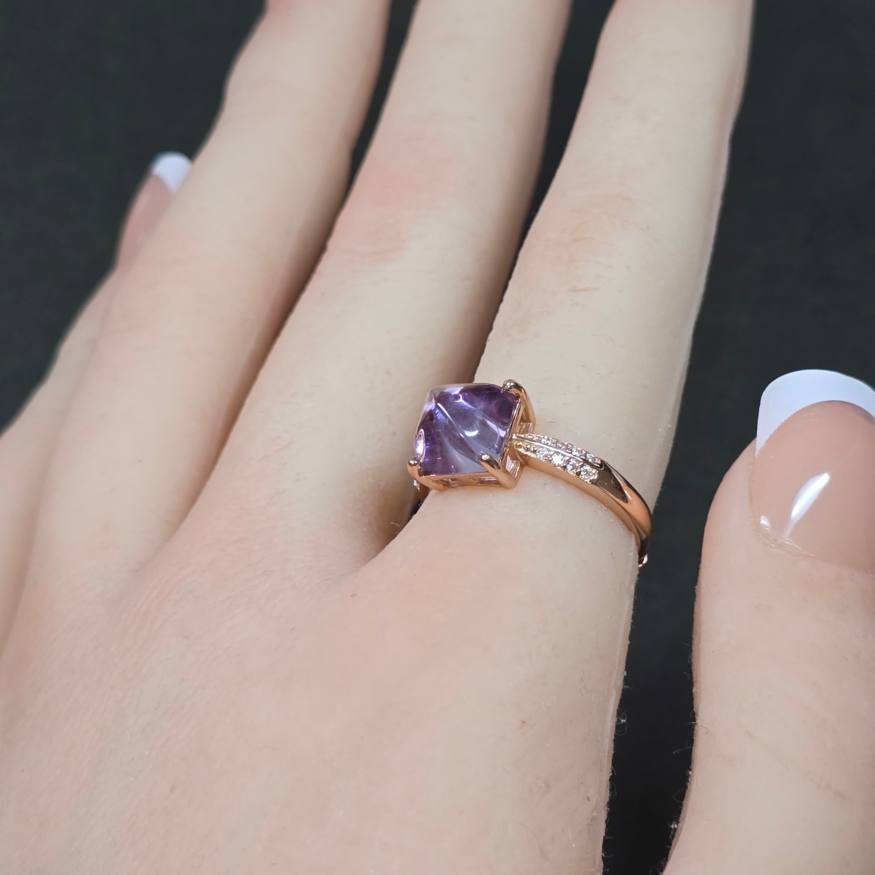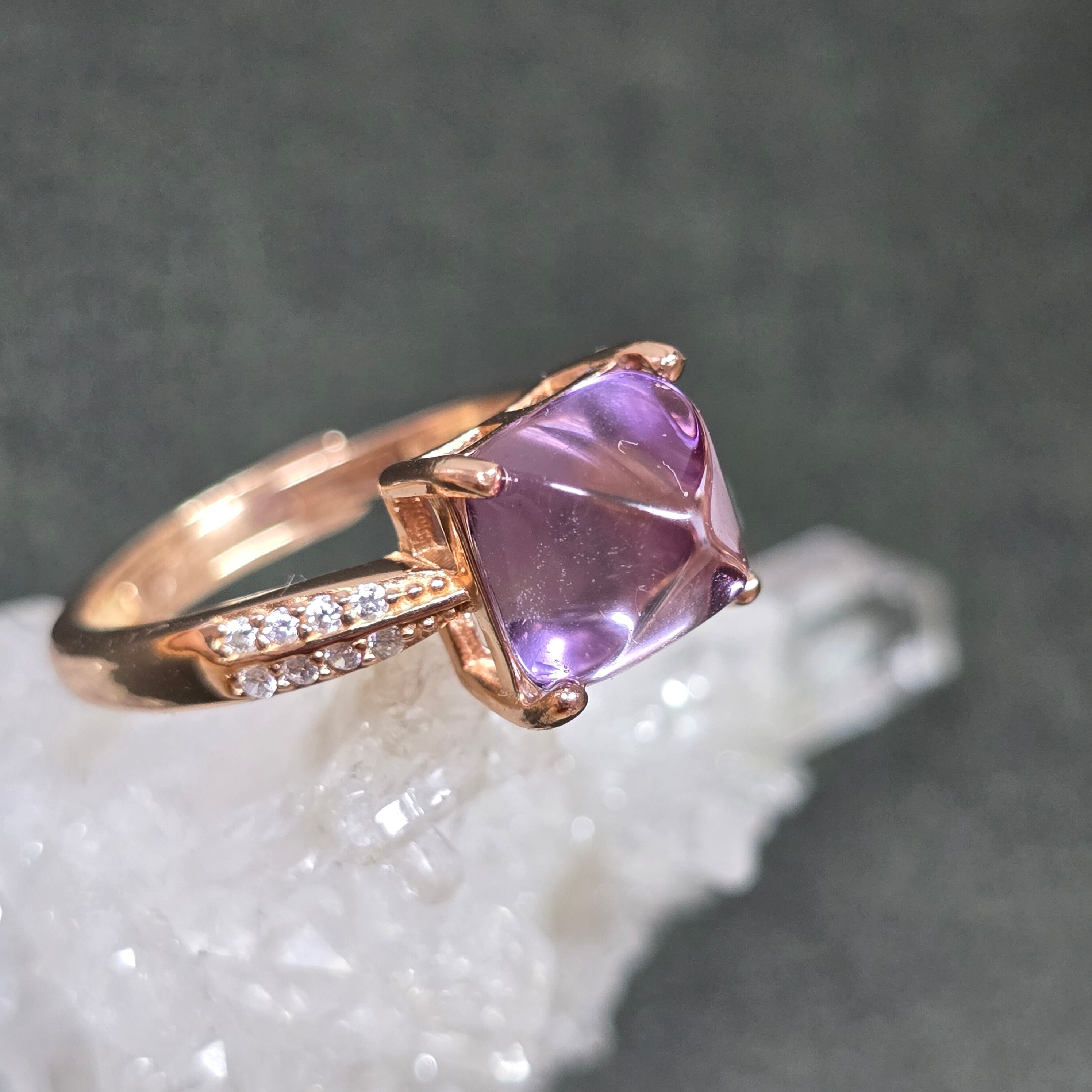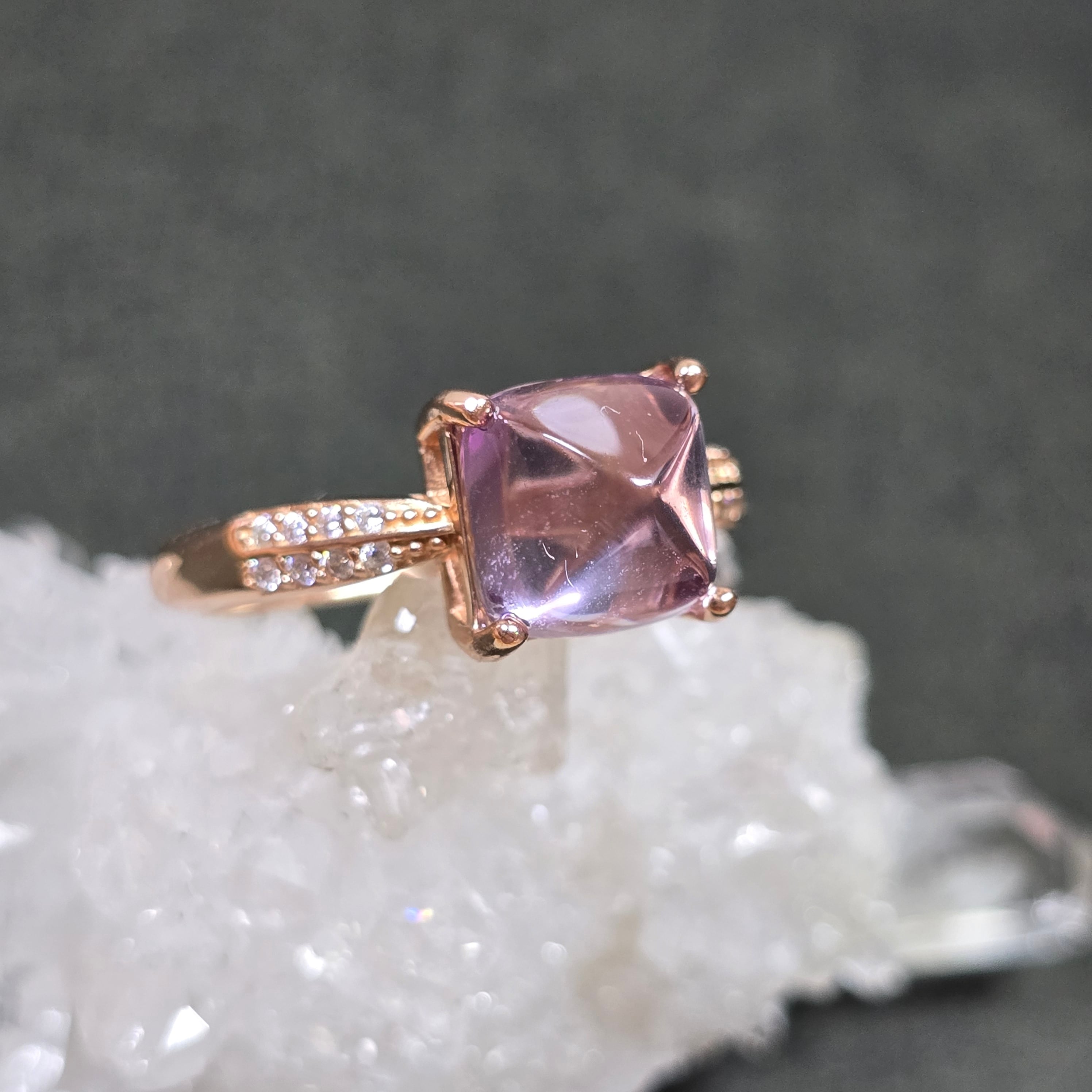 アメシスト リング アメジスト 指輪 シュガーローフ ピンクゴールド キラキラ