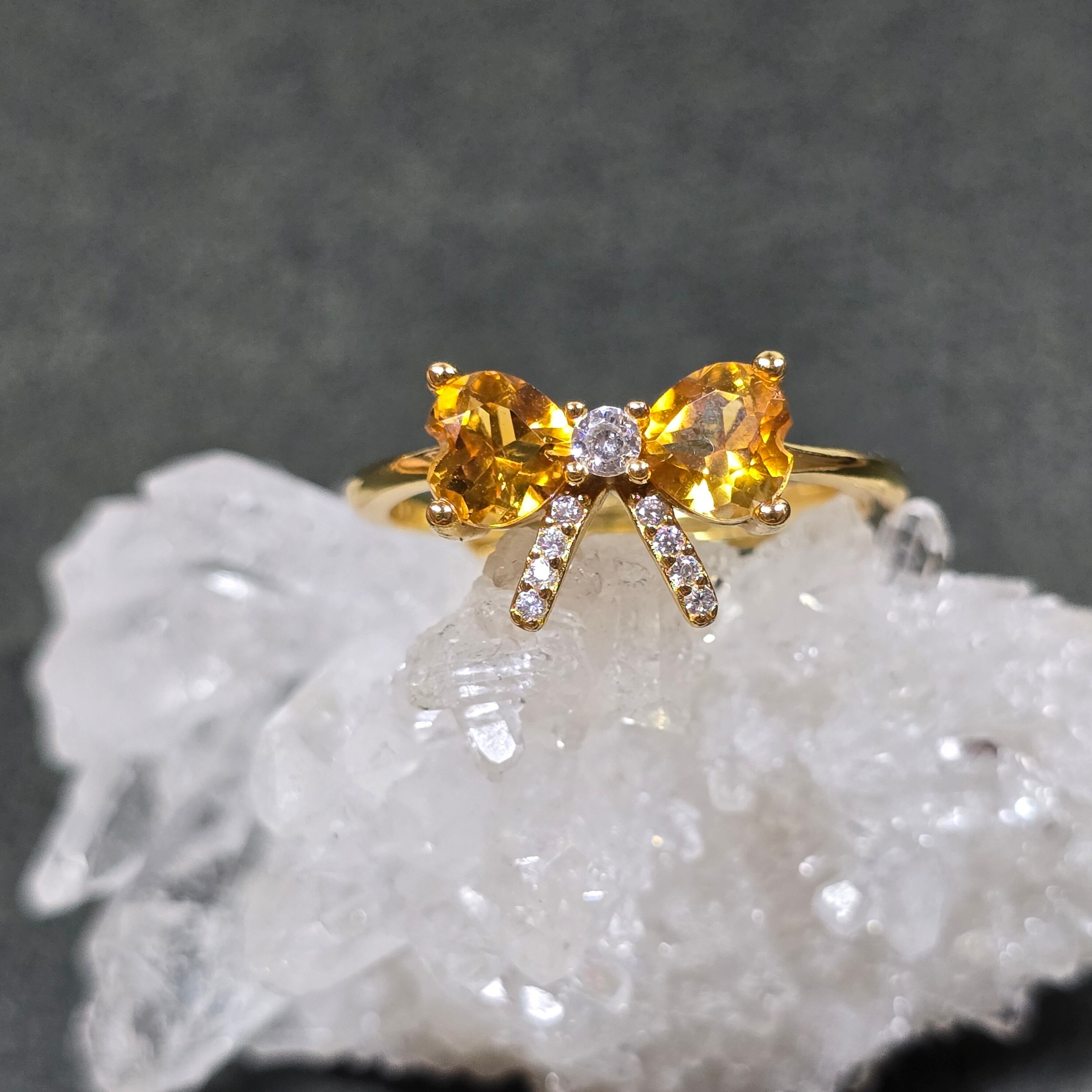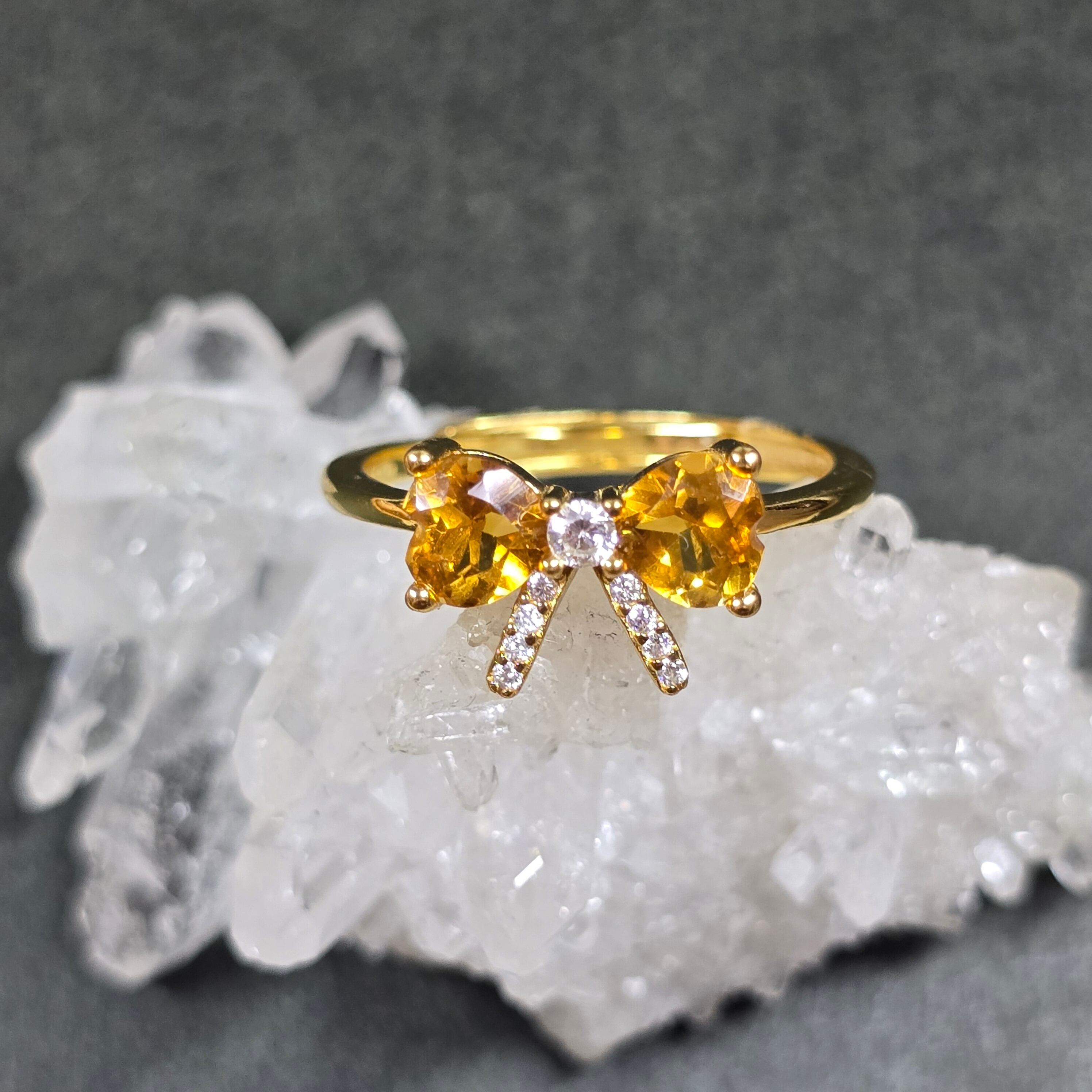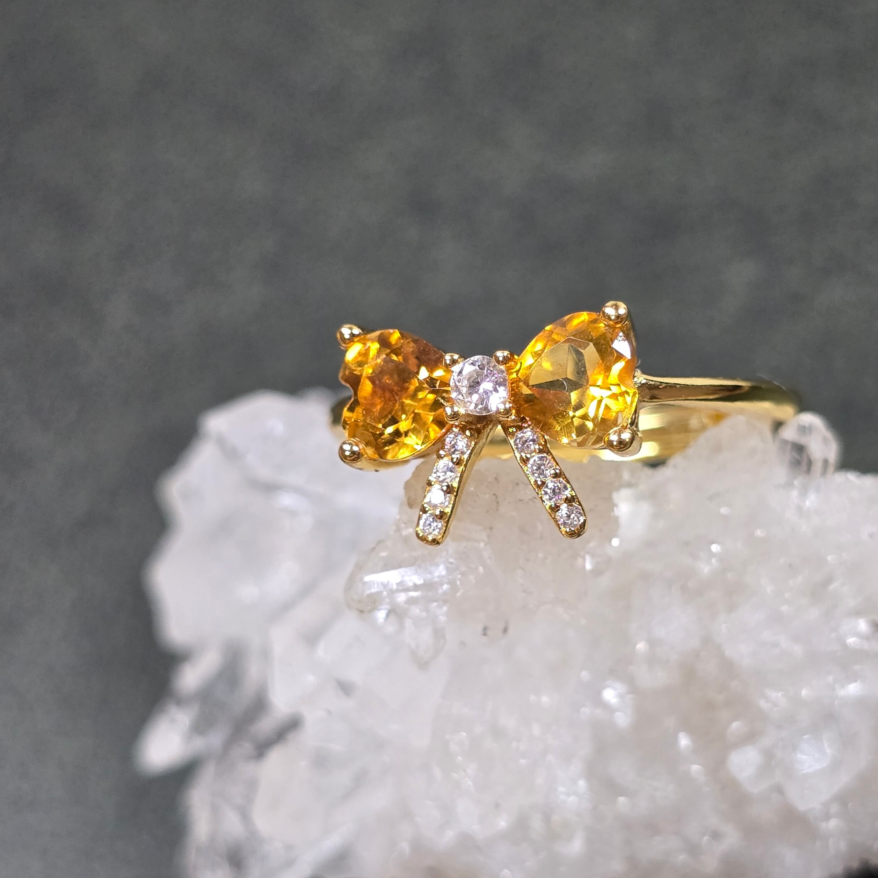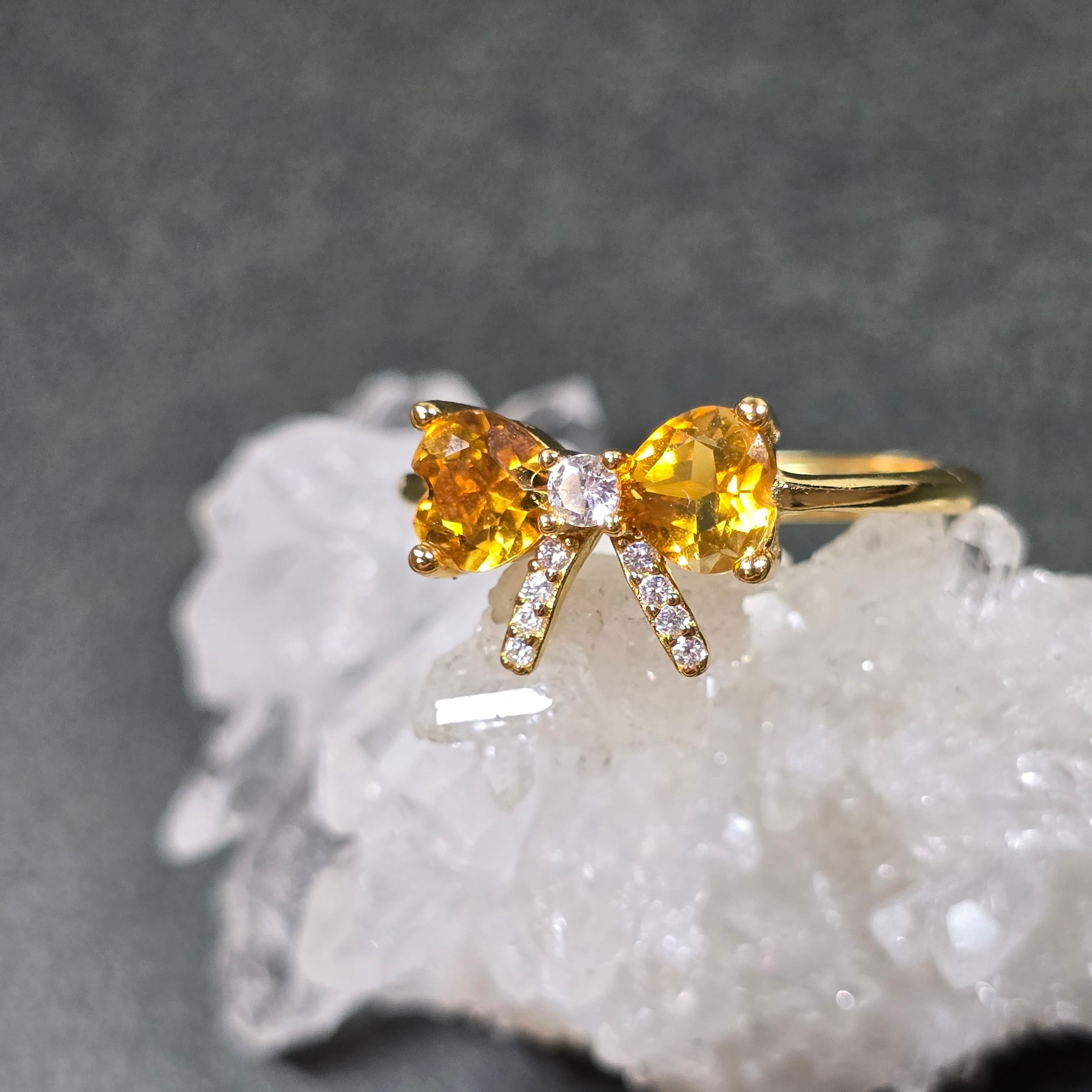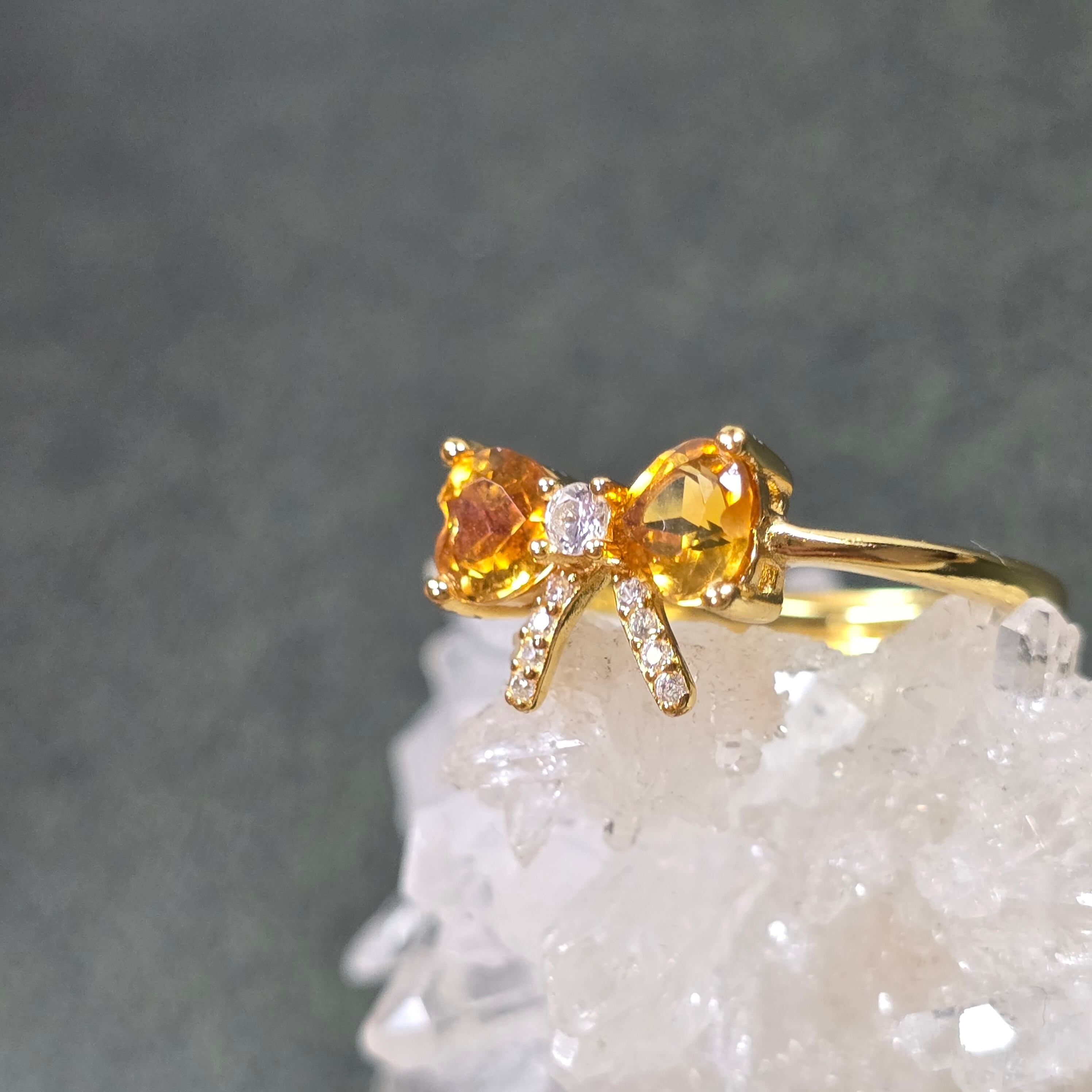 シトリン リボン リング シトリン 指輪 ゴールド キラキラ