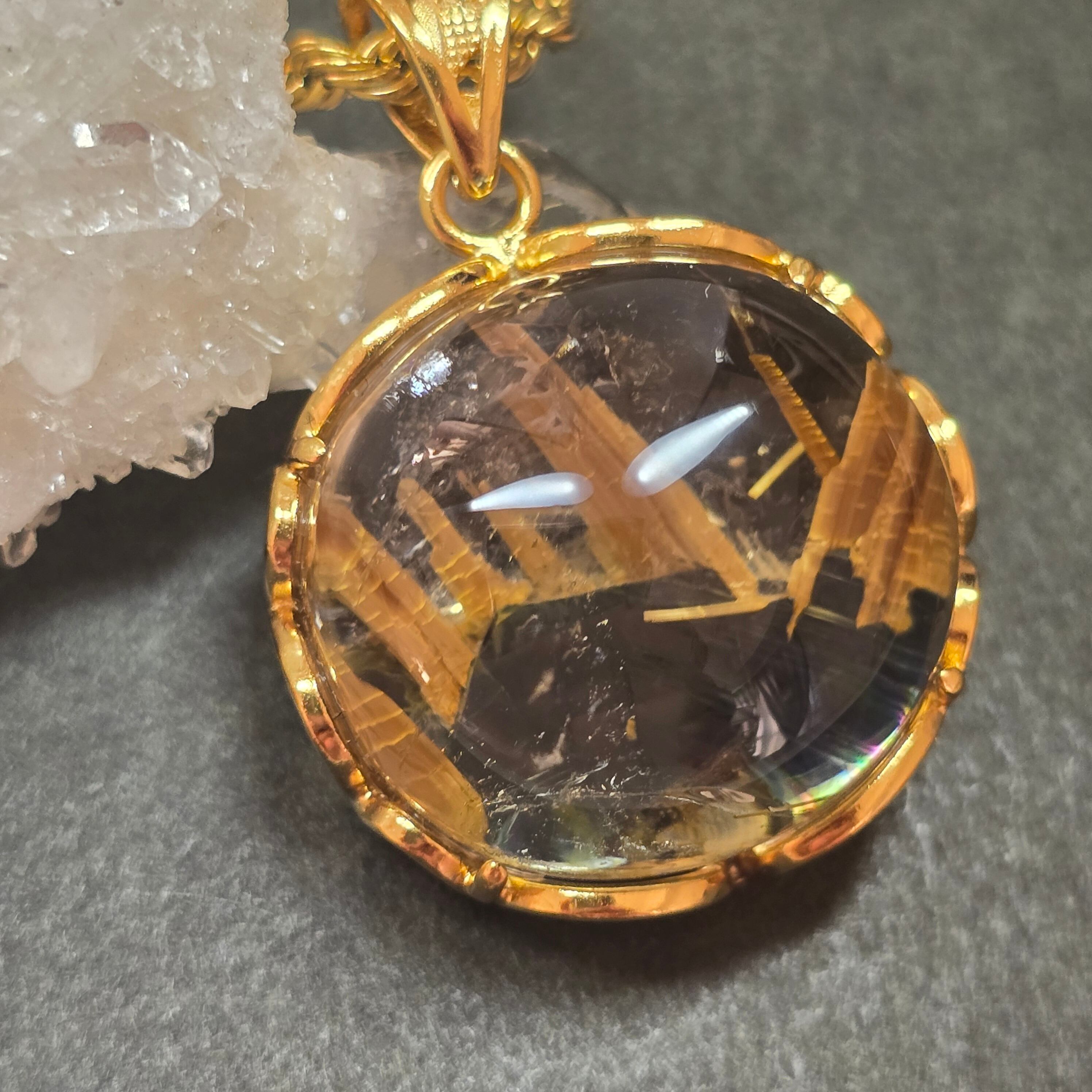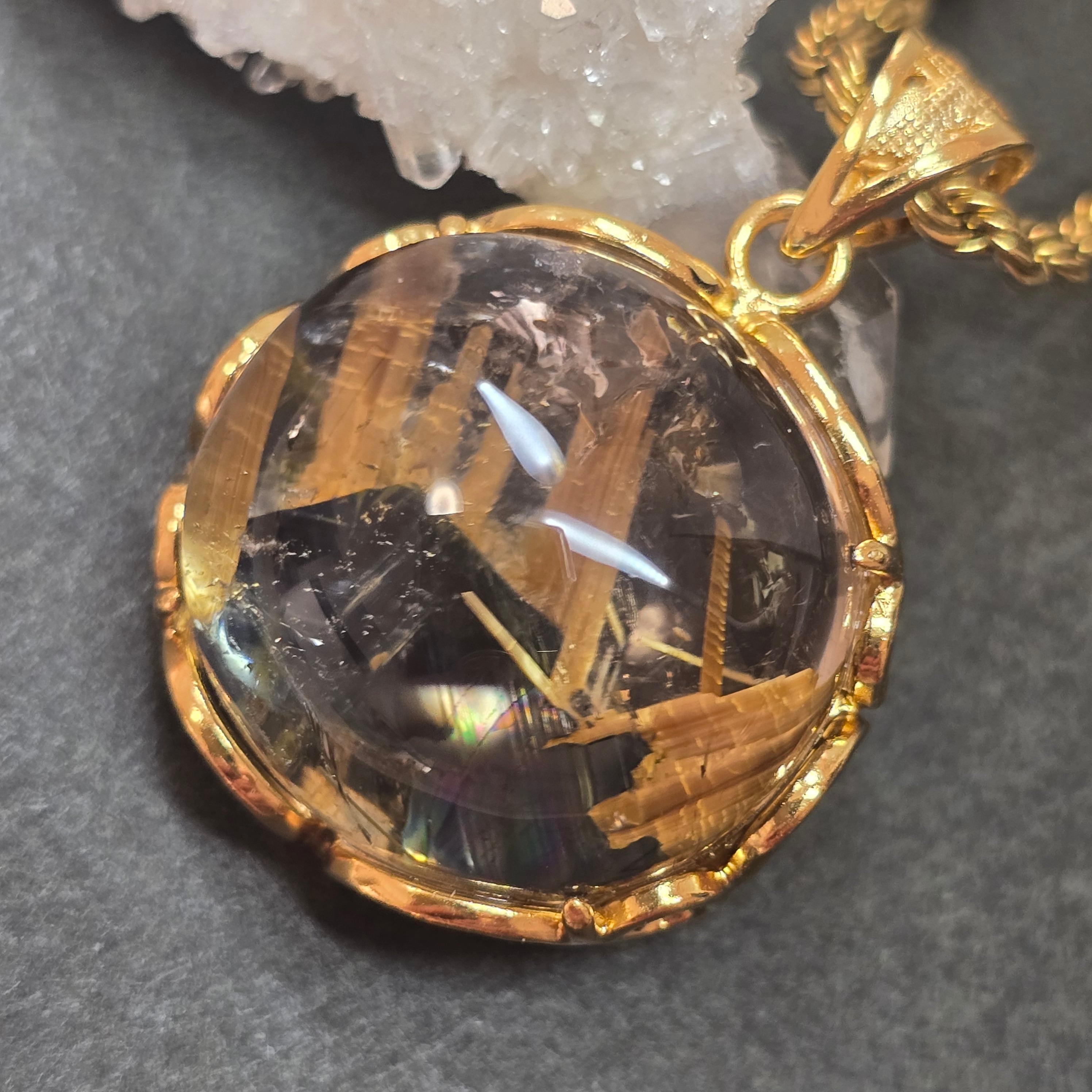 ヘマタイトインタイチンルチルクォーツ ペンダント ルチルクォーツ ネックレス ゴールド ふりふり