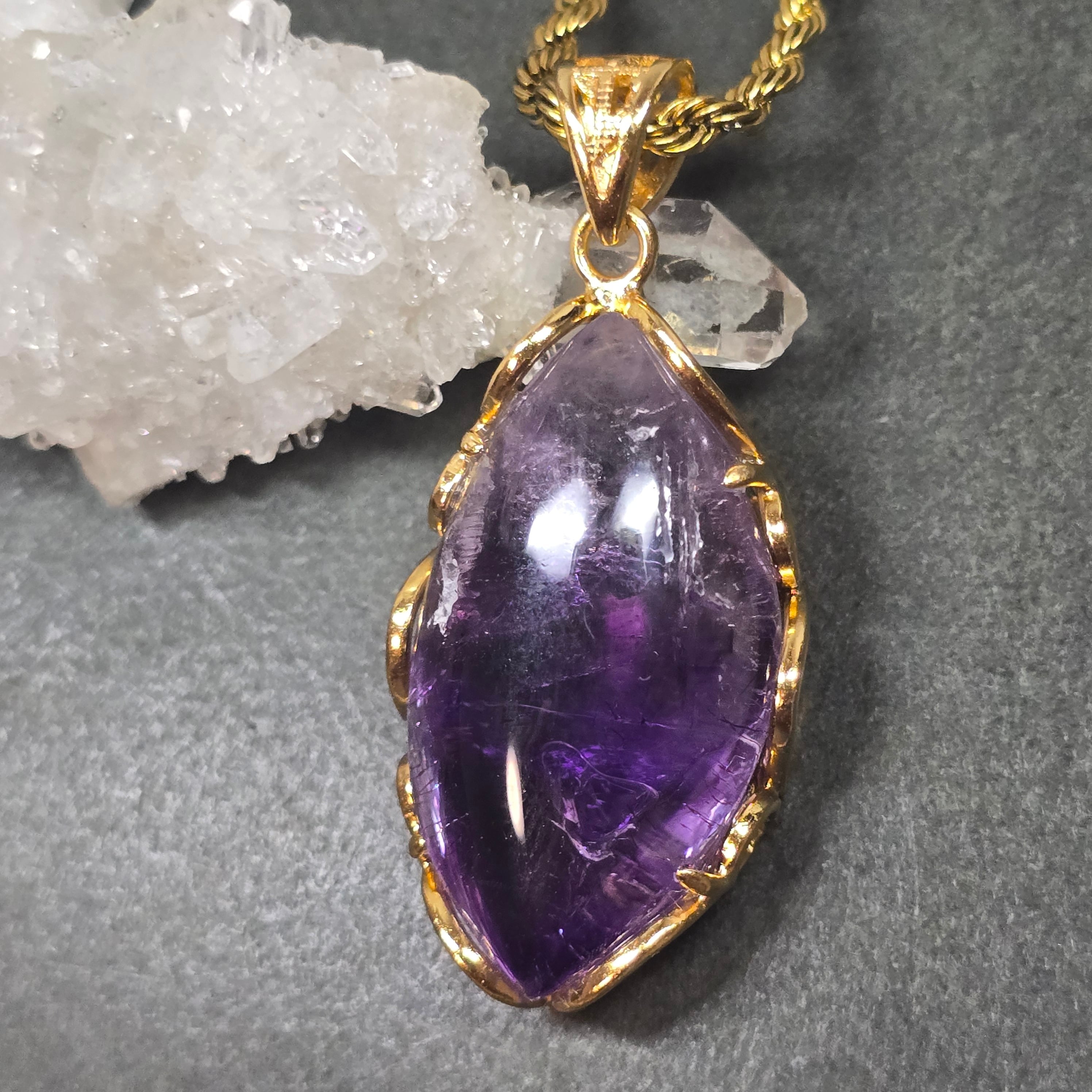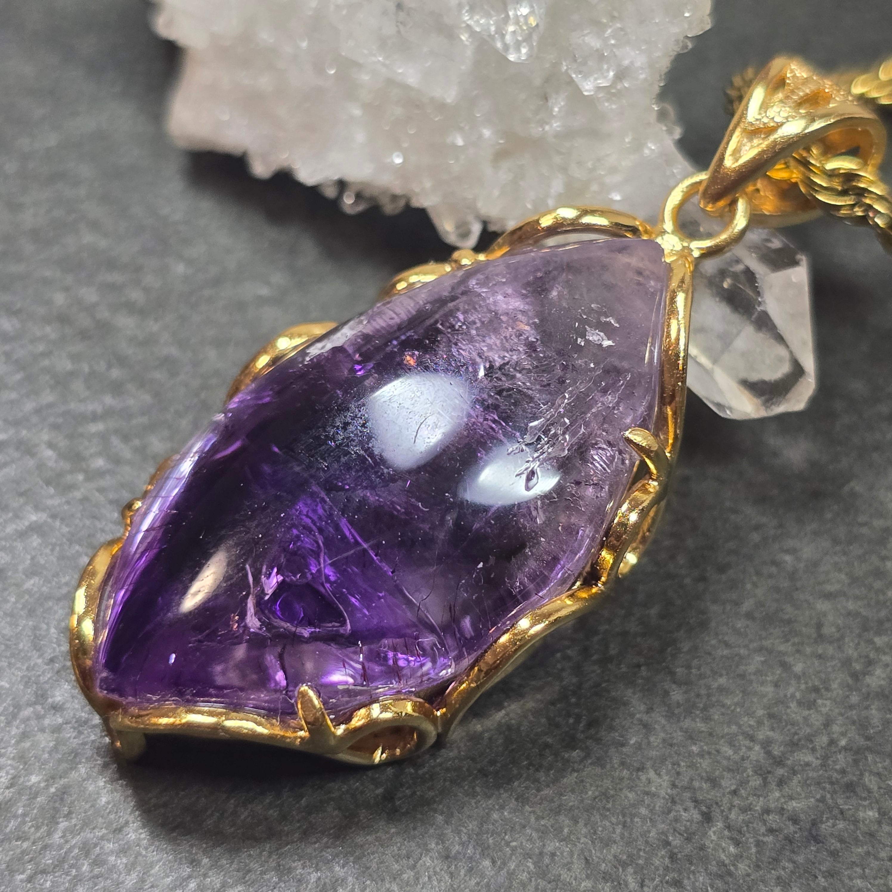 水入りアメシスト ペンダント エンハイドロアメシスト ネックレス ゴールド ふりふり