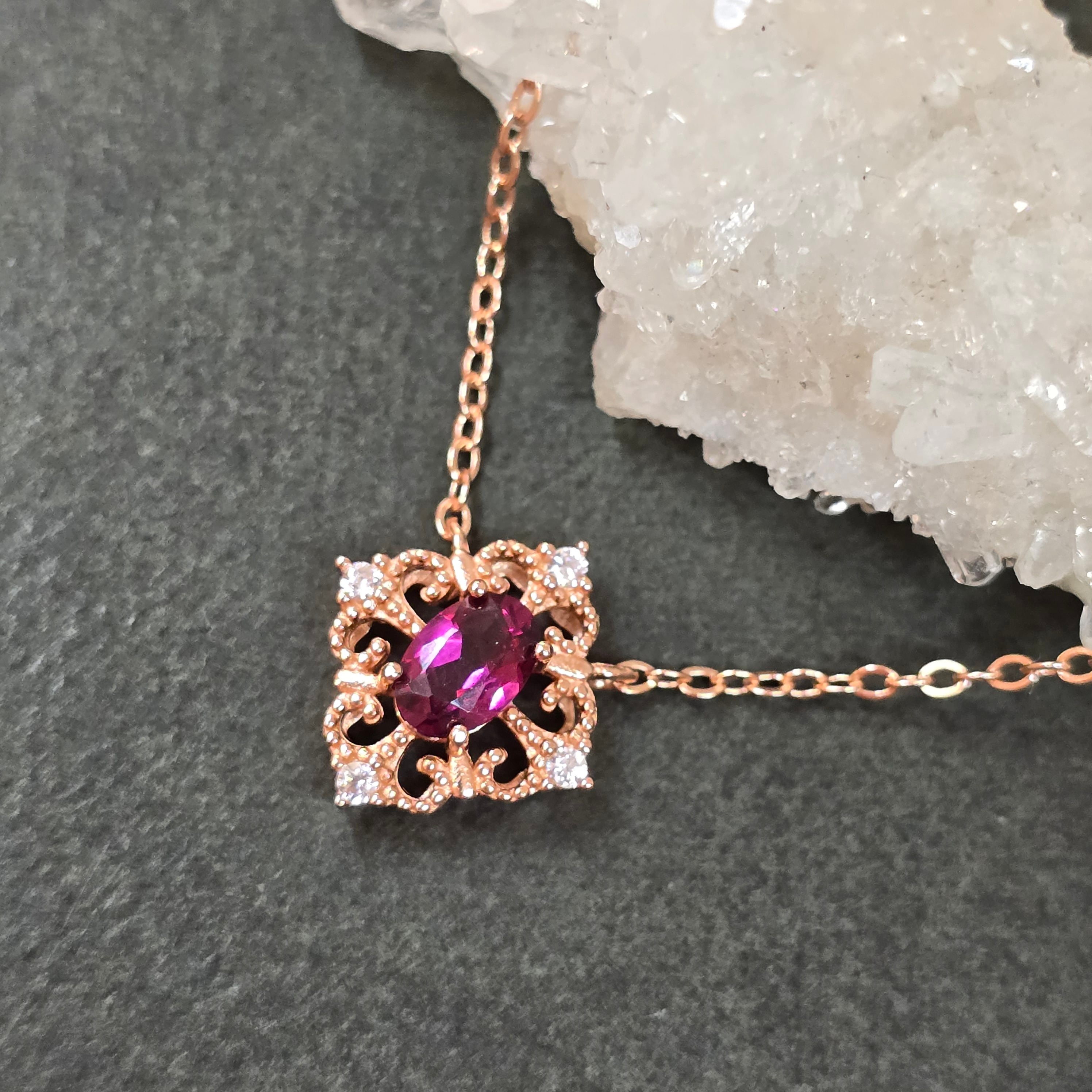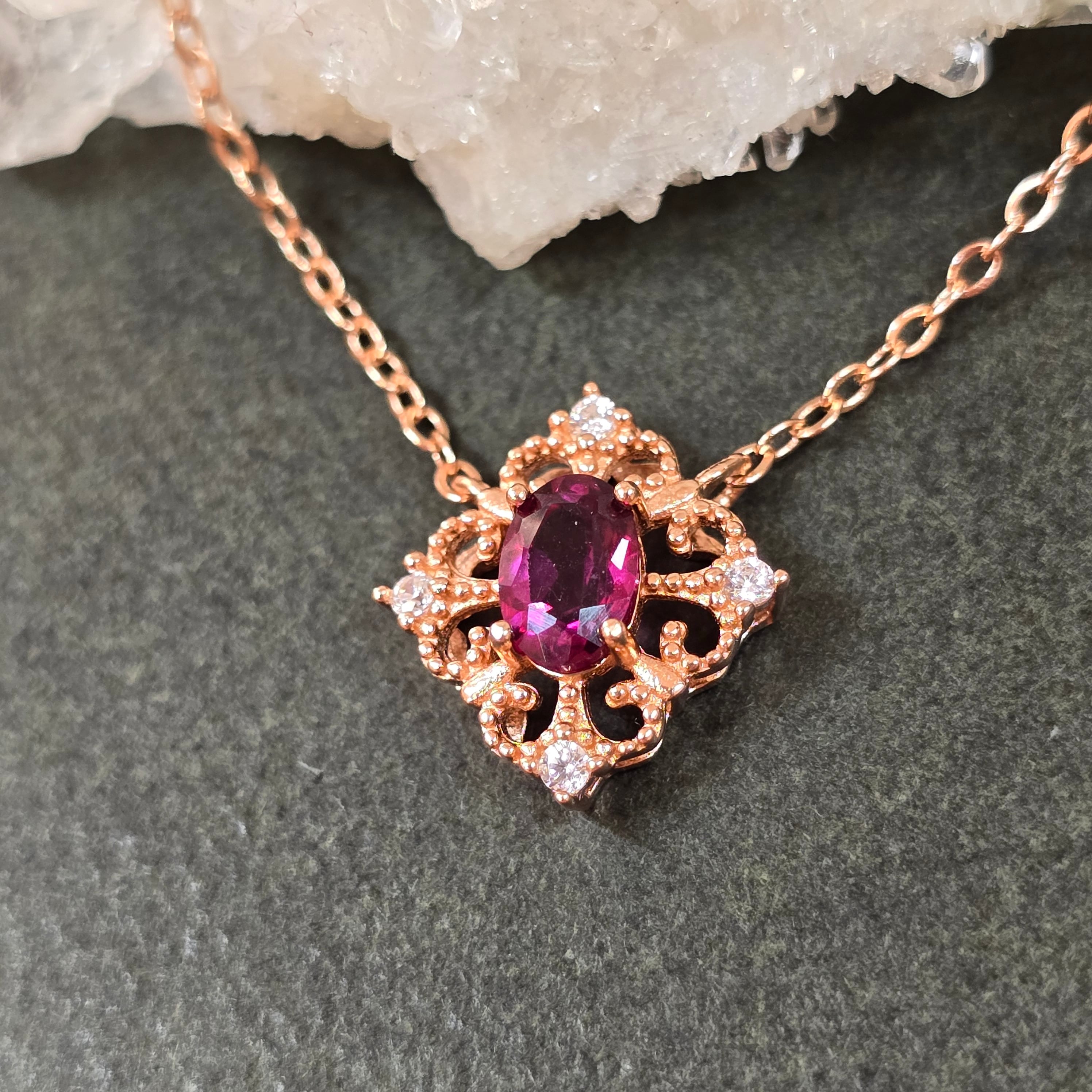 ロードライトガーネット ネックレス ピンクゴールド キラキラ