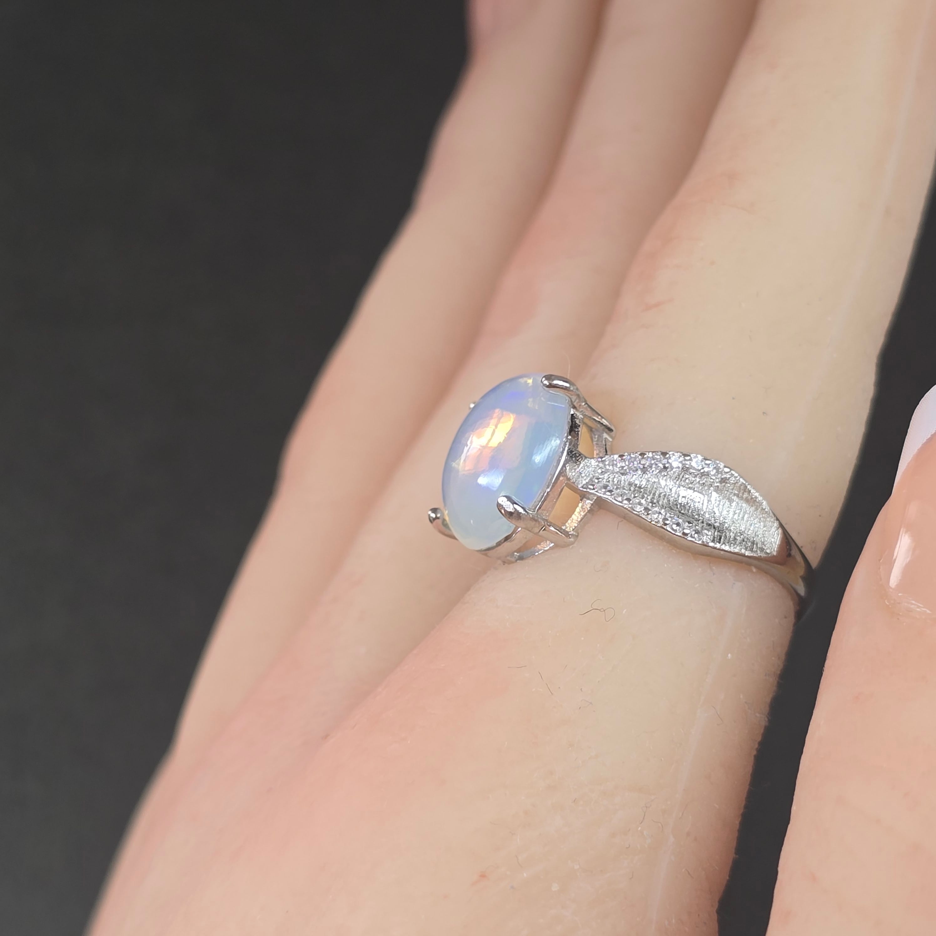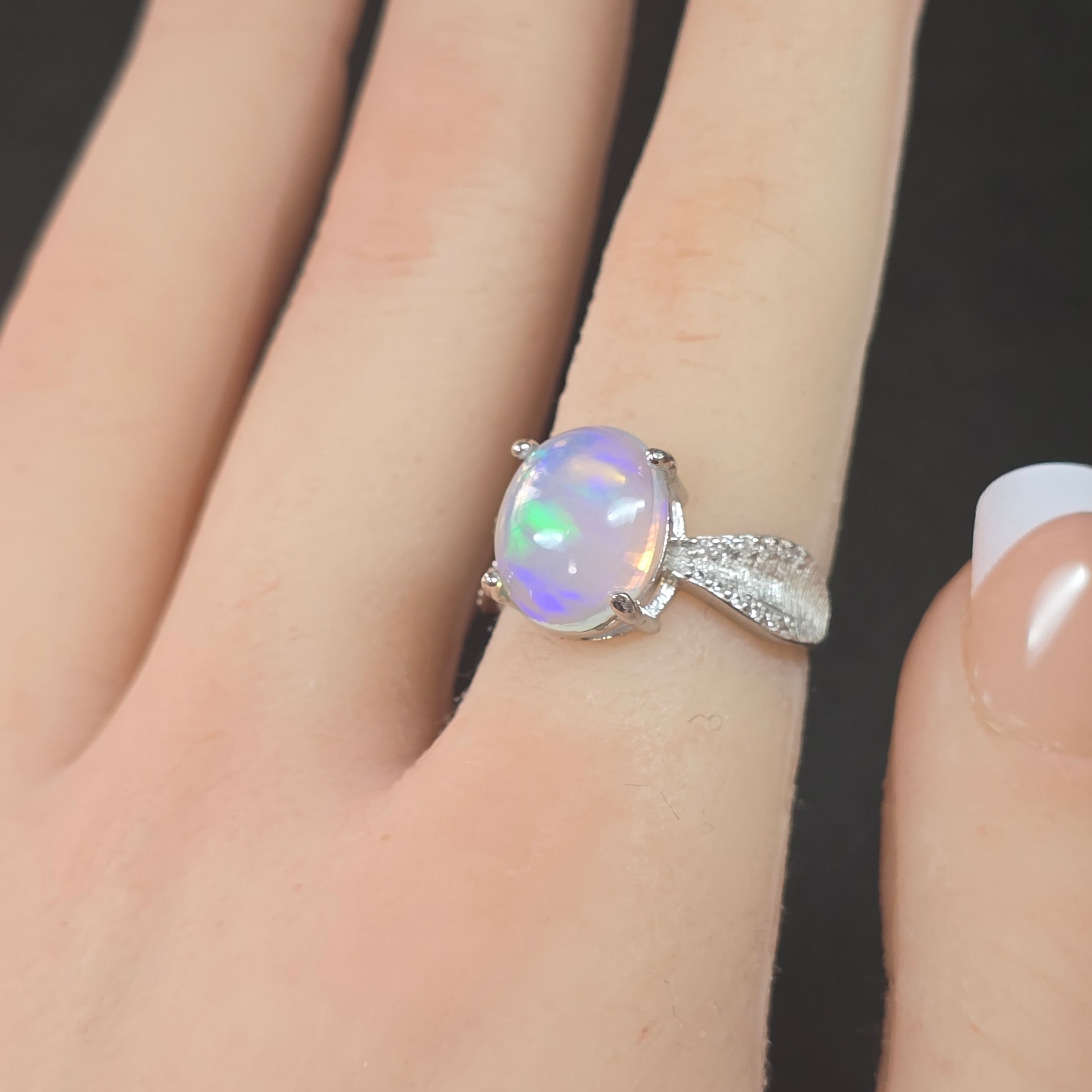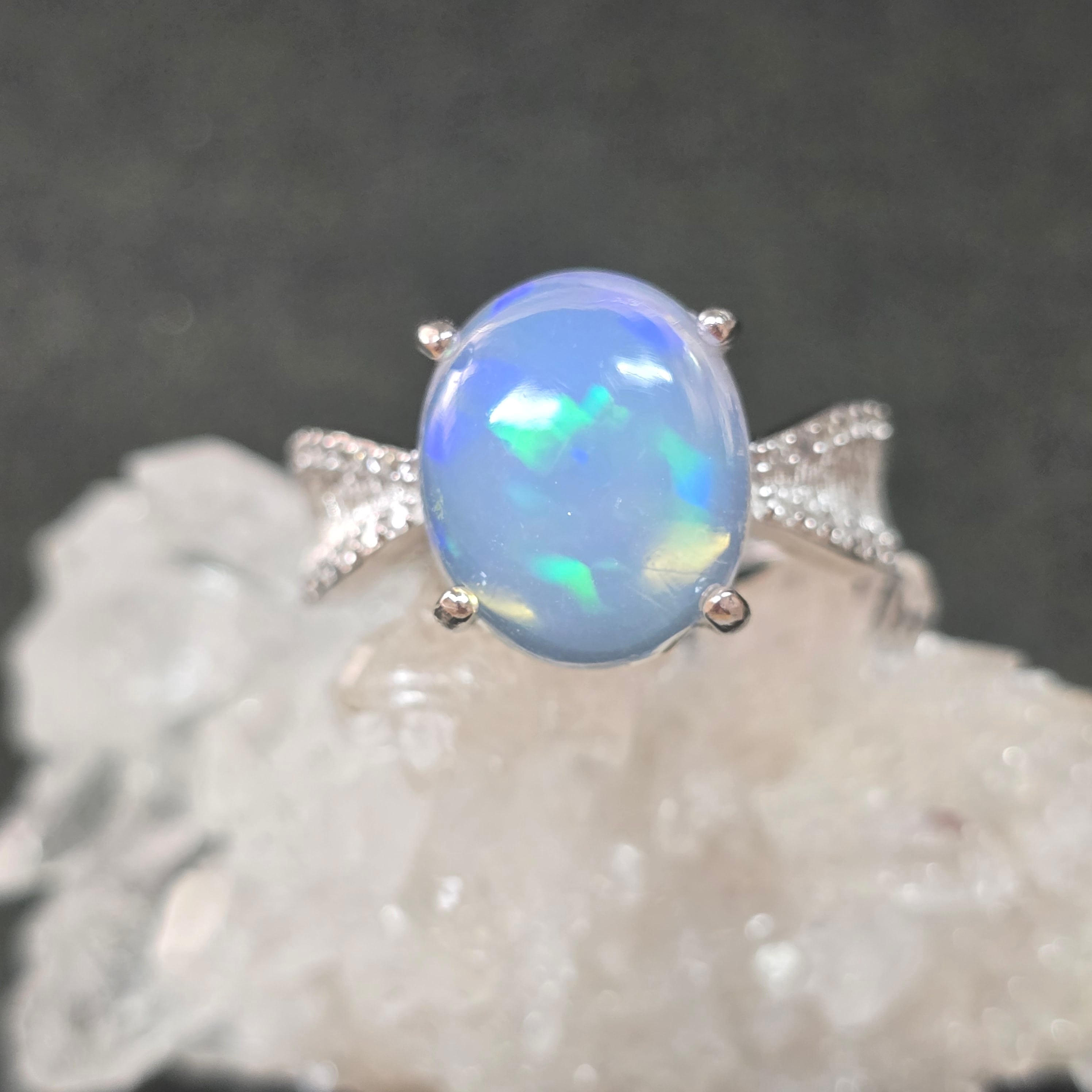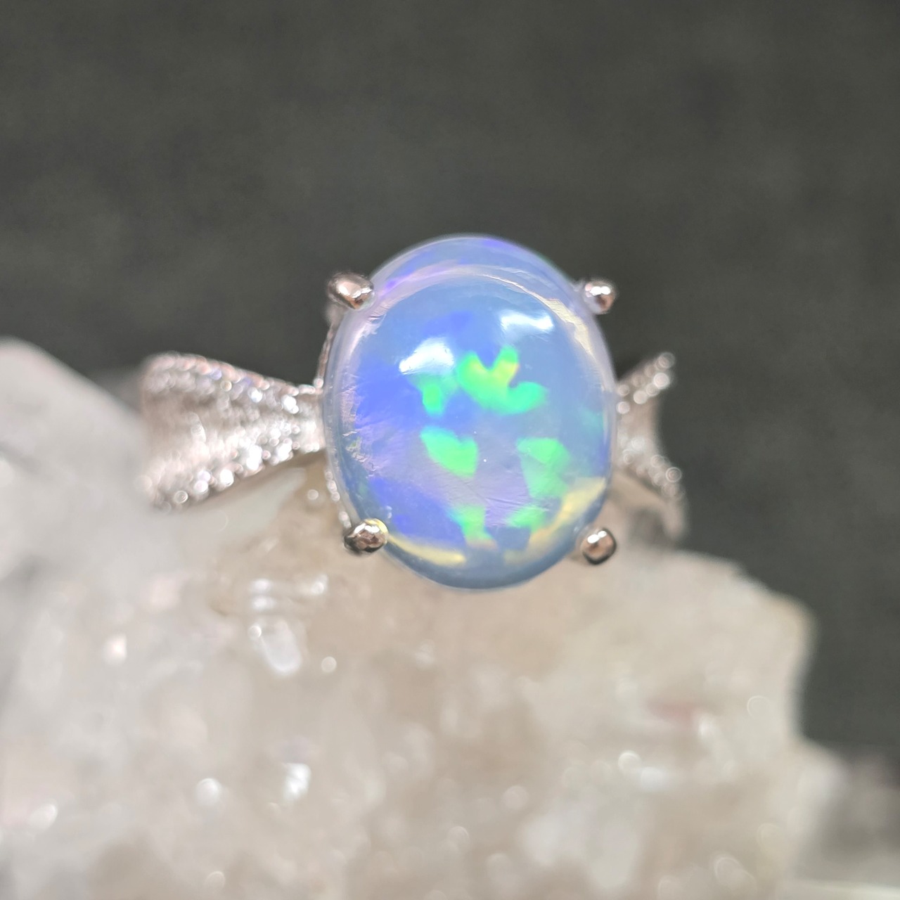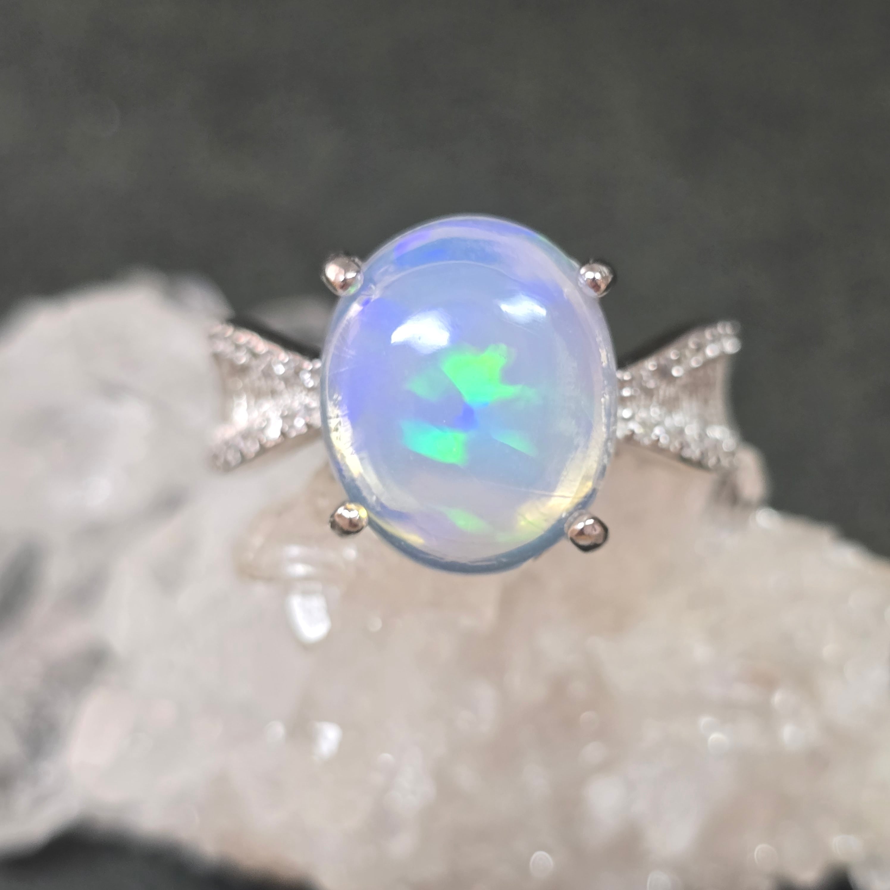 オパール リボン リング オパール 指輪 シルバー キラキラ