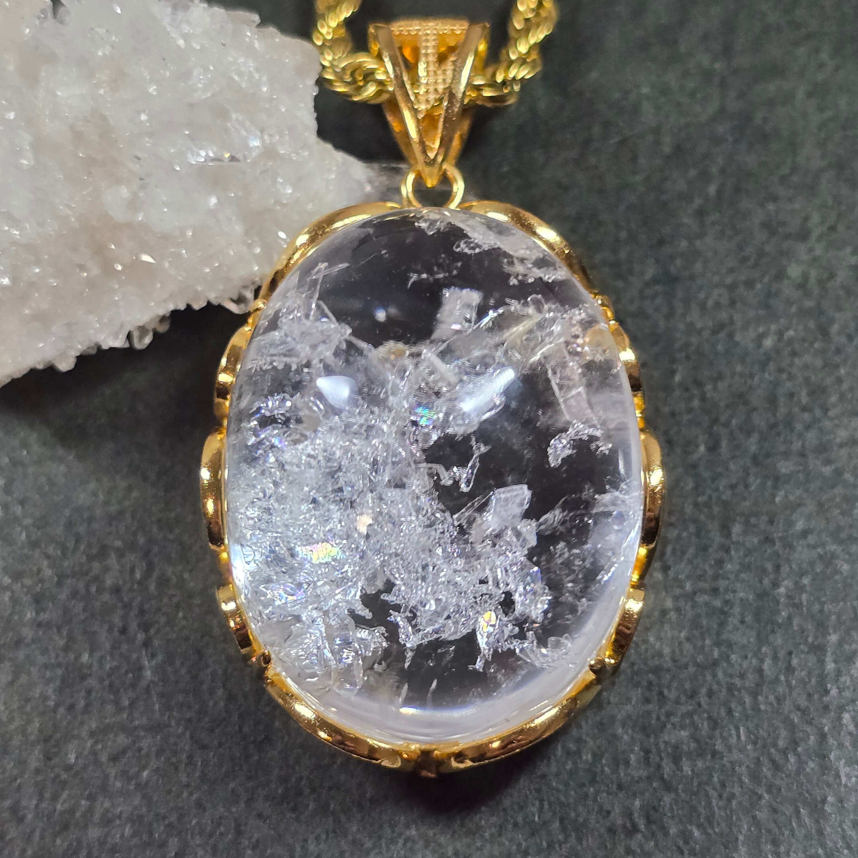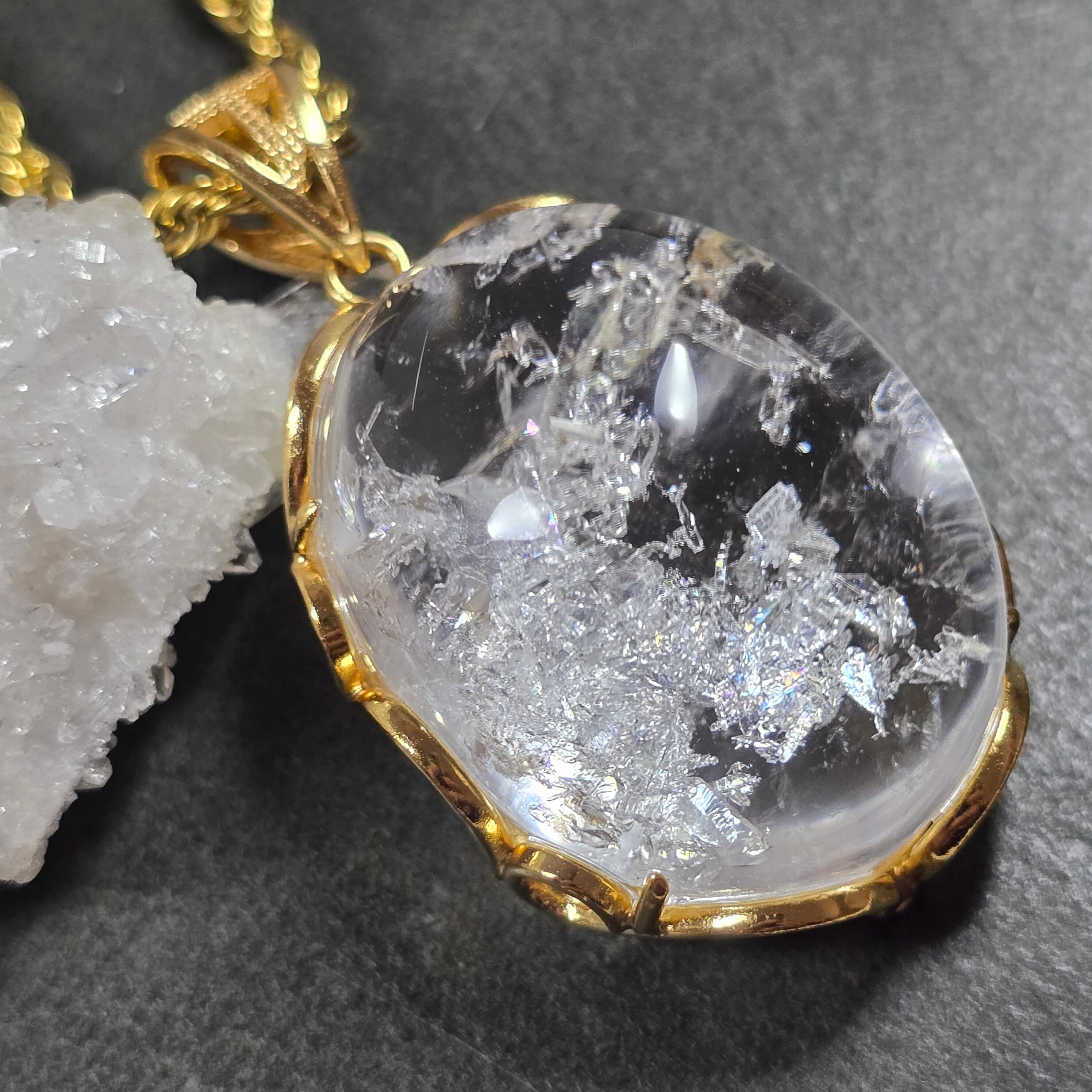 クォーツインクォーツ ペンダント クォーツインクォーツ ネックレス ゴールド ふりふり