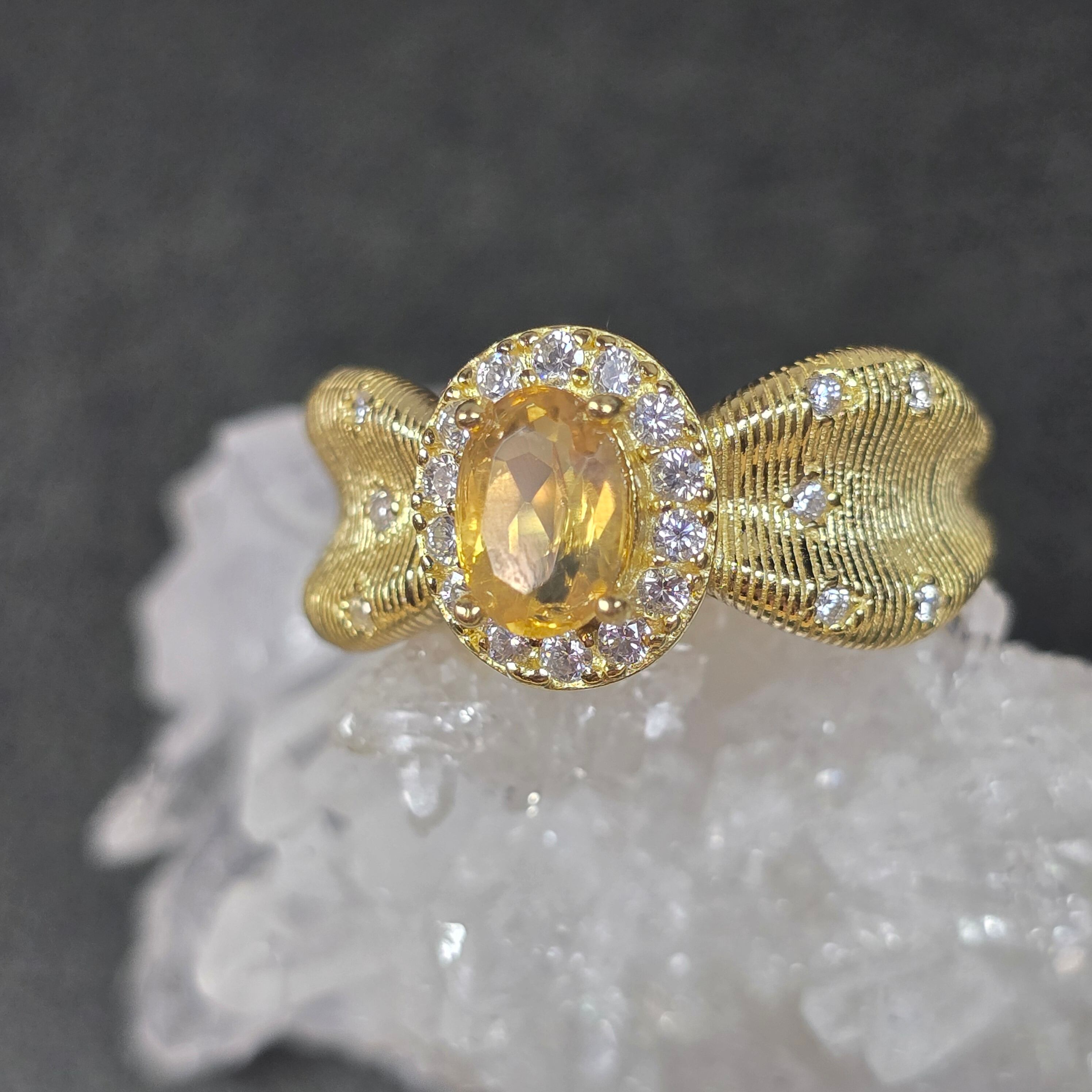 シトリン リボン リング シトリン 指輪 ゴールド キラキラ