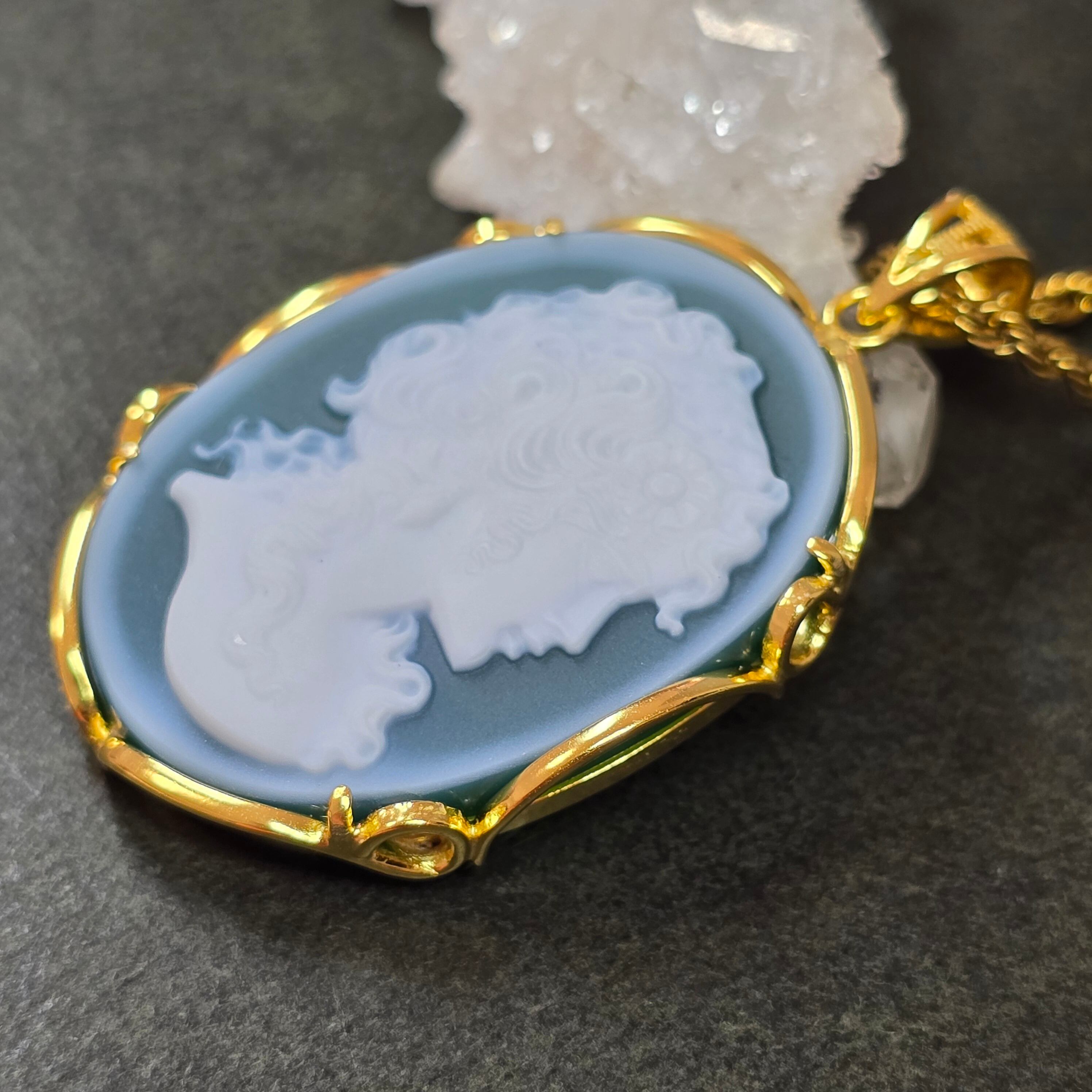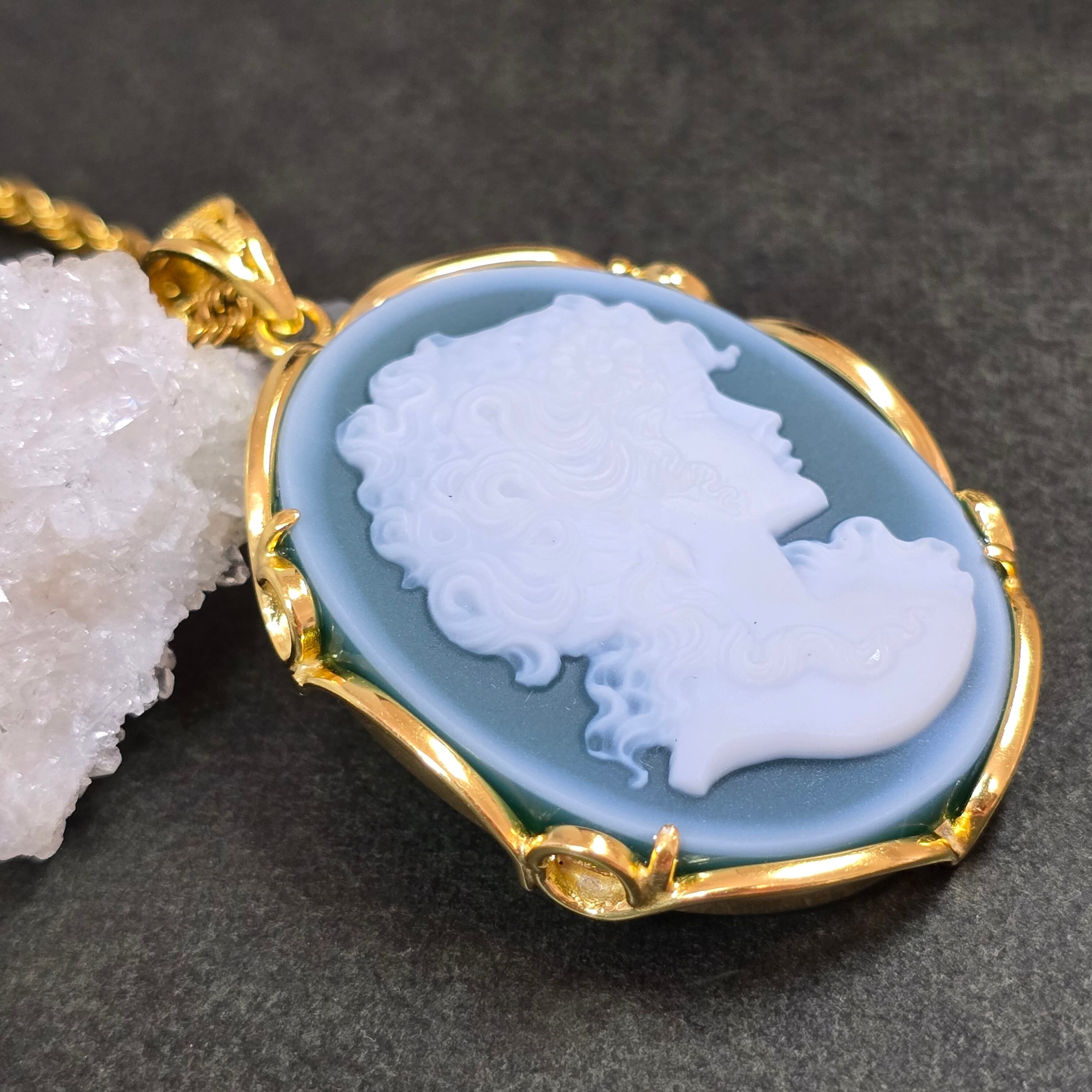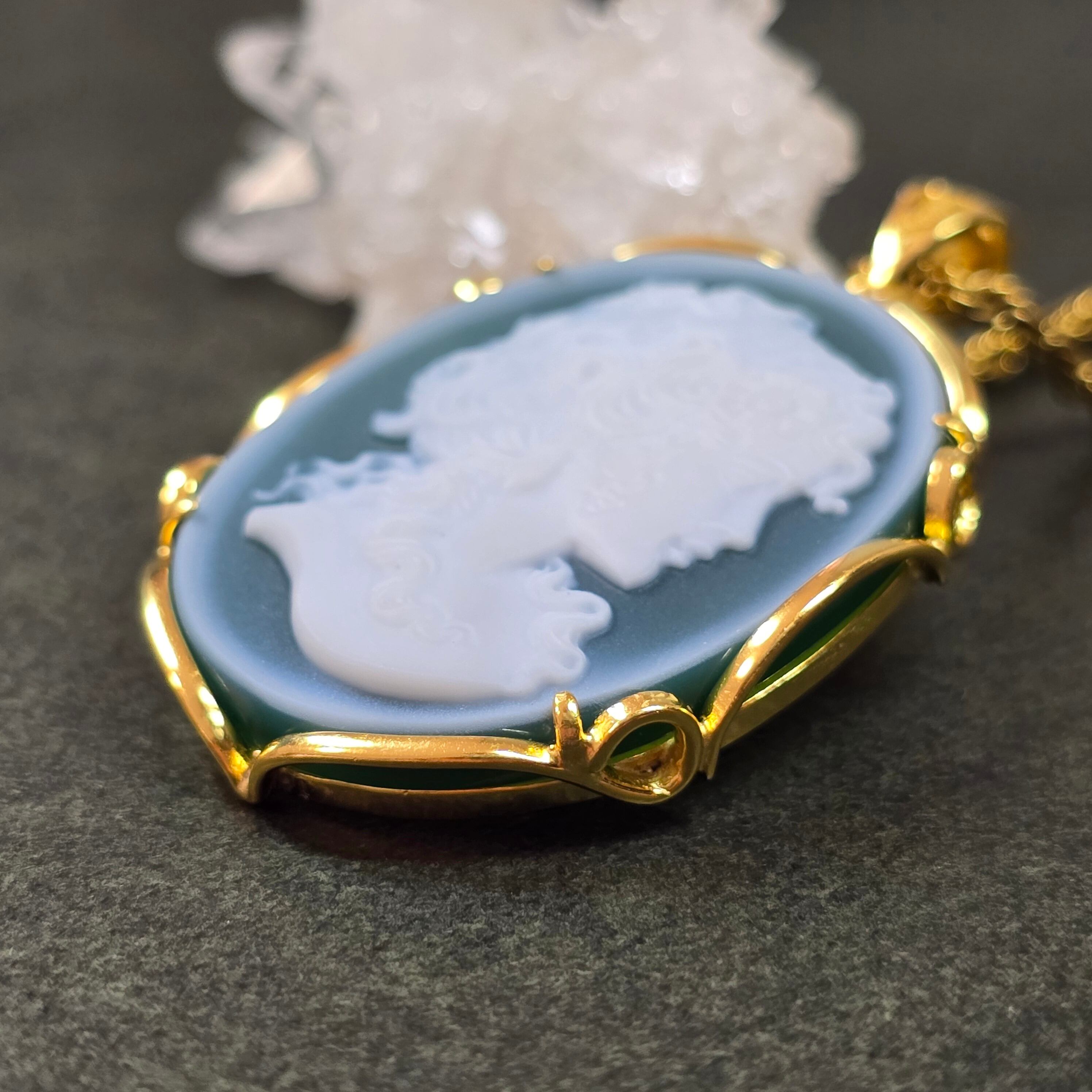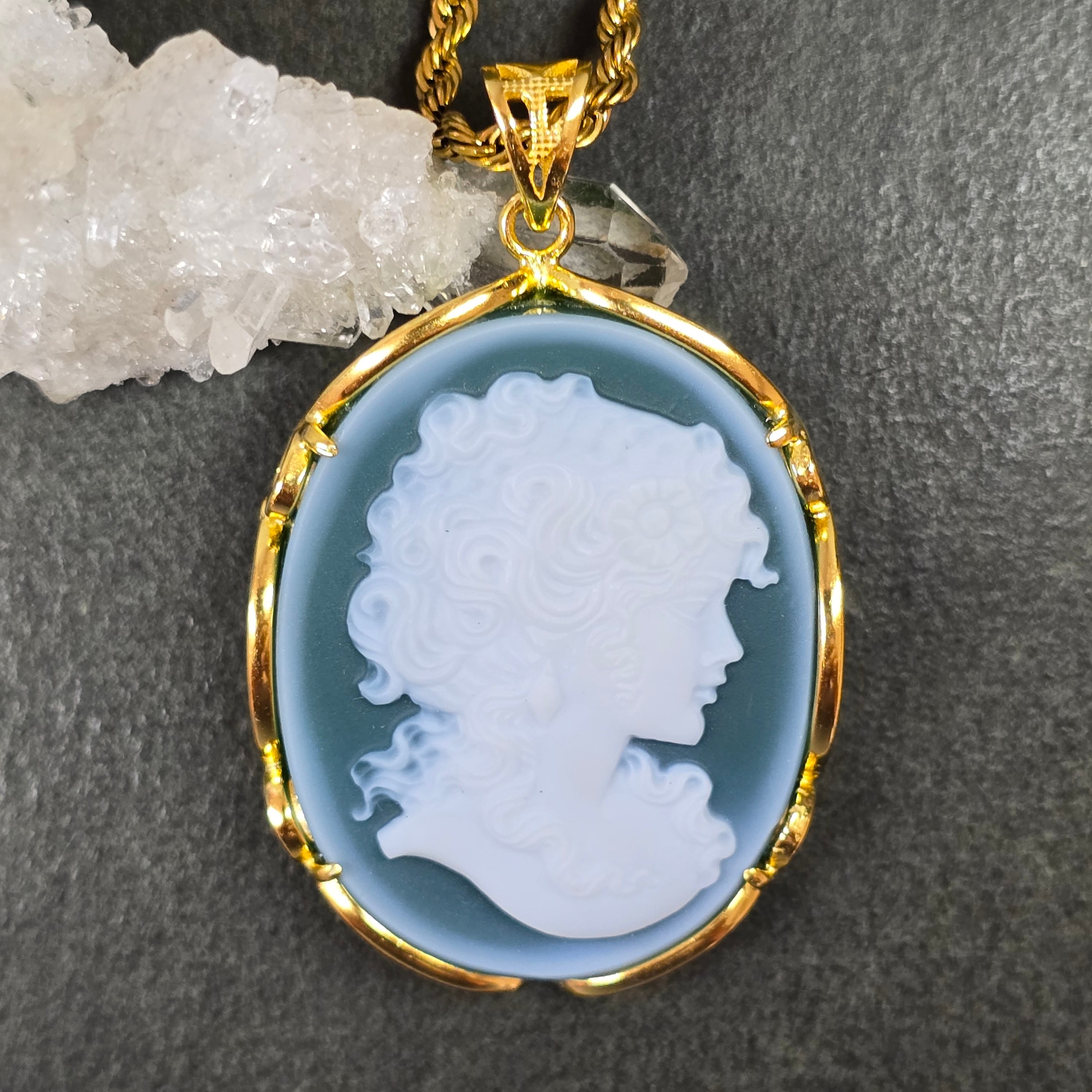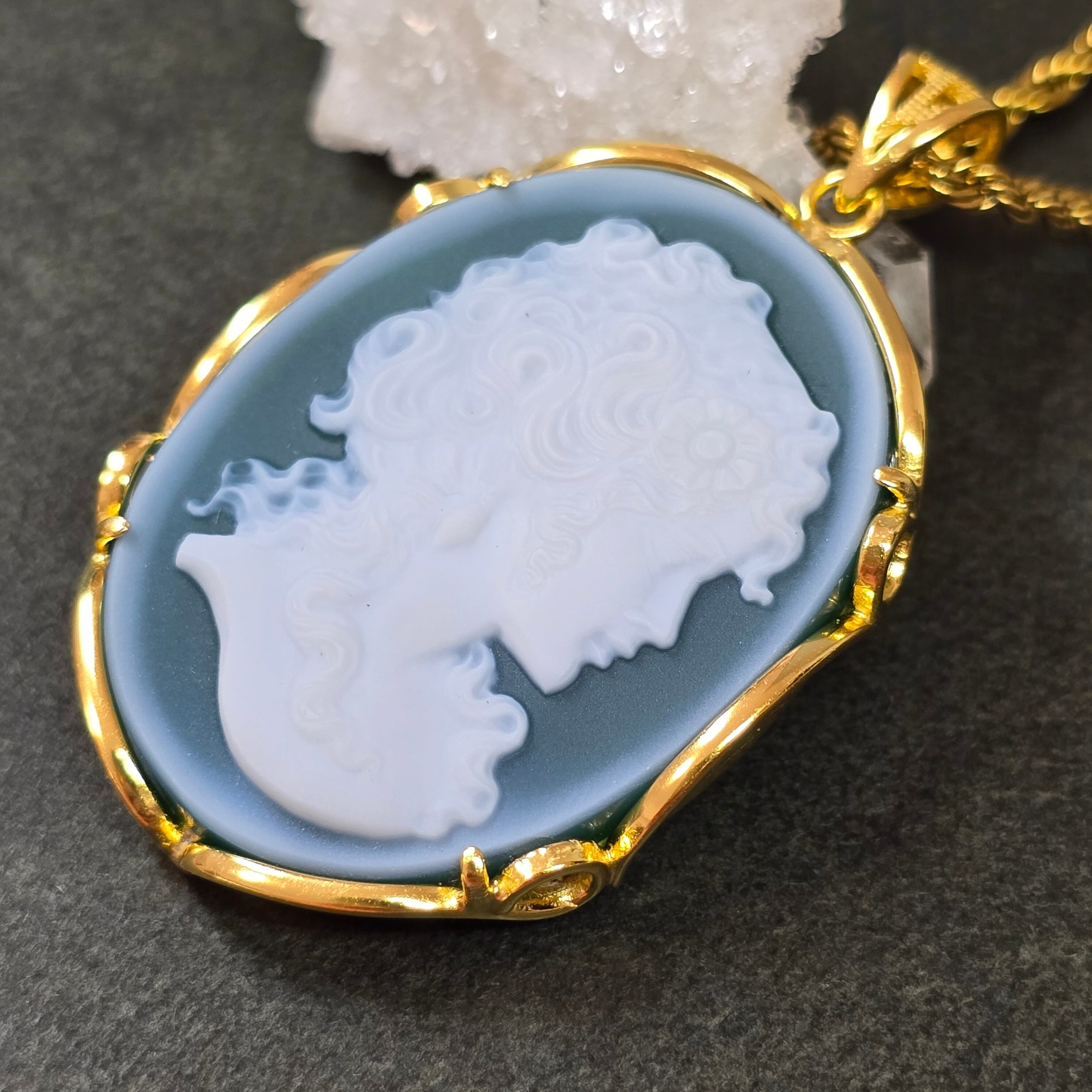 カメオ グリーンオニキス ペンダント カメオ グリーンオニキス ネックレス ゴールド ふりふり