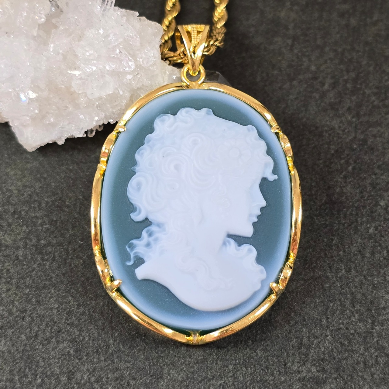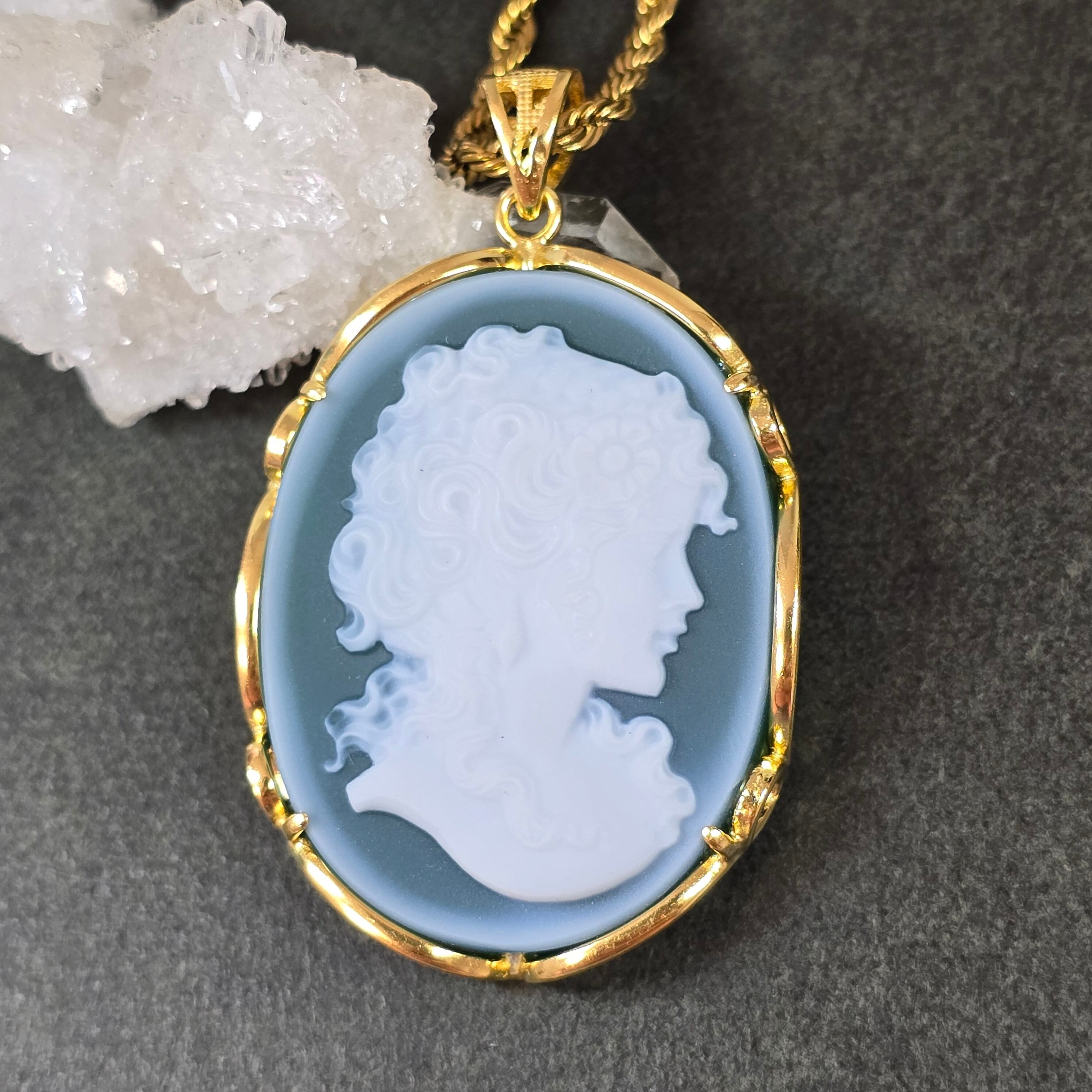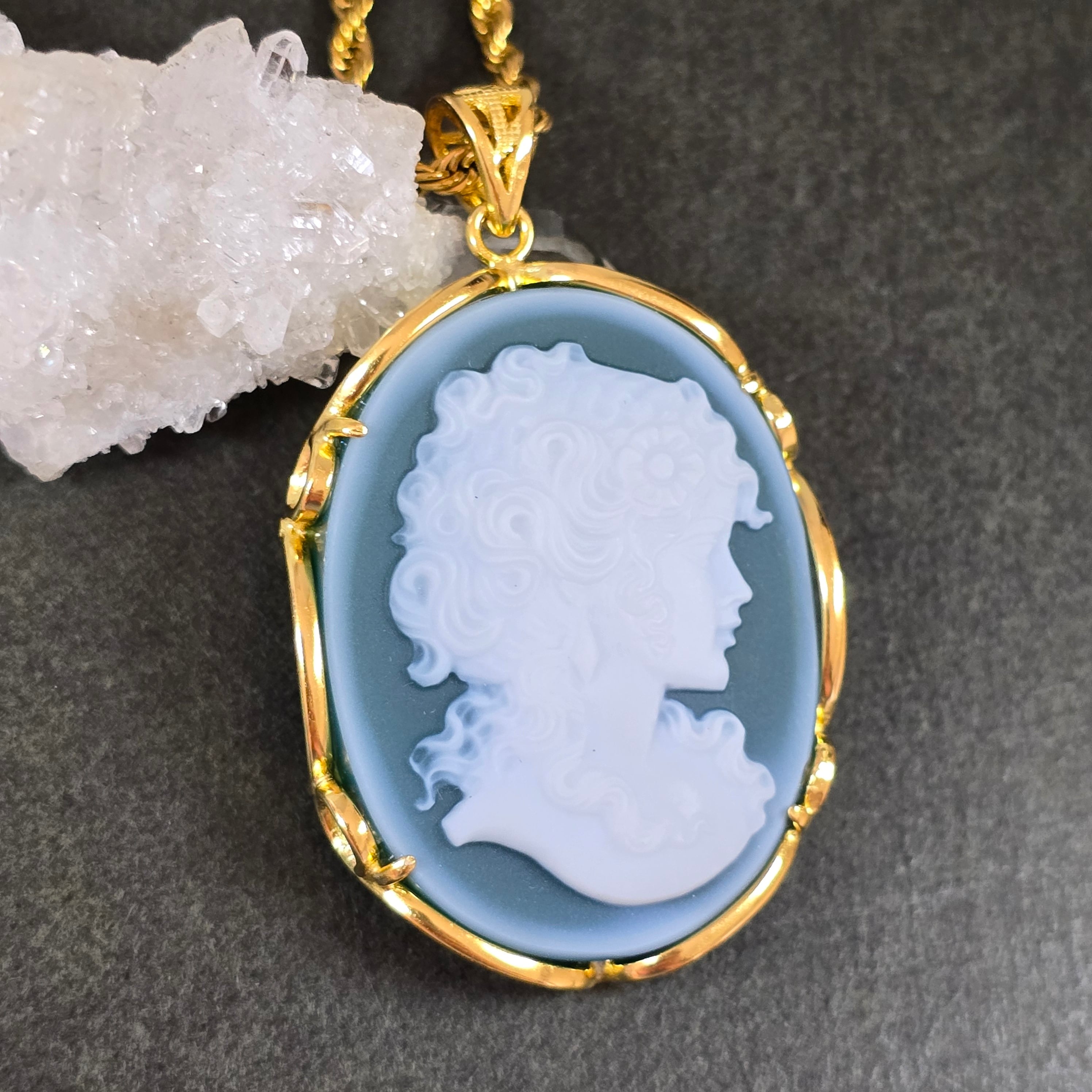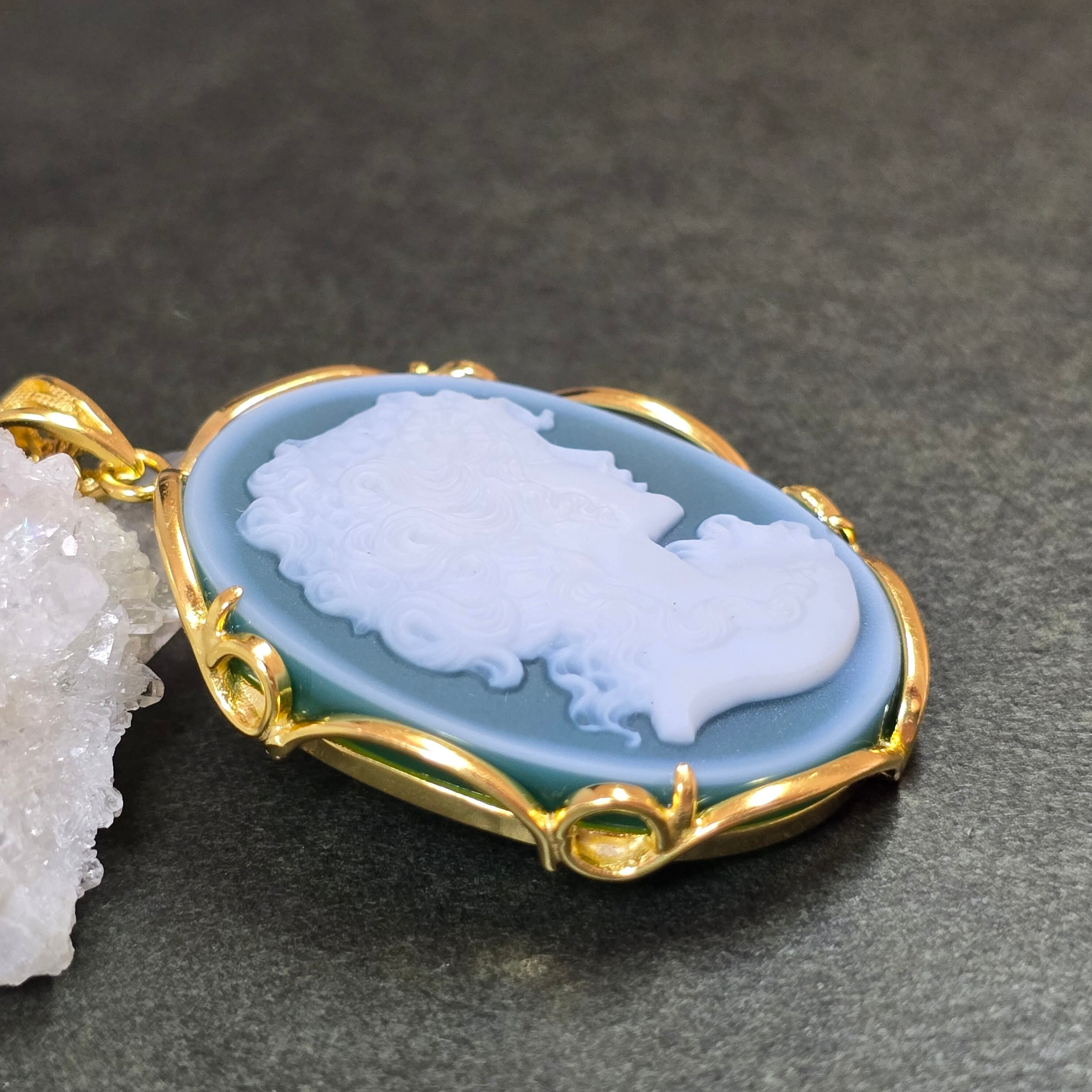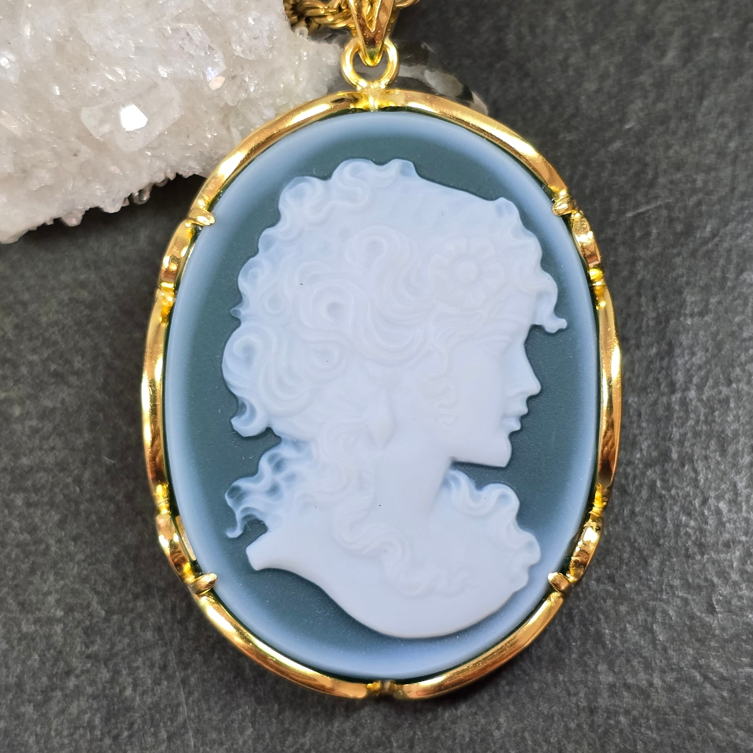 カメオ グリーンオニキス ペンダント カメオ グリーンオニキス ネックレス ゴールド ふりふり