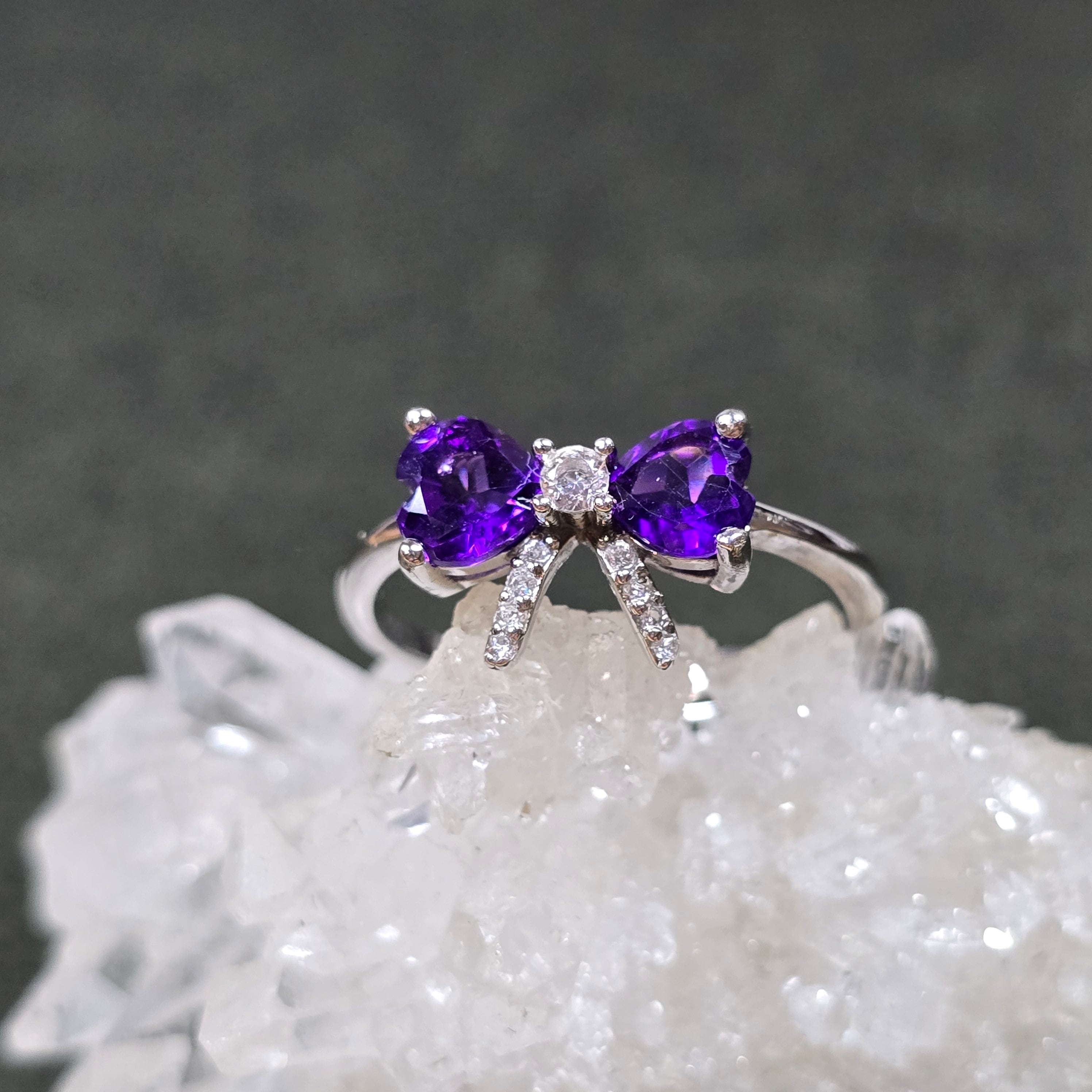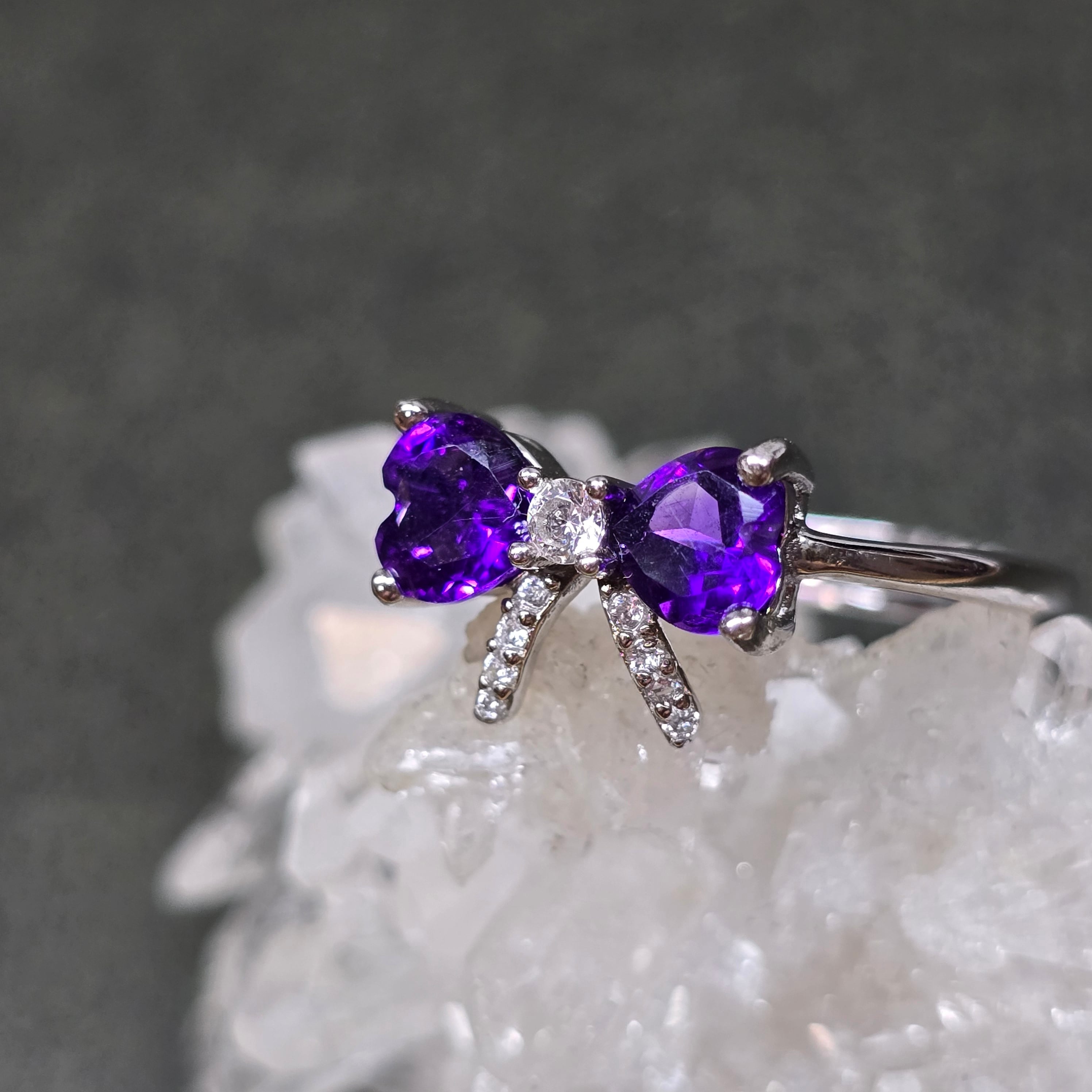 アメシスト リボン ハート リング アメジスト 指輪 シルバー キラキラ