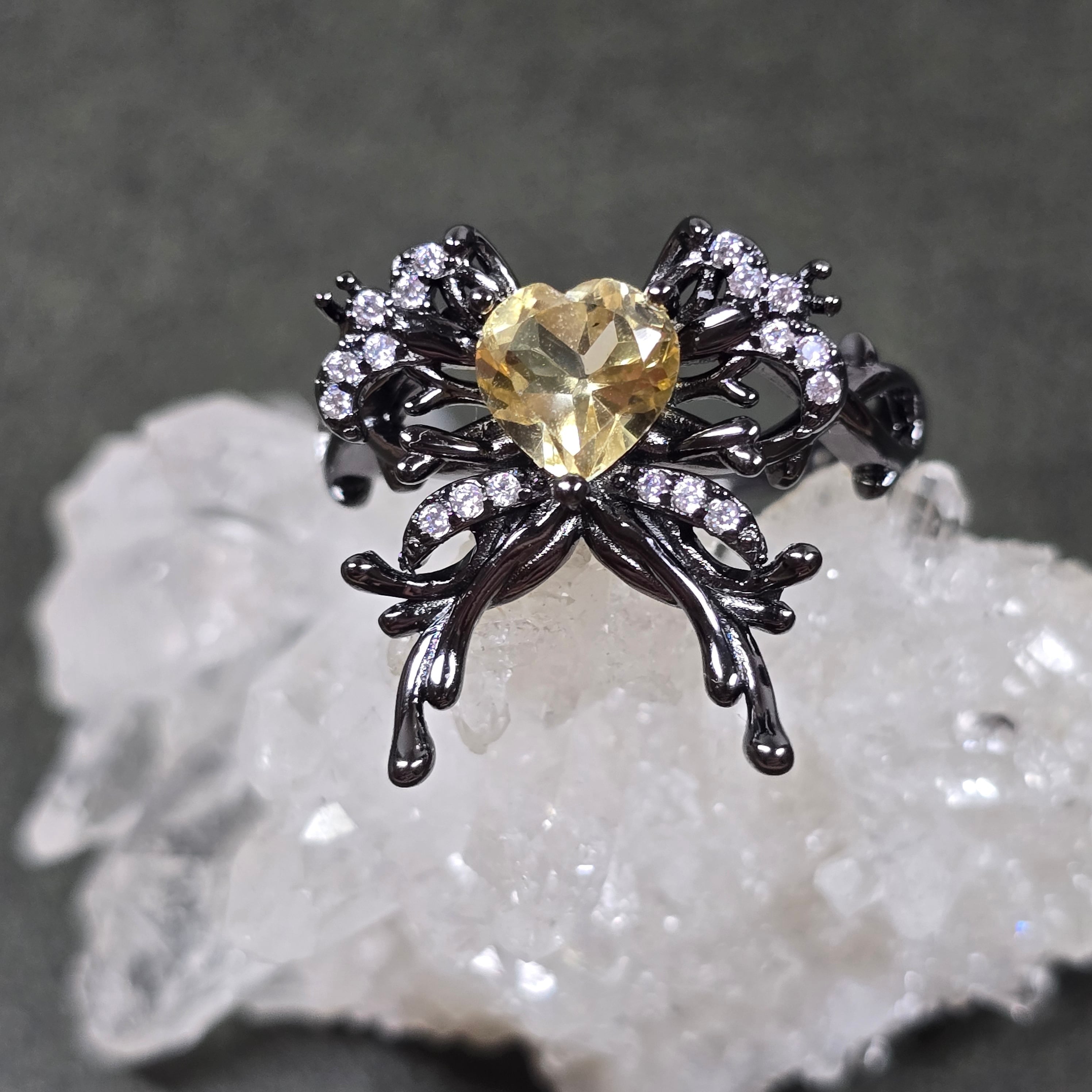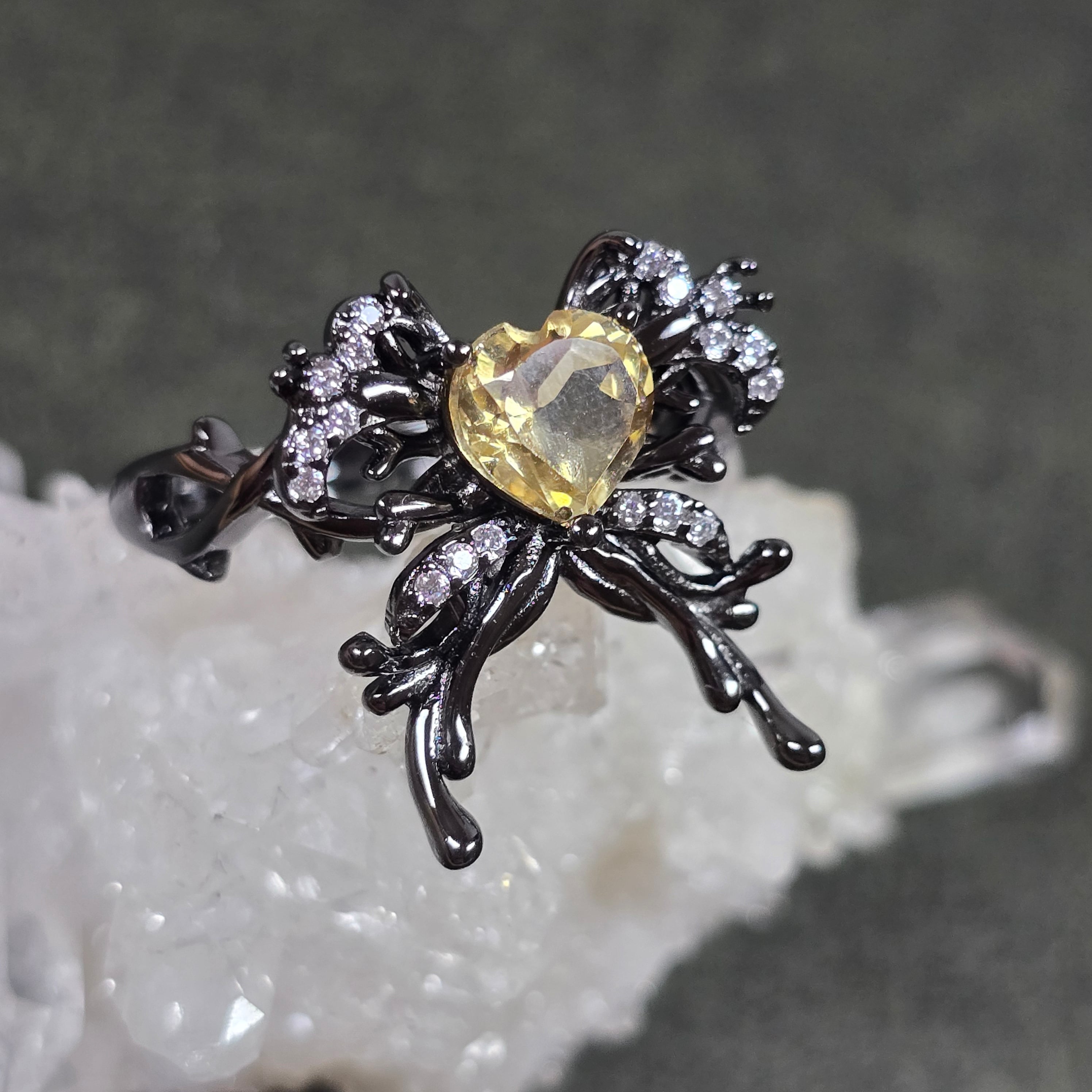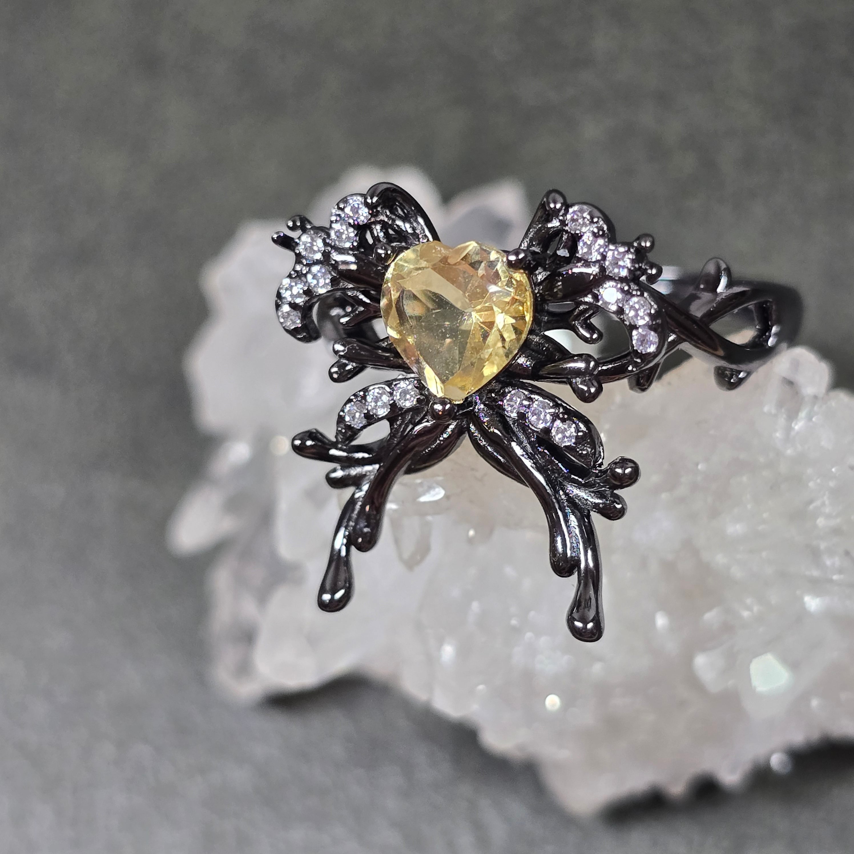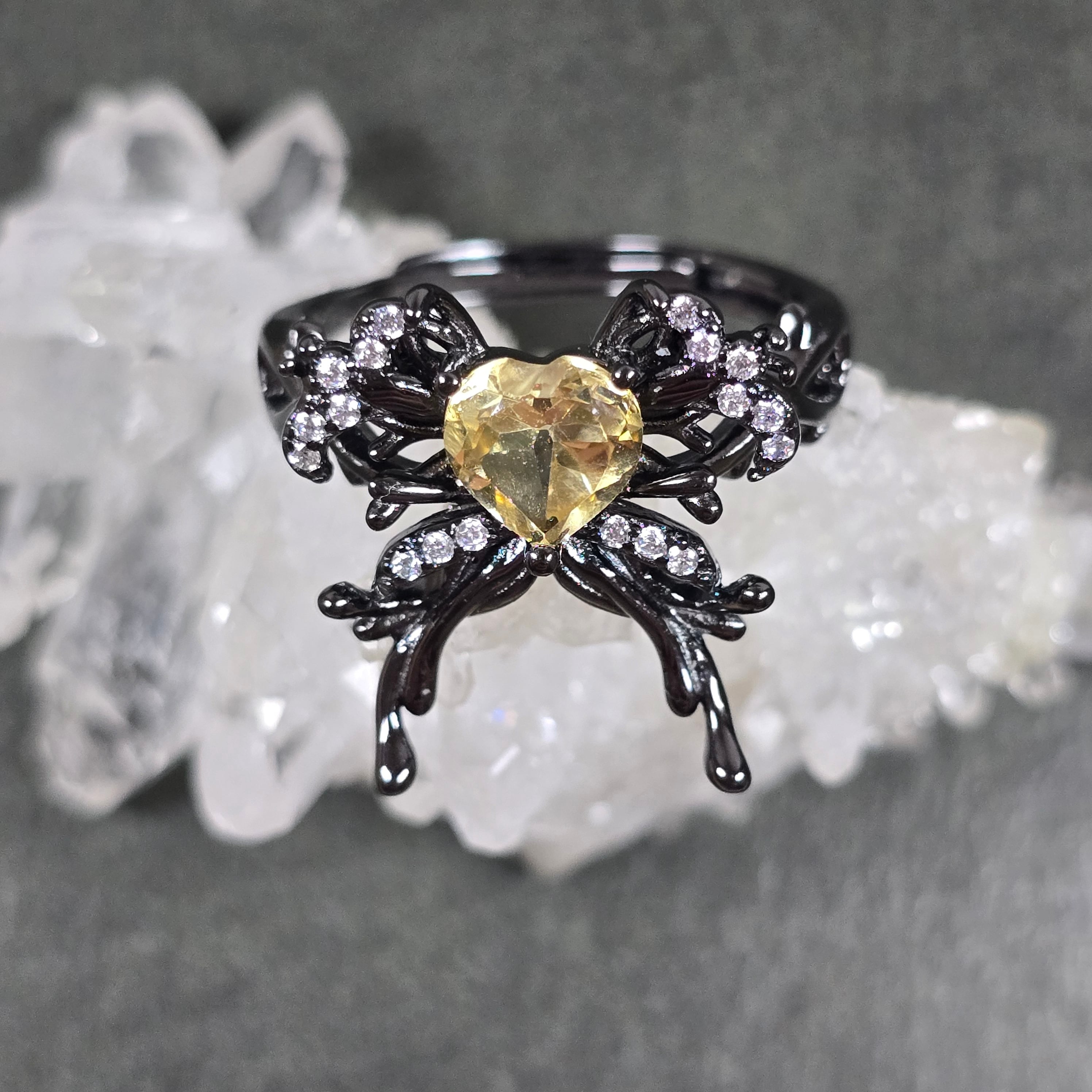 シトリン リボン ハート リング シトリン 指輪 ブラック キラキラ