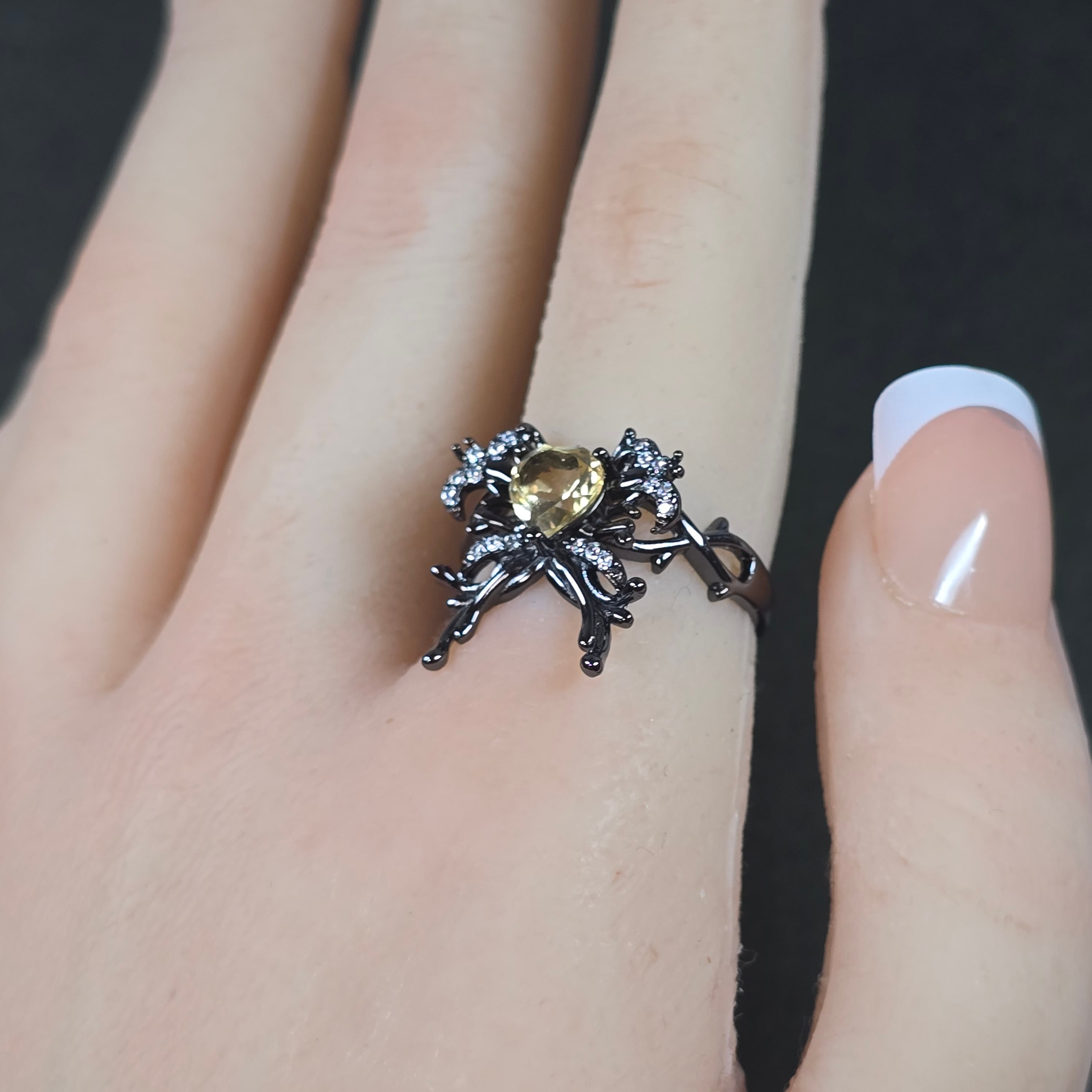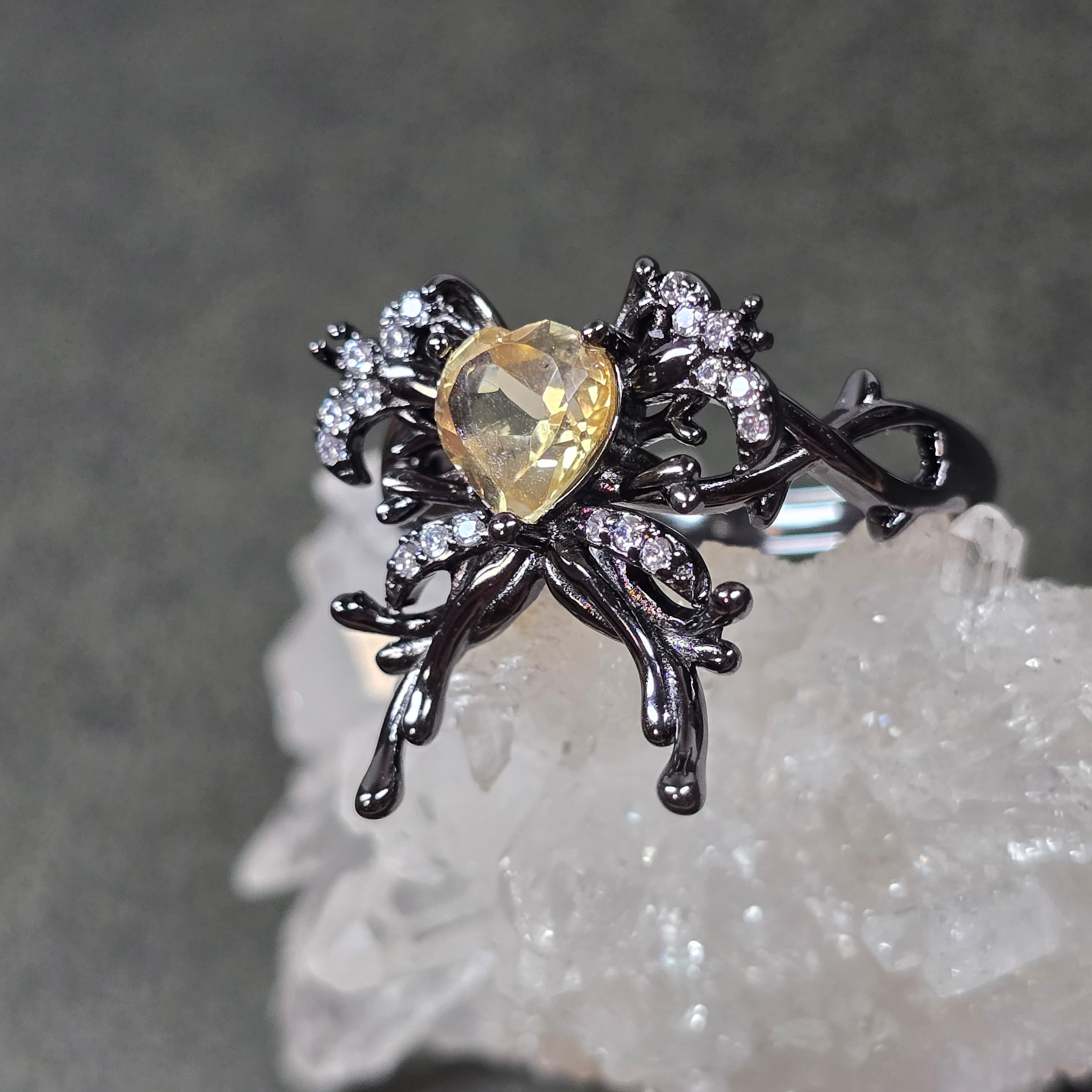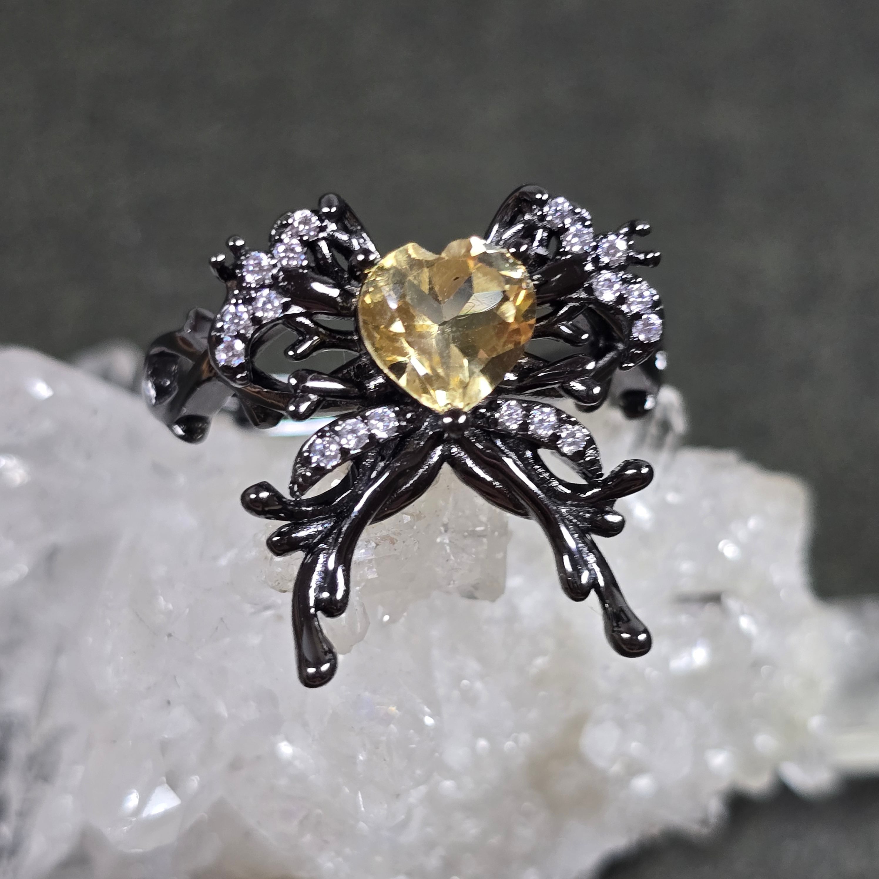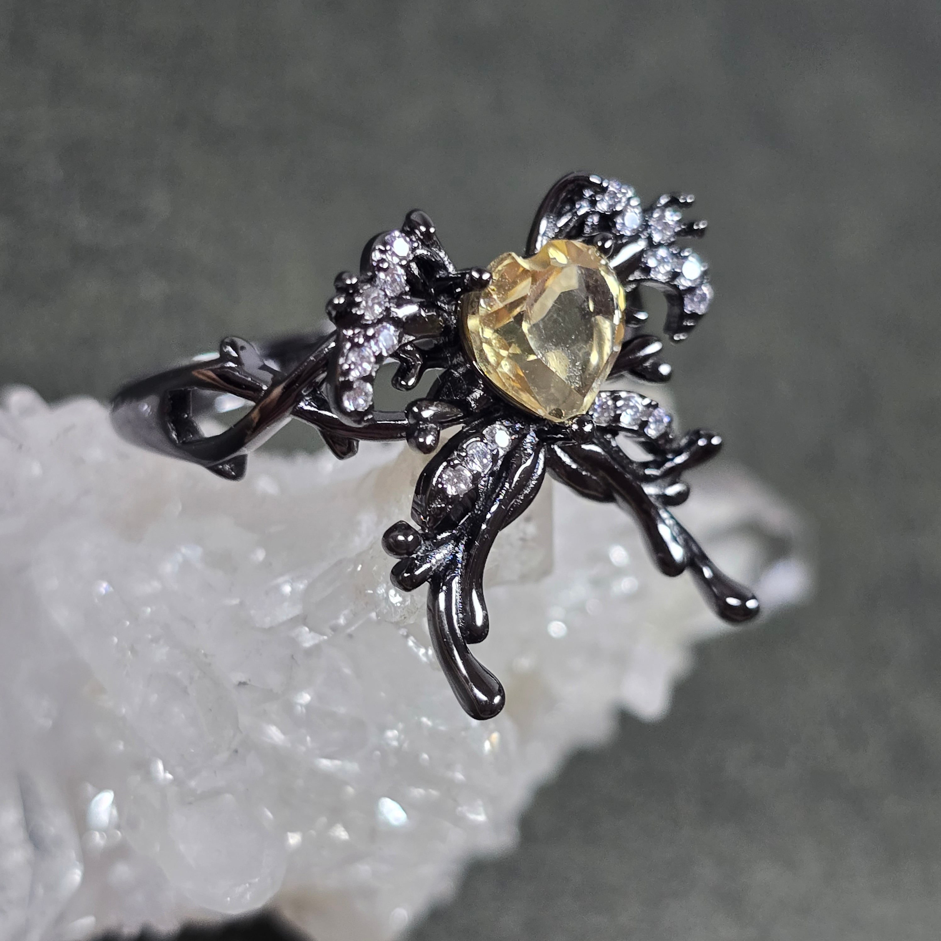 シトリン リボン ハート リング シトリン 指輪 ブラック キラキラ