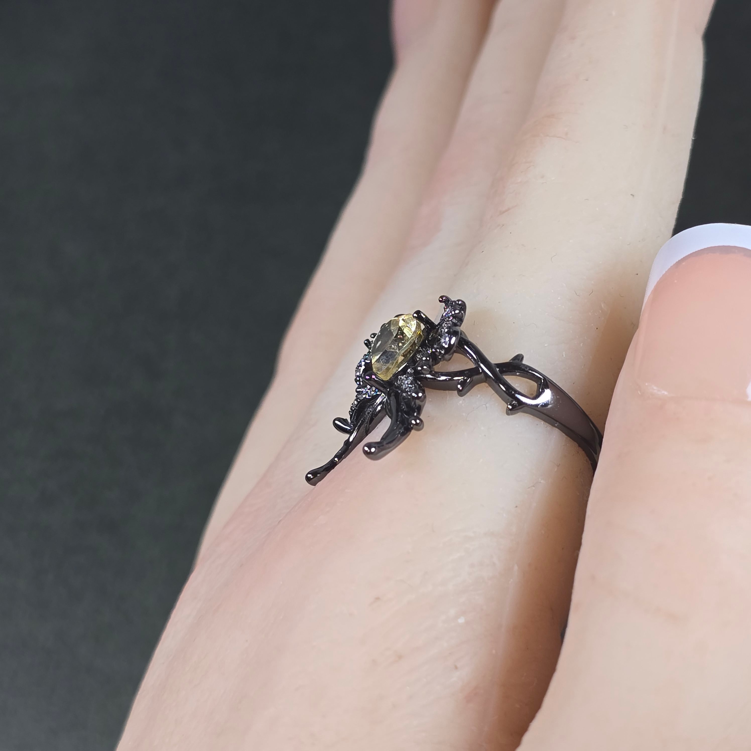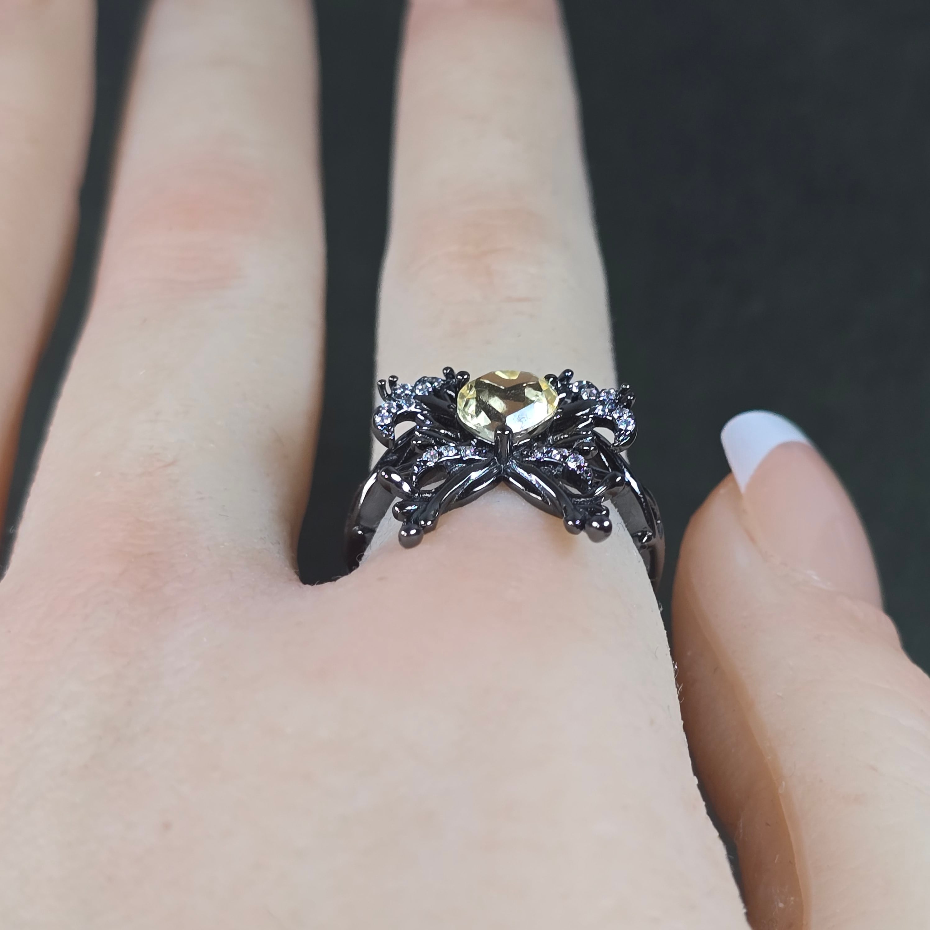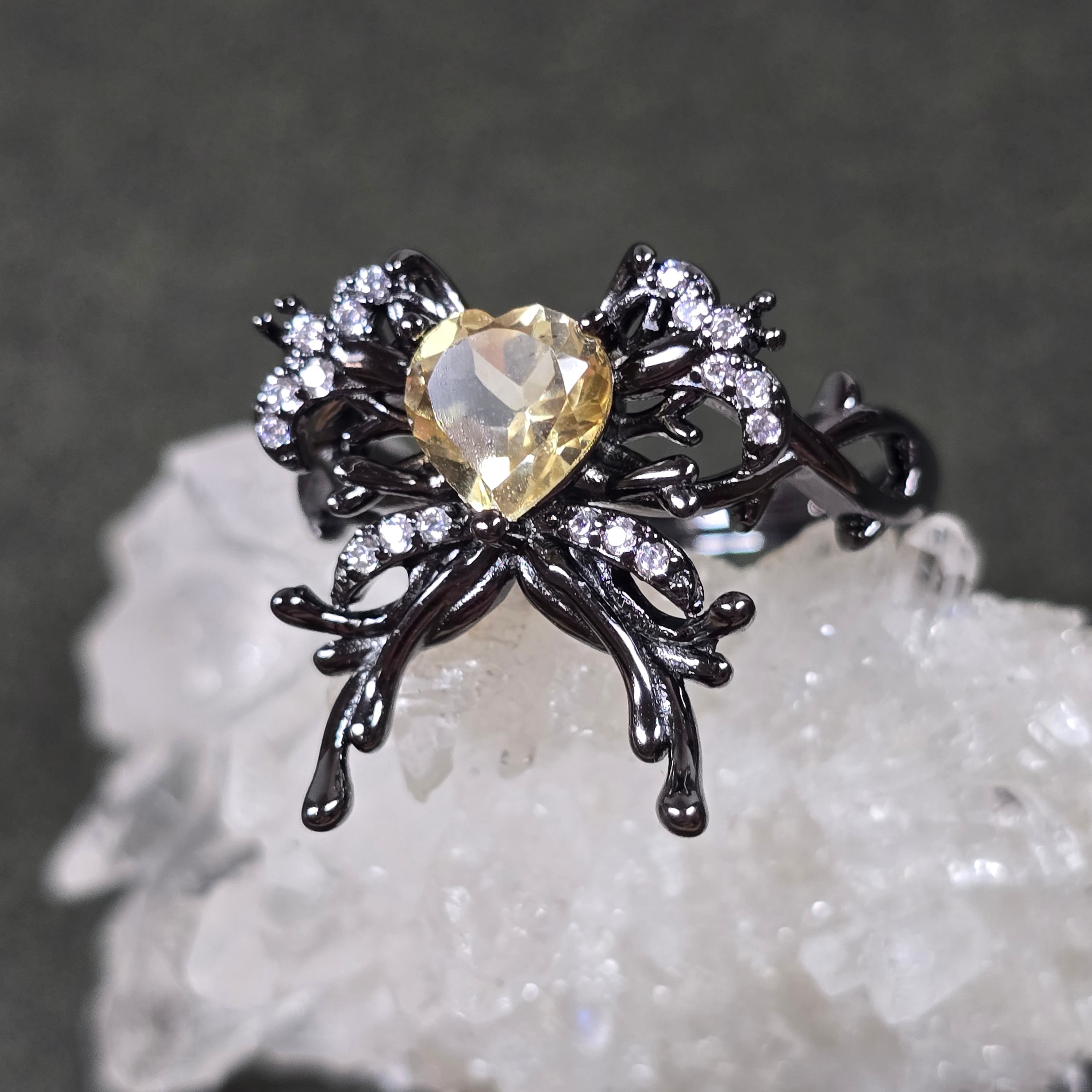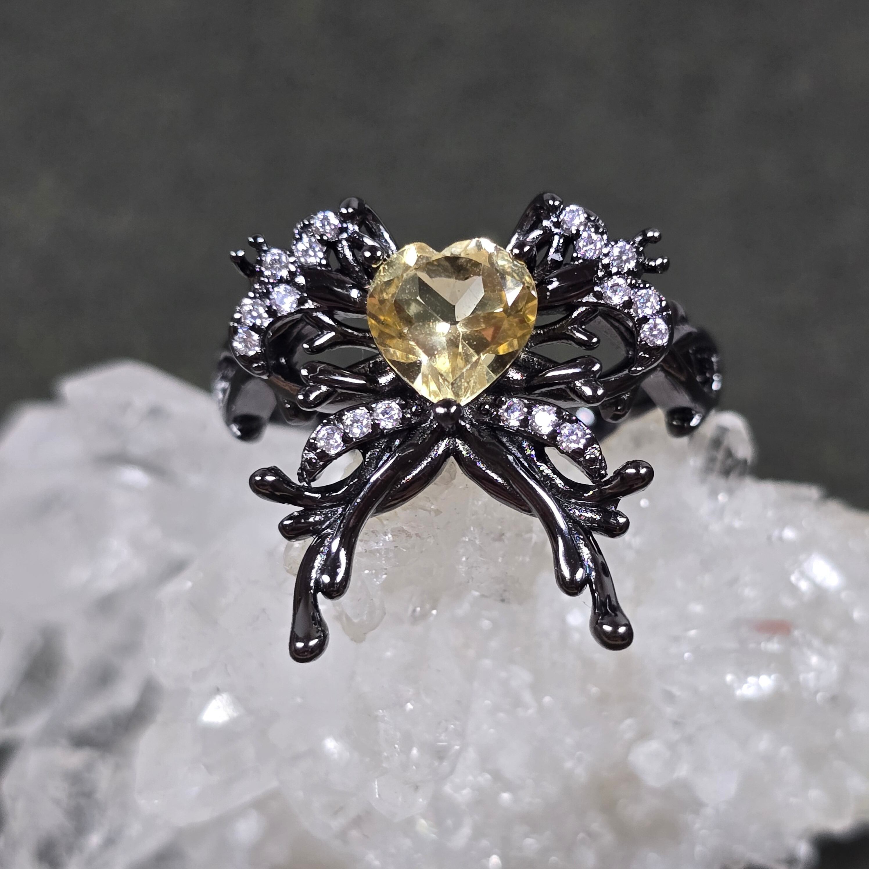 シトリン リボン ハート リング シトリン 指輪 ブラック キラキラ