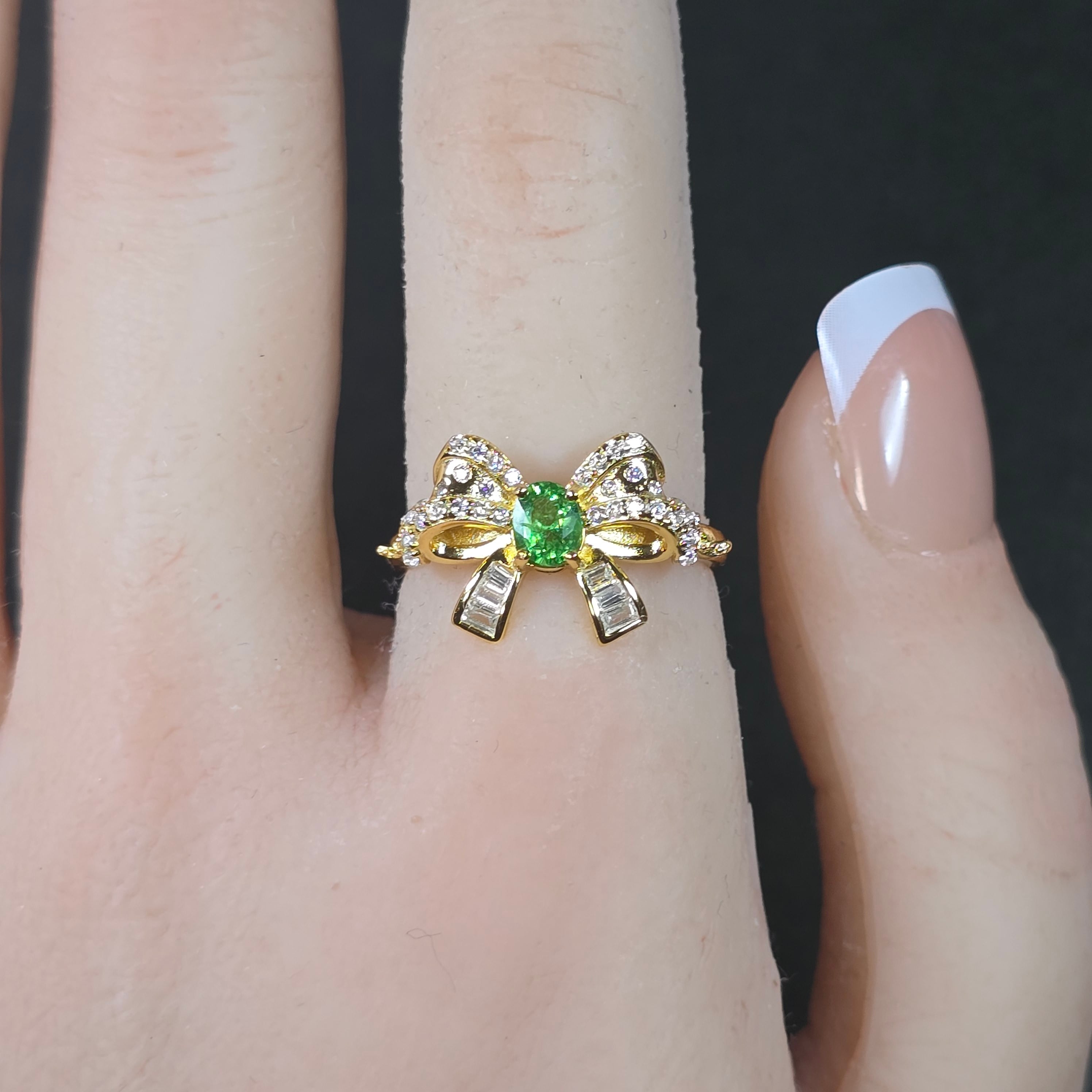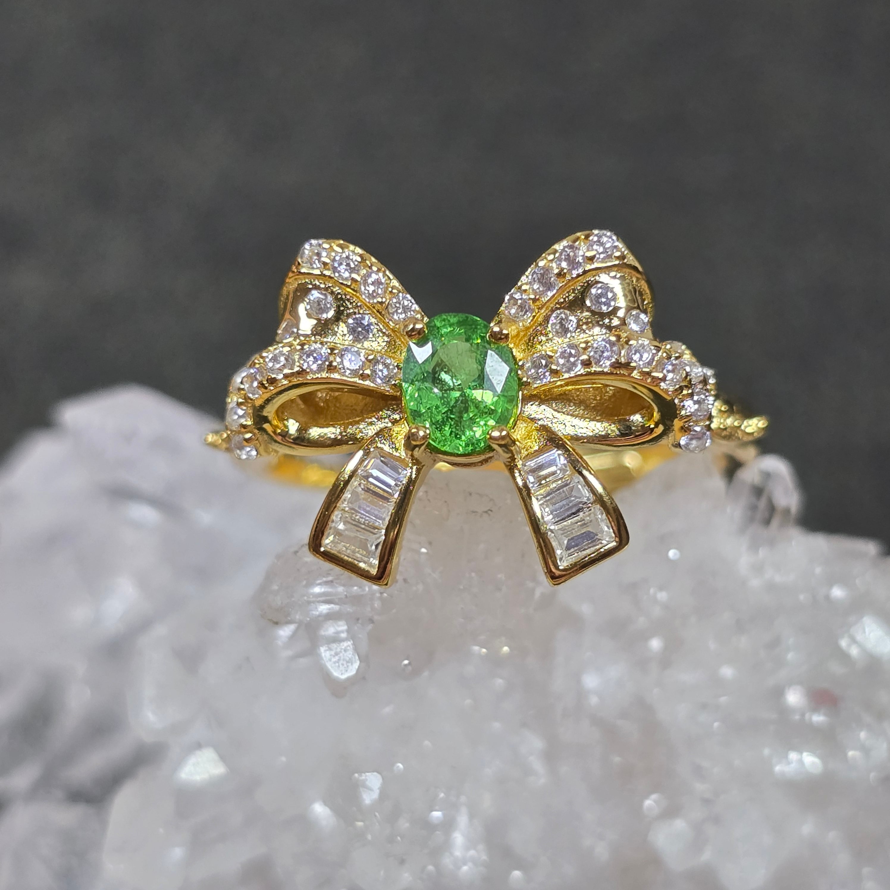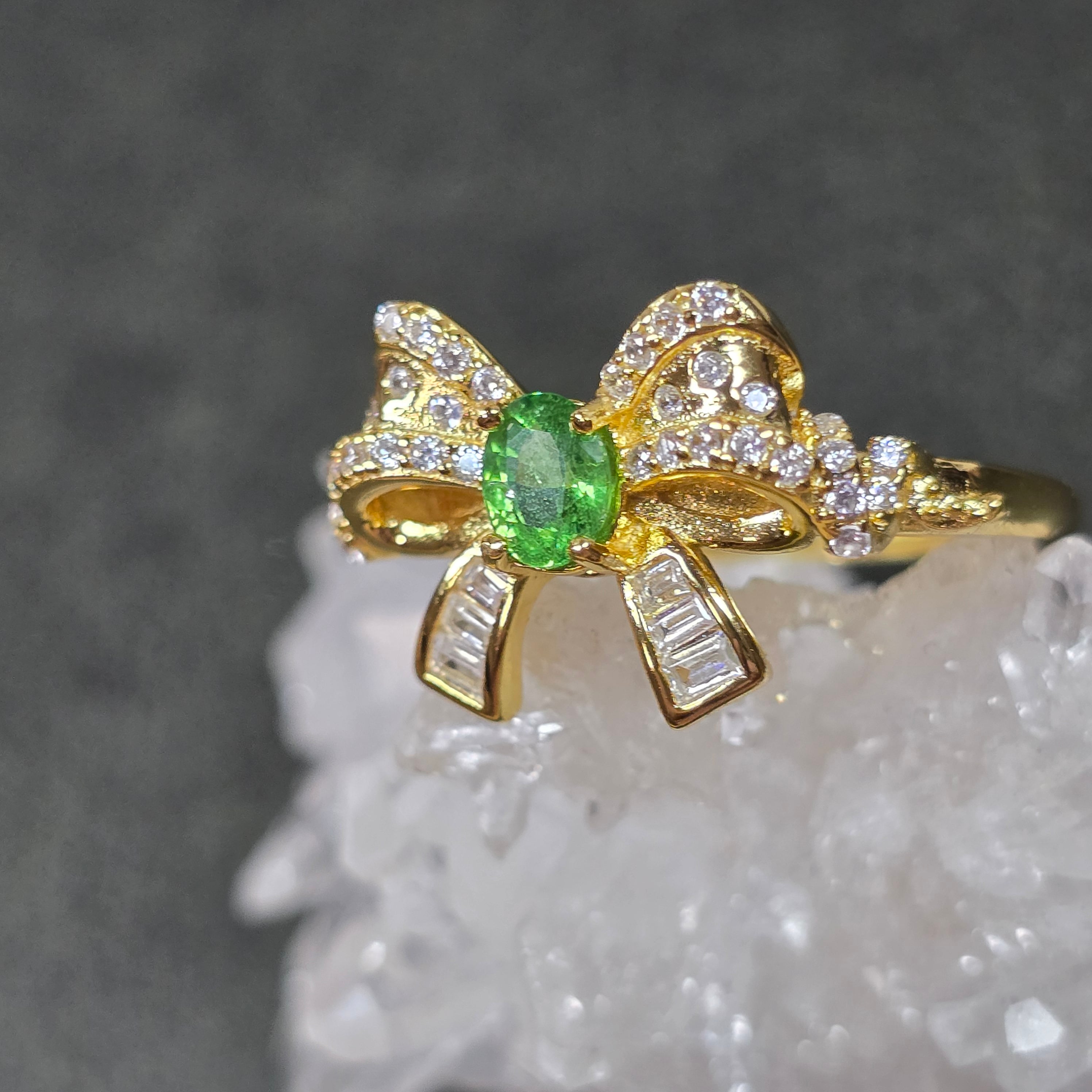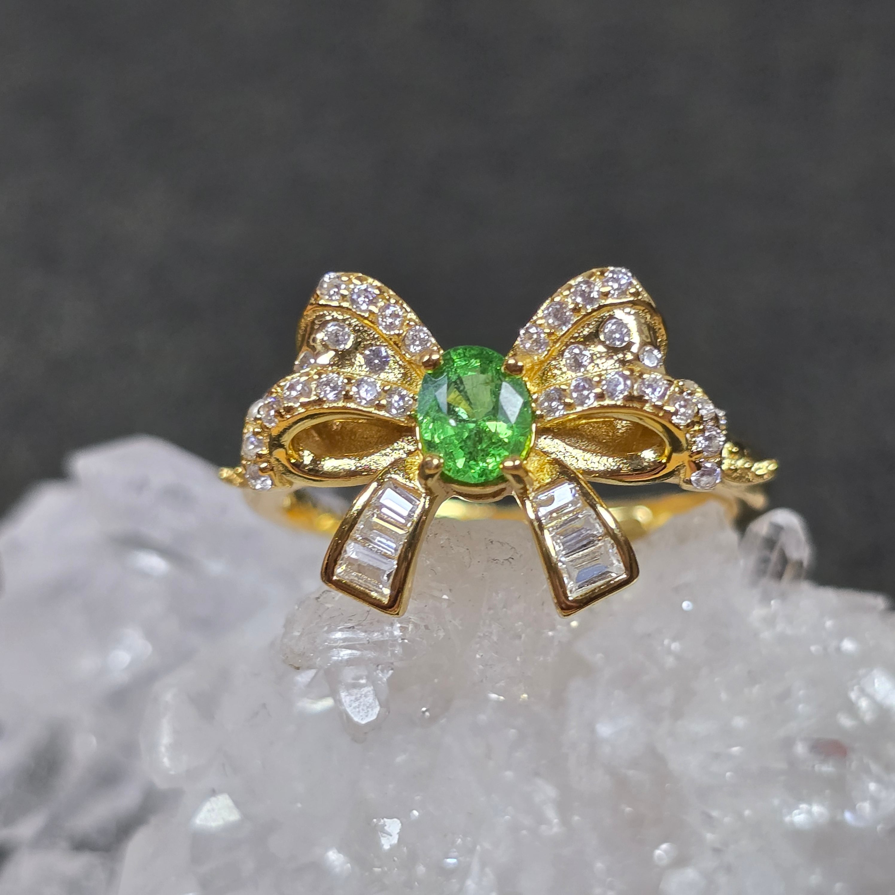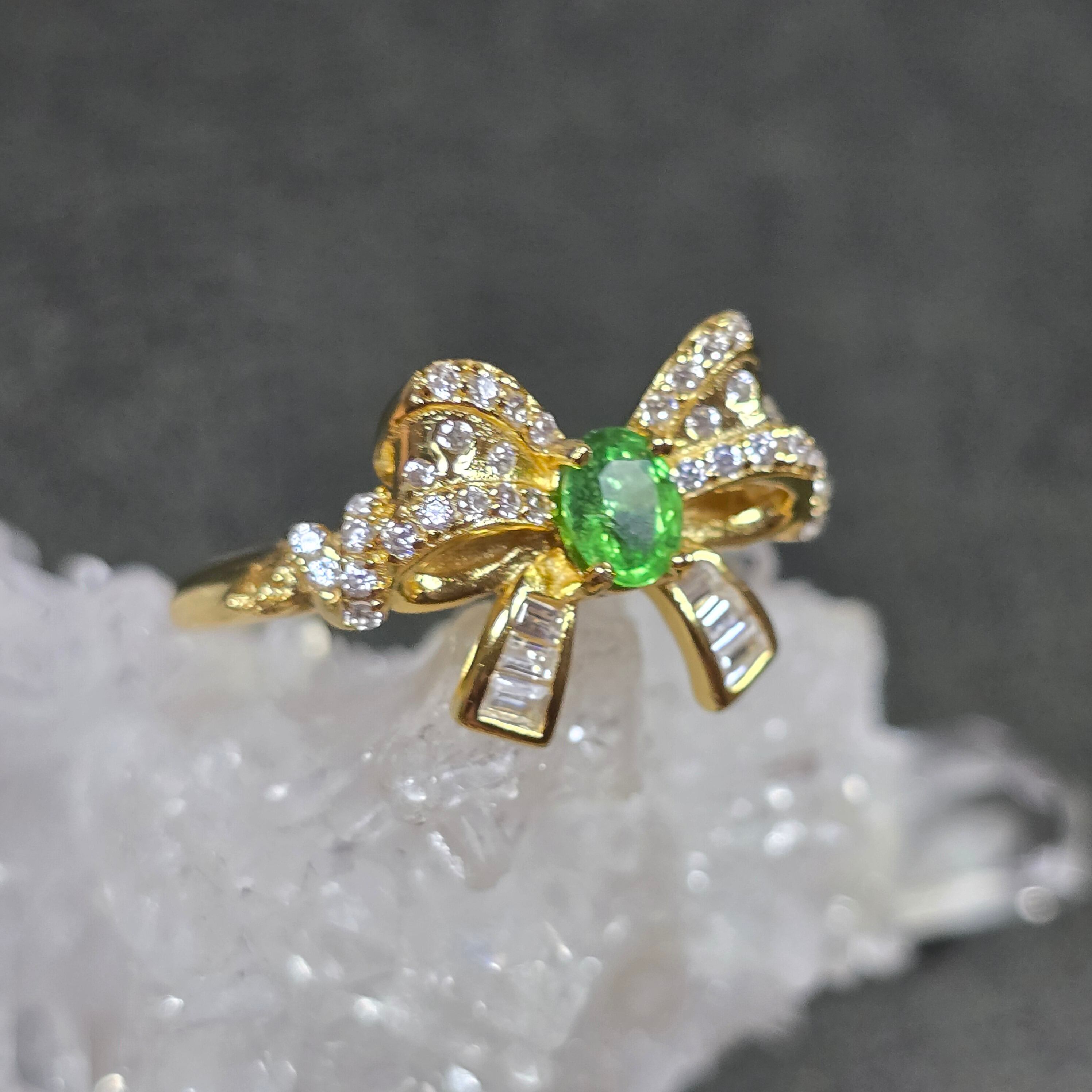 ツァボライト リボン リング グリーングロッシュラーガーネット 指輪 ゴールド キラキラ