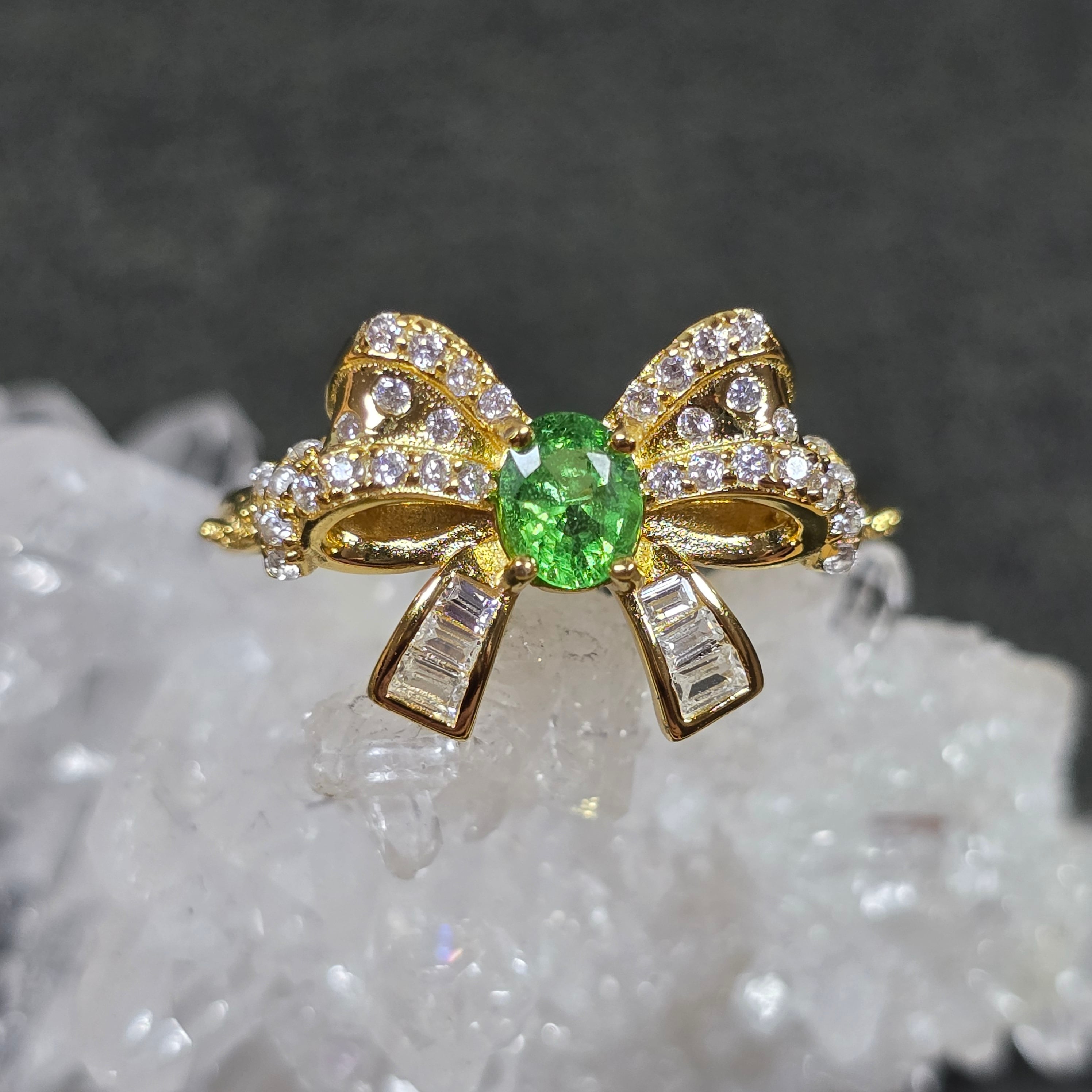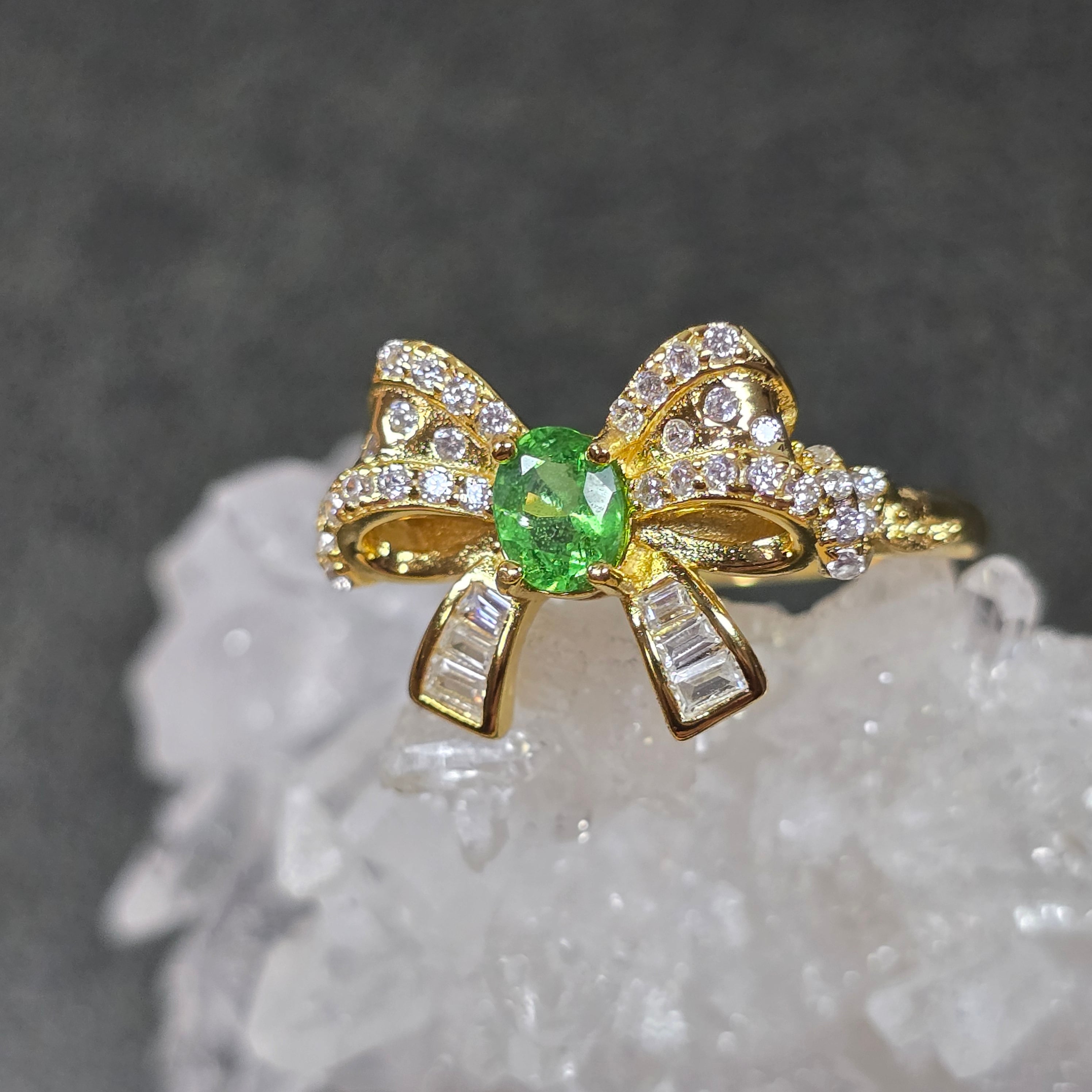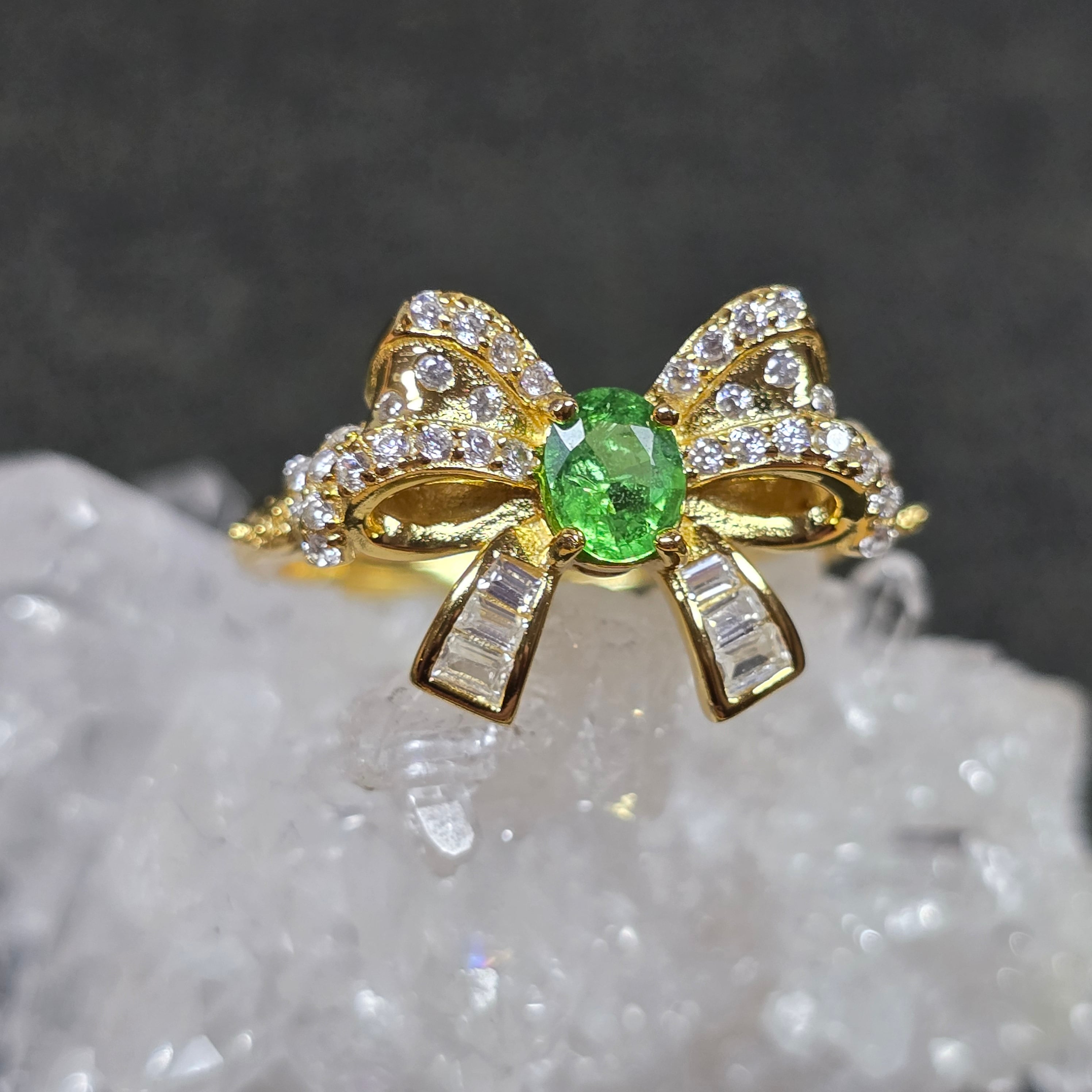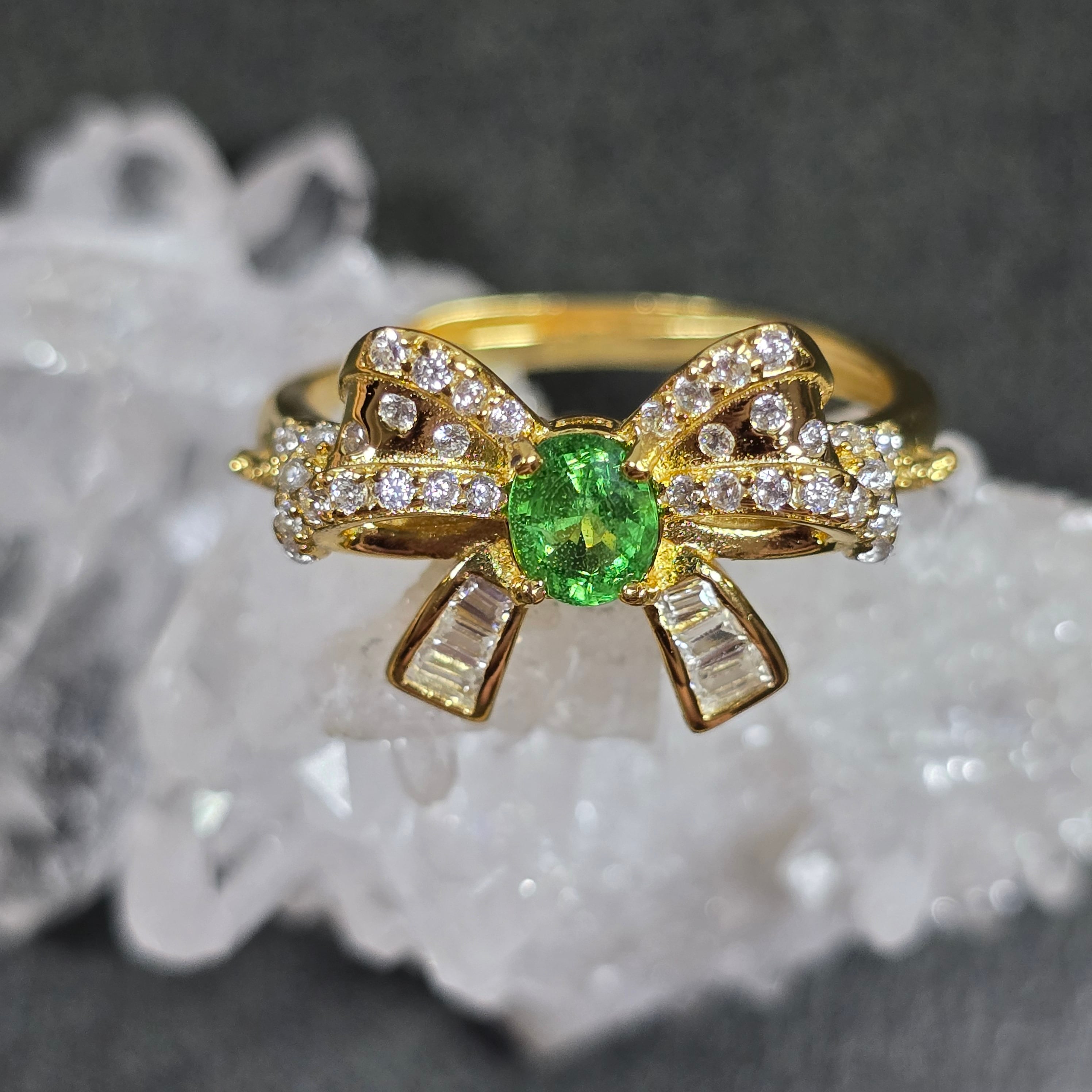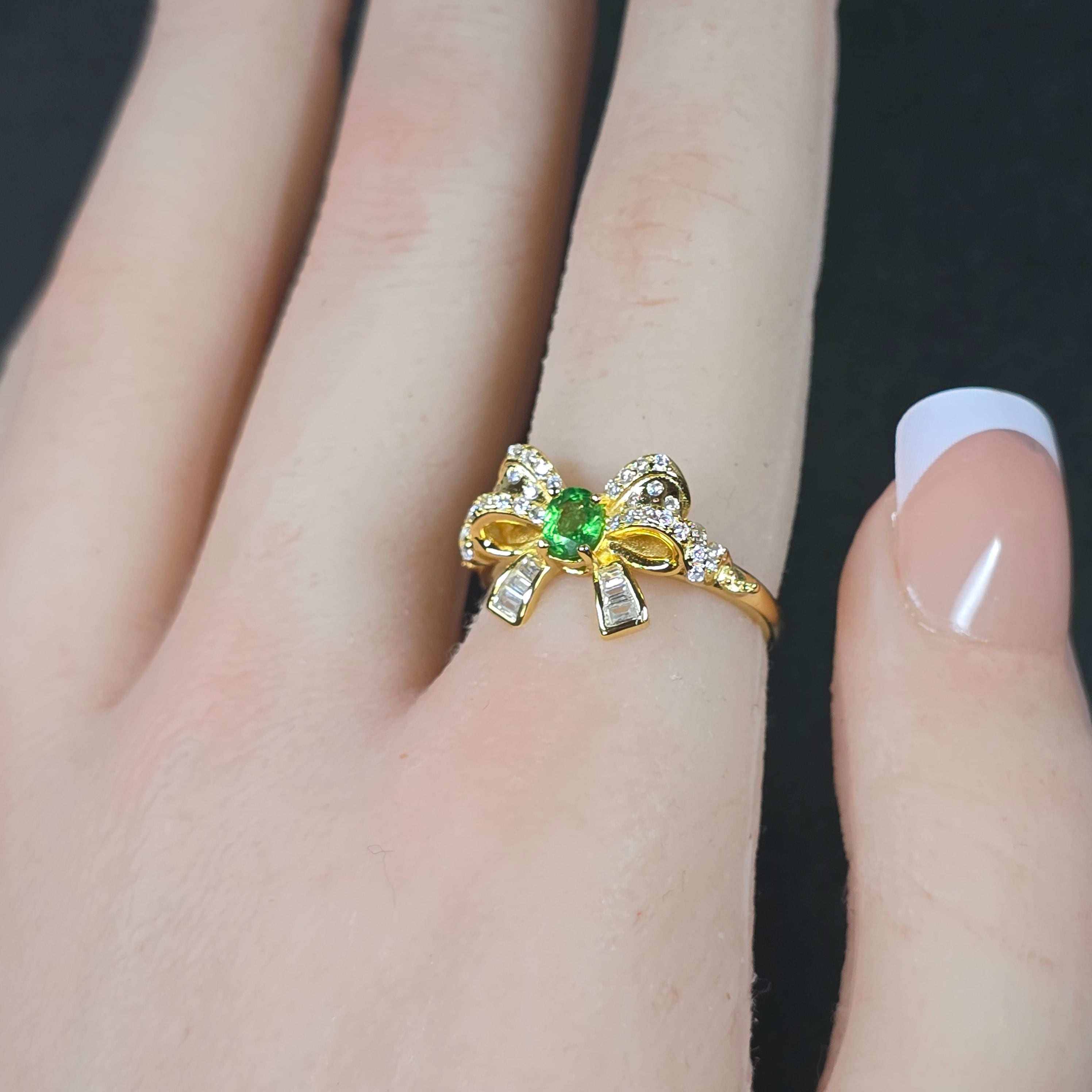 ツァボライト リボン リング グリーングロッシュラーガーネット 指輪 ゴールド キラキラ