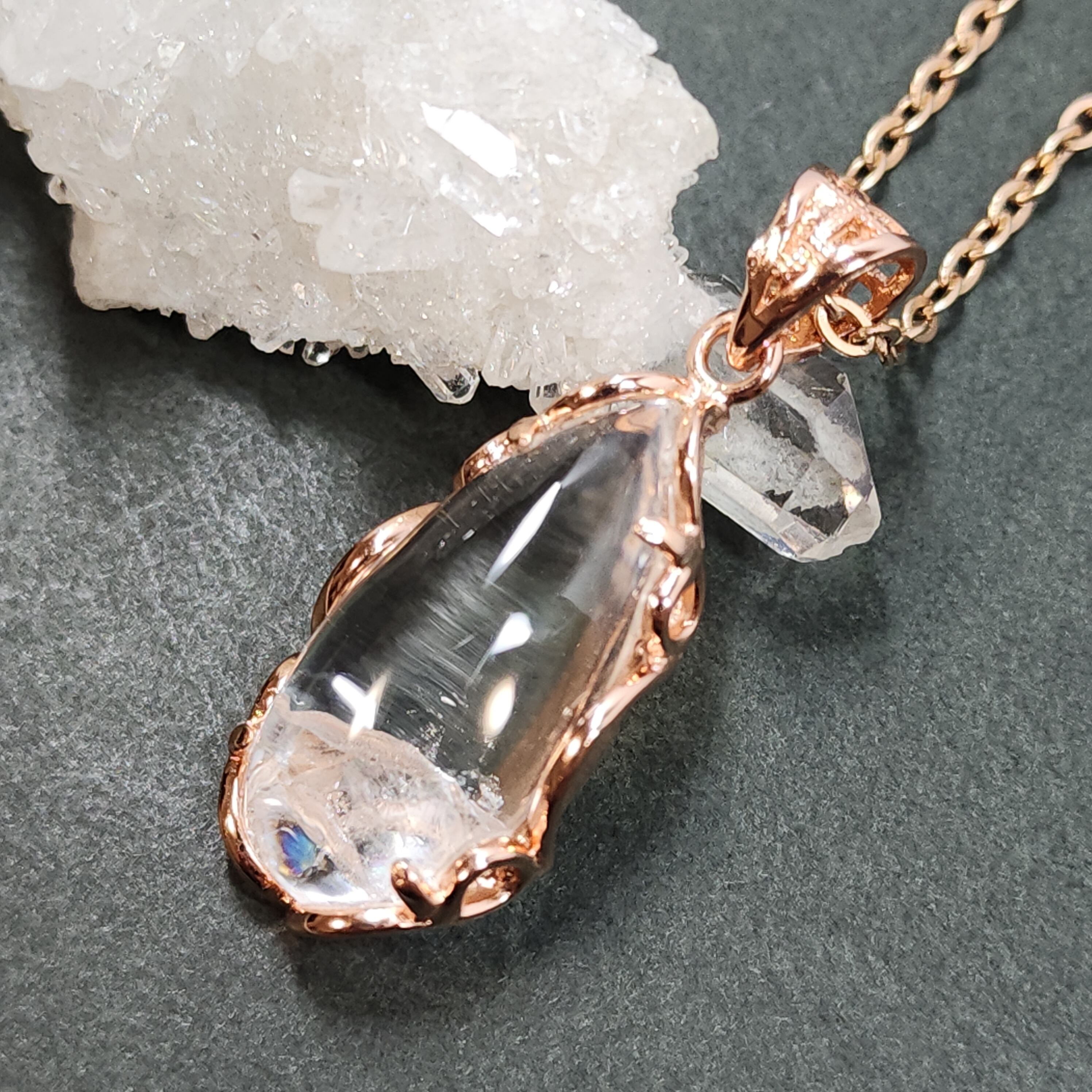 クォーツインクォーツ ペンダント クォーツインクォーツ ネックレス ピンクゴールド ふりふり