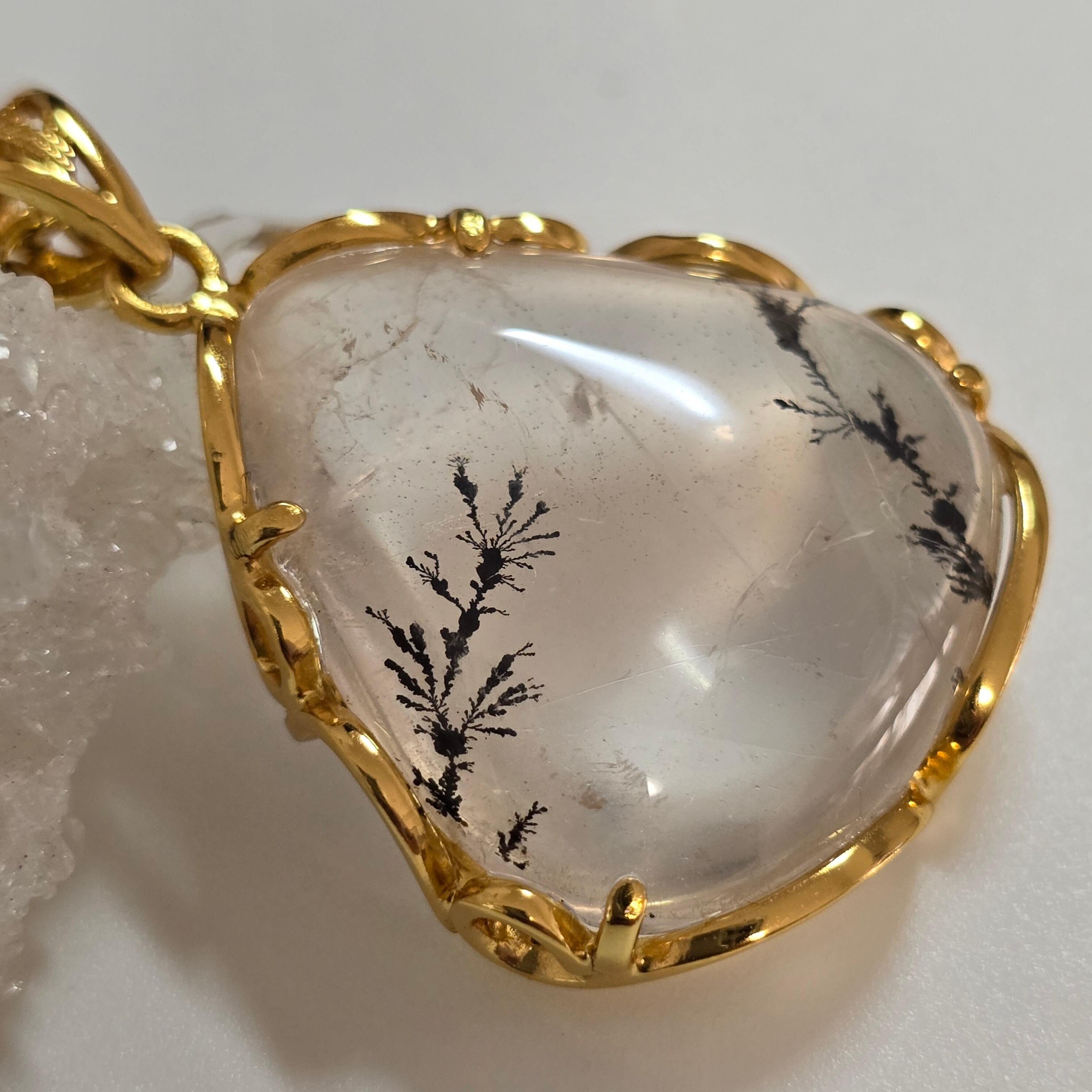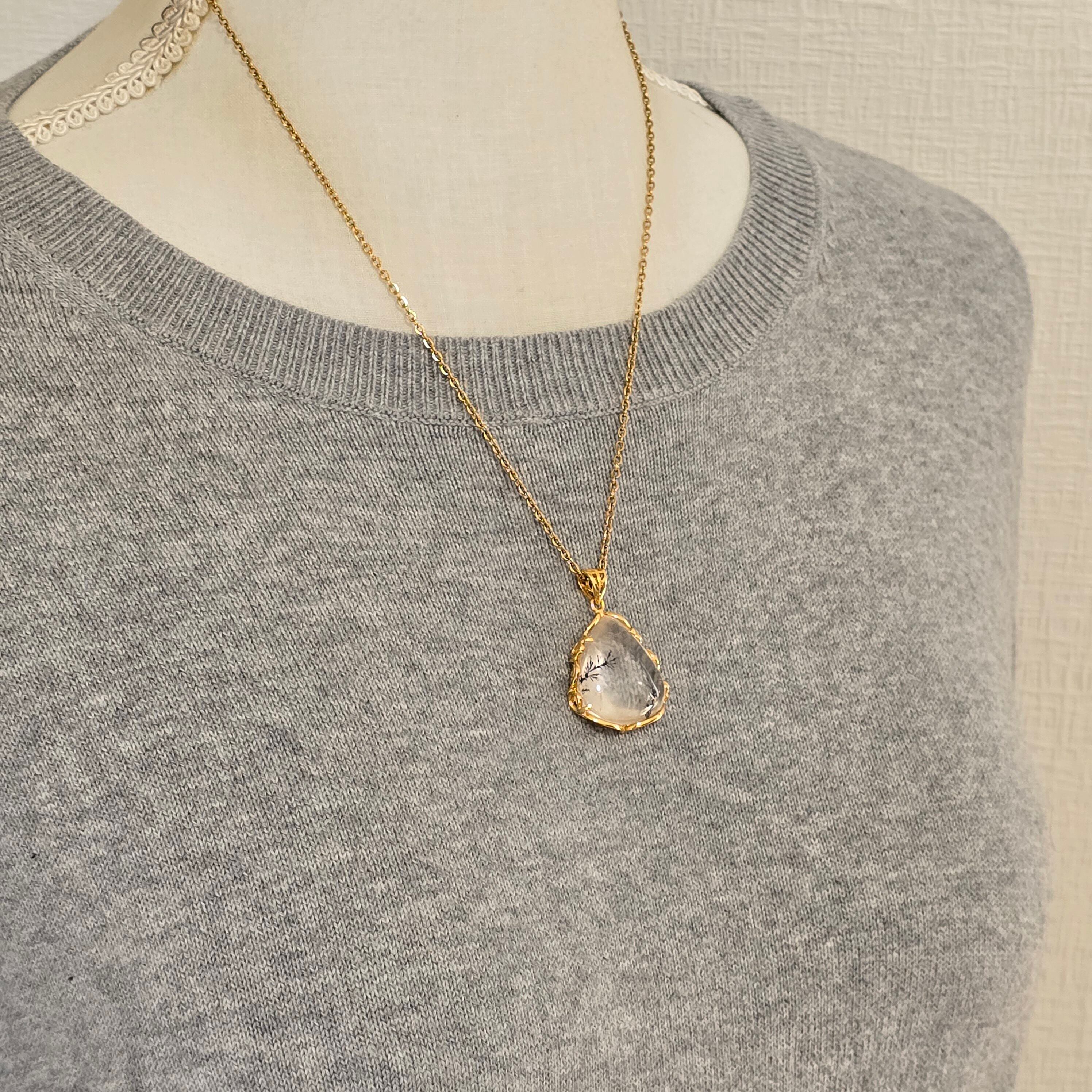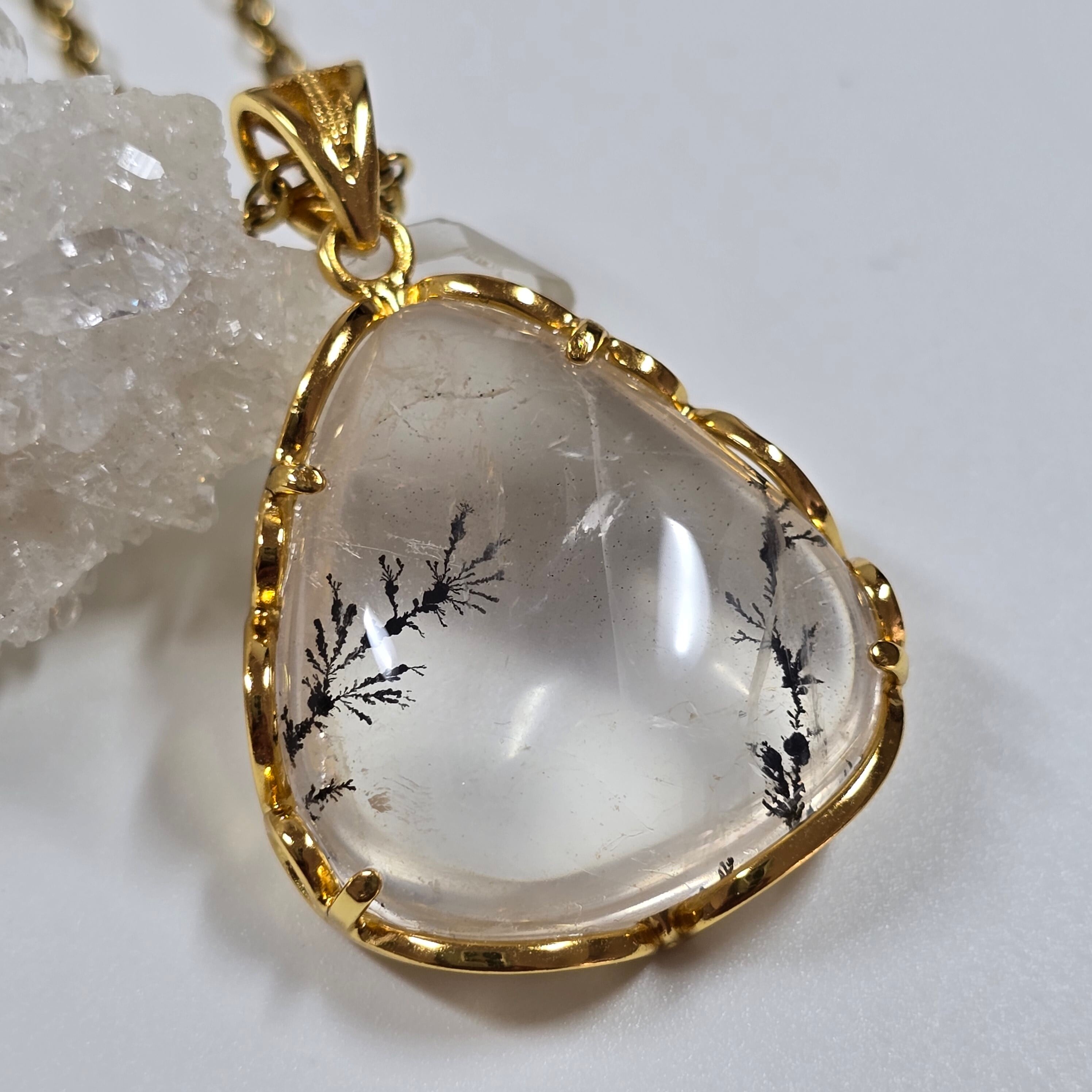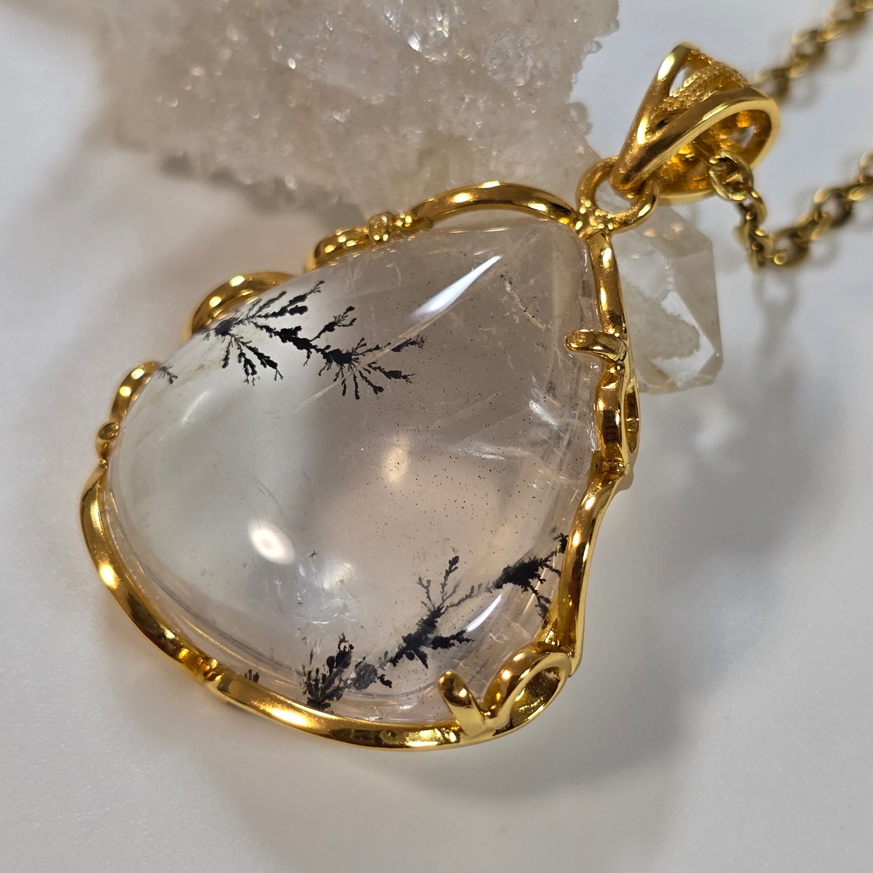 デンドリティッククォーツ ペンダント デンドライトクォーツ ネックレス ゴールド ふりふり