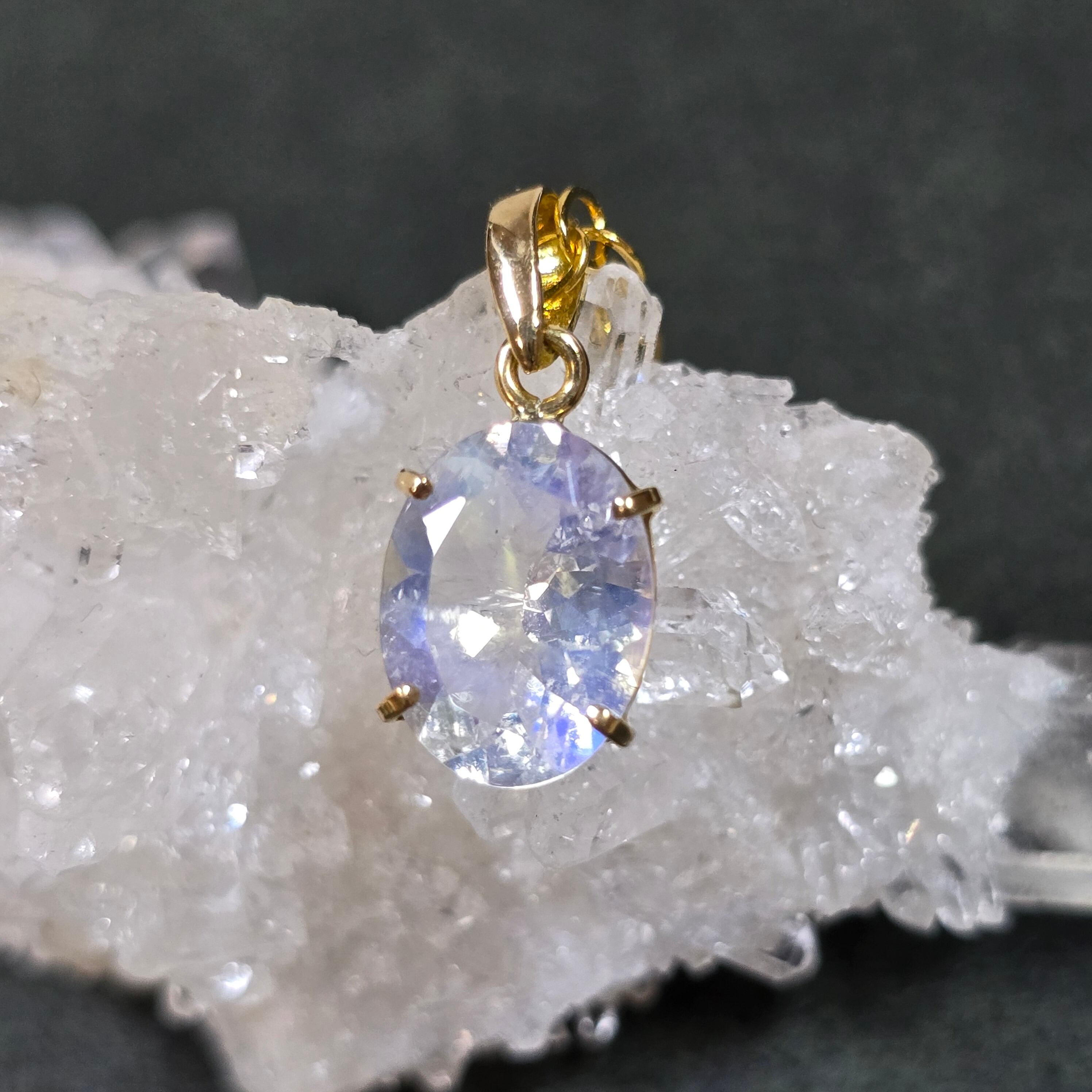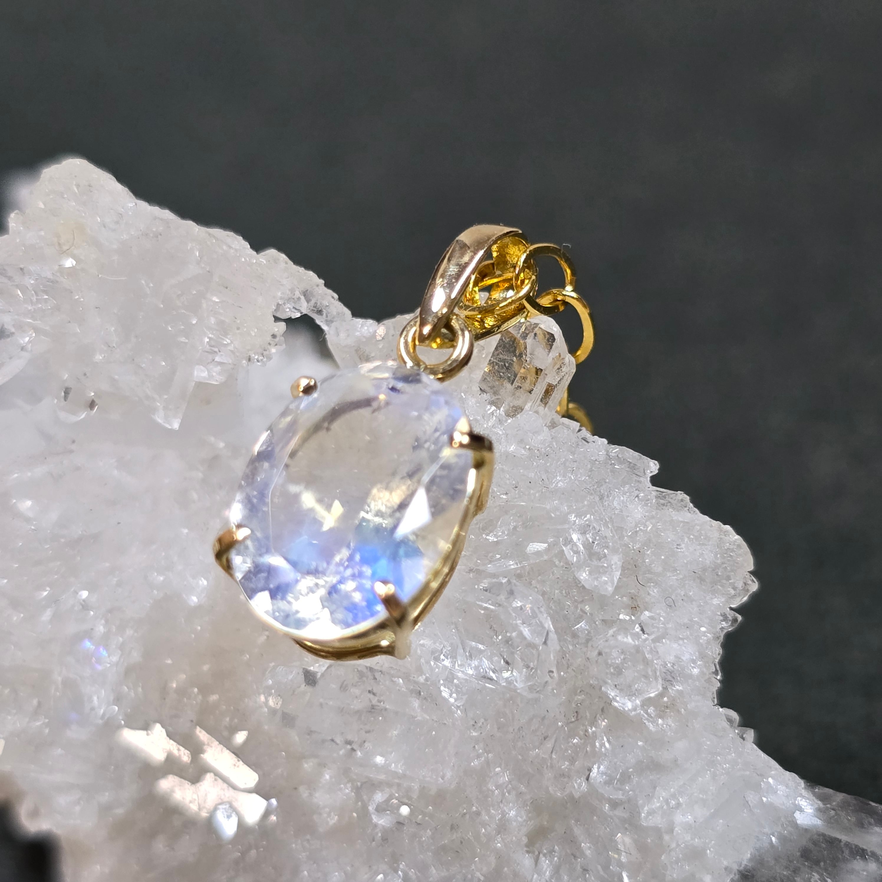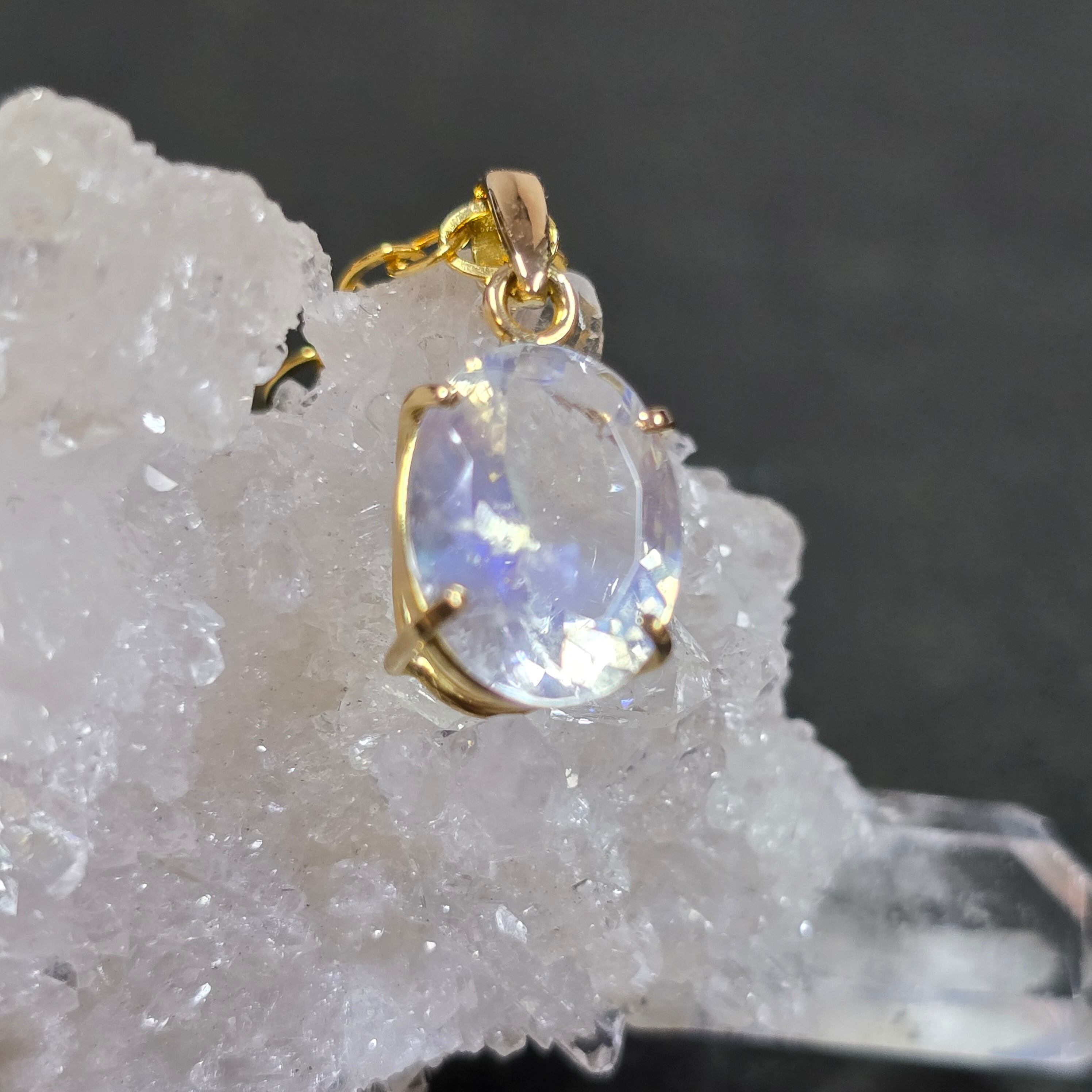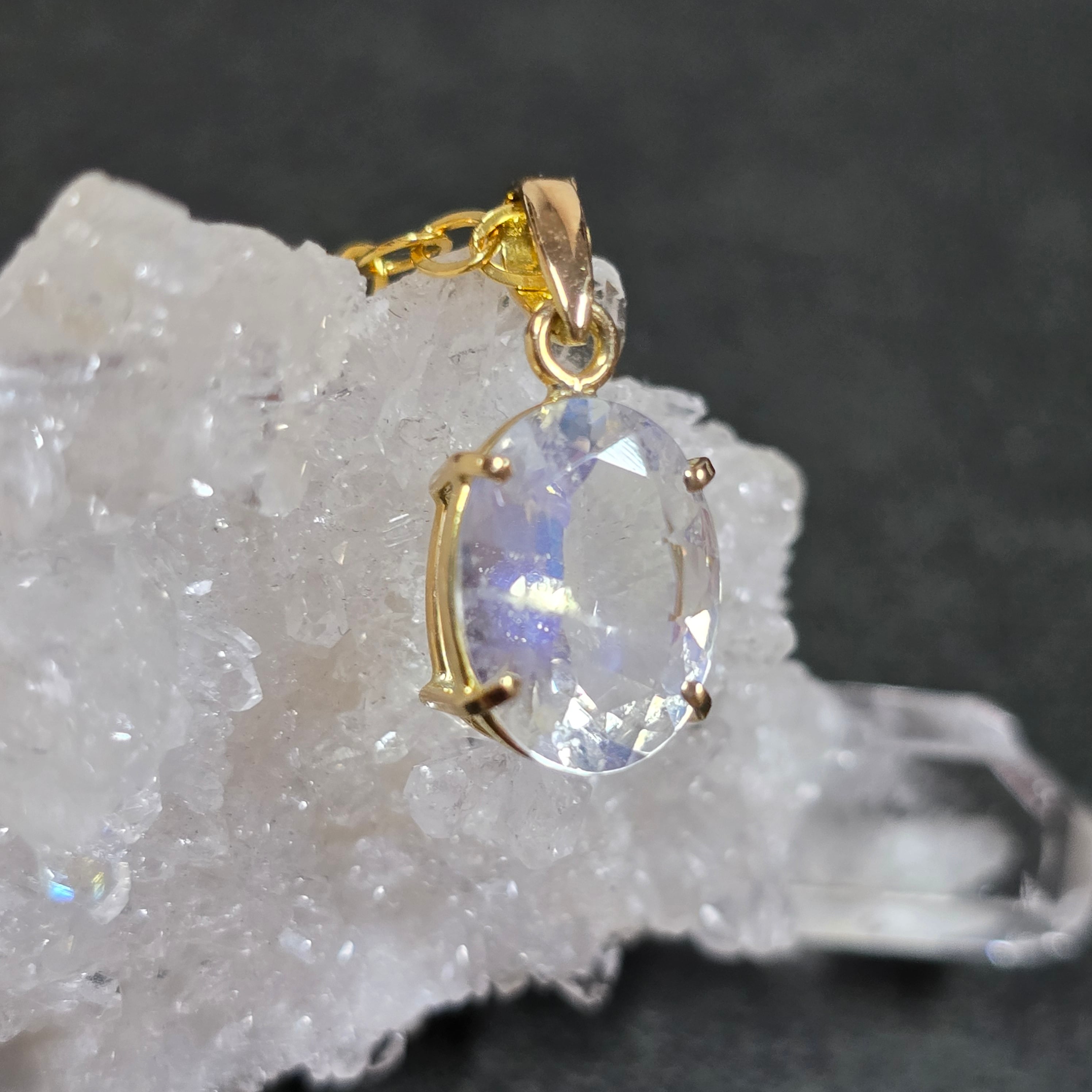 レインボームーンストーン 18K ペンダント ホワイトラブラドライト ネックレス ゴールド 天然石ジュエリー jewelry