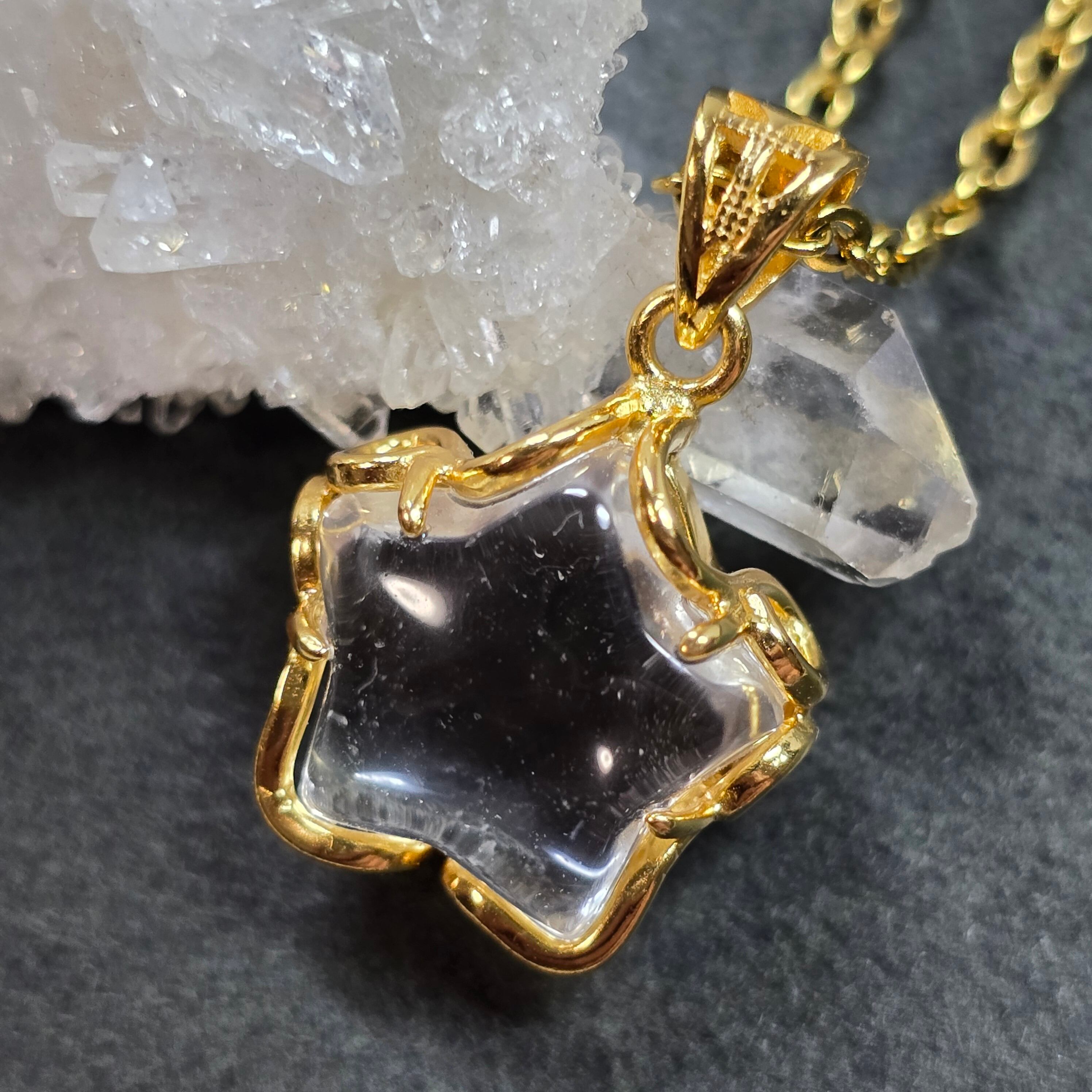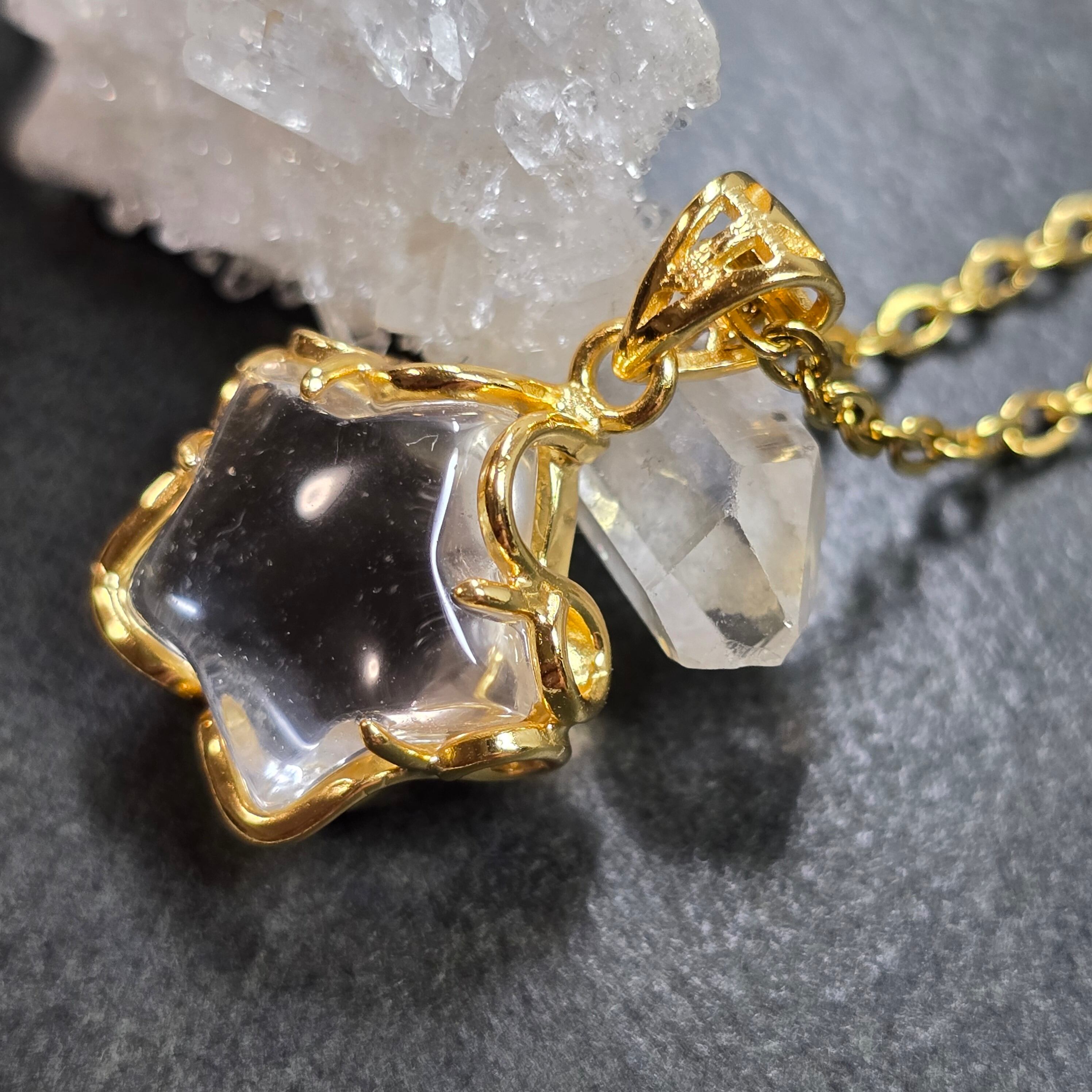 ロッククリスタル スター ペンダント ロッククリスタル ネックレス ゴールド ふりふり