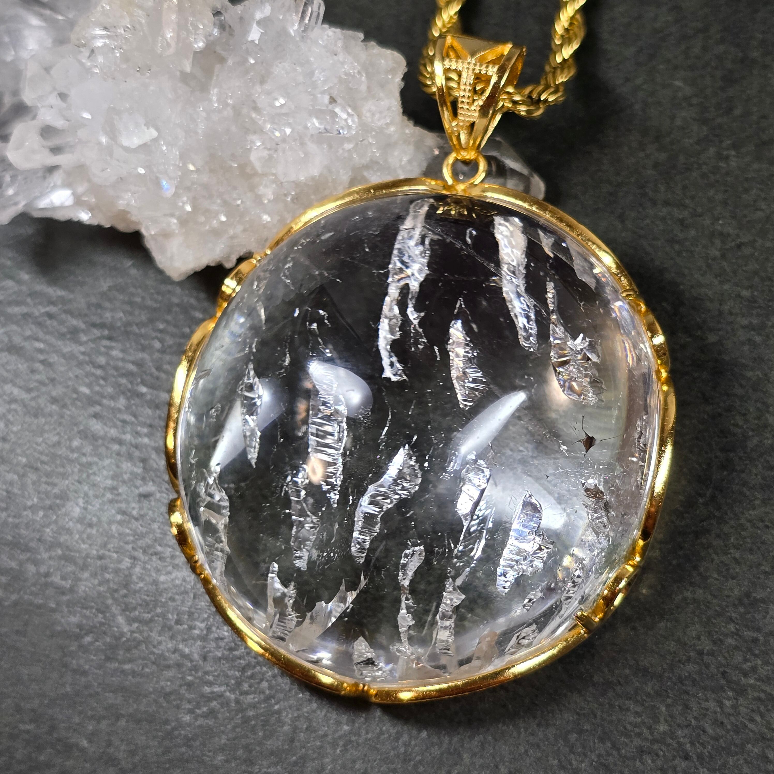 クォーツインクォーツ ペンダント クォーツインクォーツ ネックレス ゴールド ふりふり