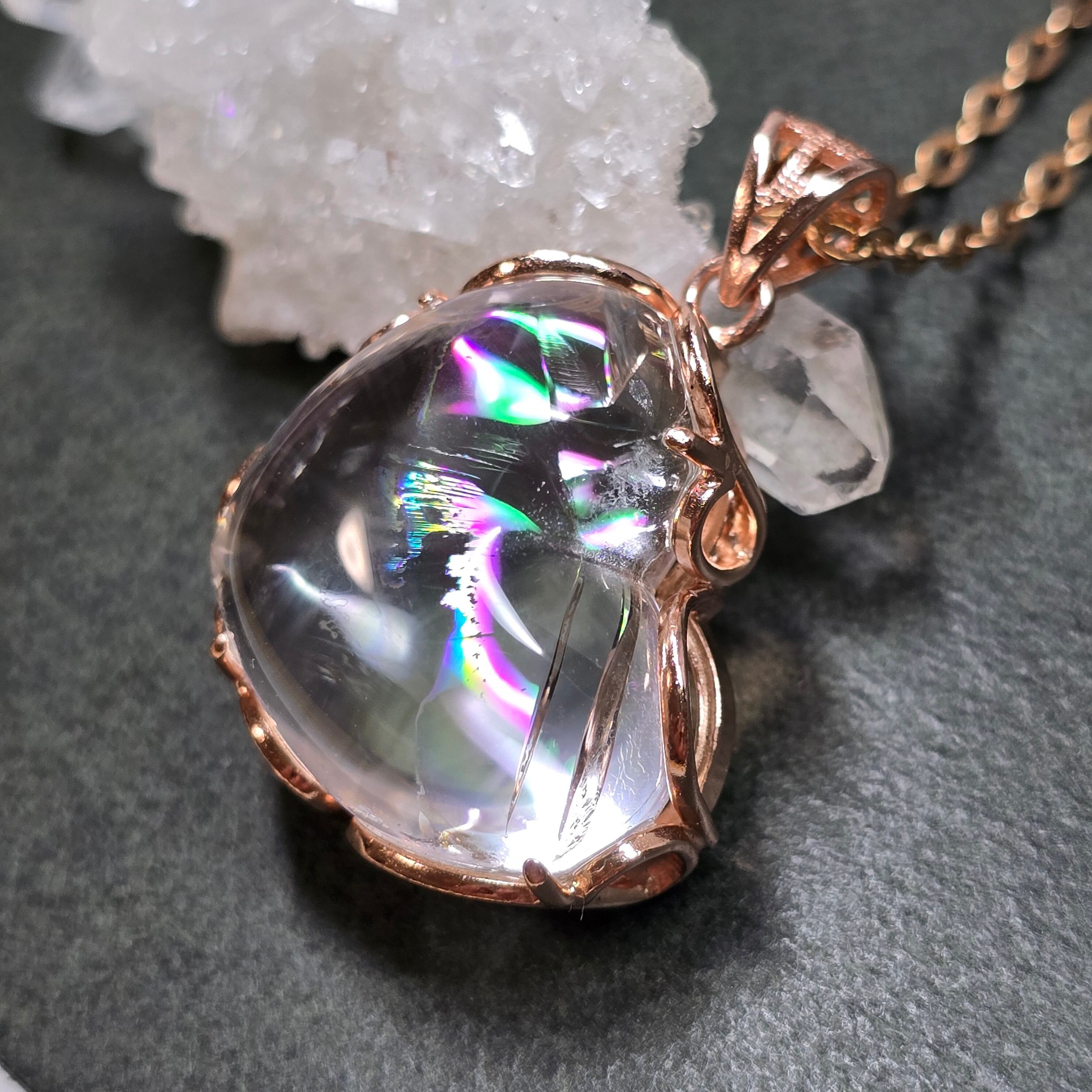 アイリスクォーツ ハート ペンダント アイリスクォーツ ネックレス ピンクゴールド ふりふり