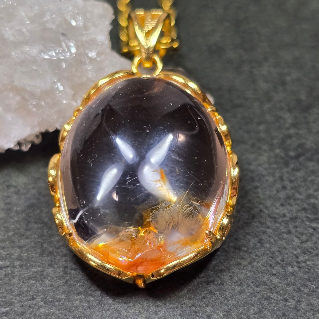 ライモナイトインクォーツ ペンダント ライモナイトインクォーツ ネックレス ゴールド ふりふり